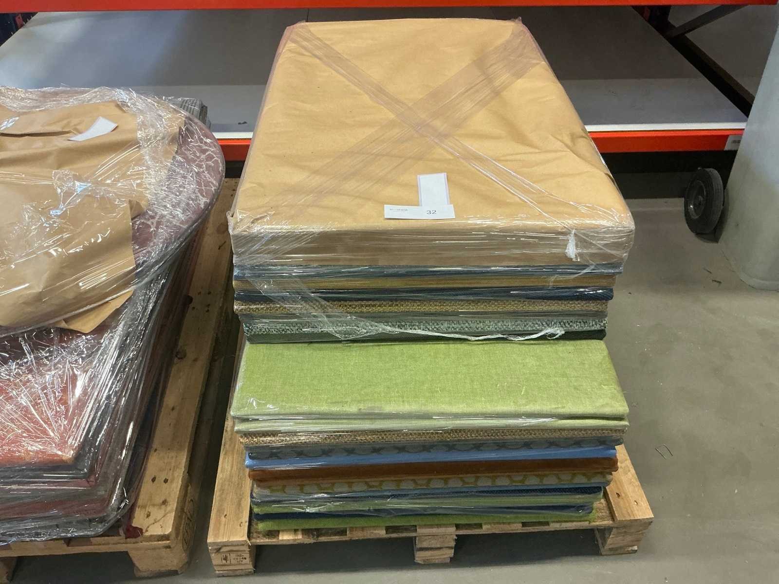 Bestaande uit: Diverse gestoffeerde panelen o.a. 60cm in rond en rechthoek, diverse kleuren en motieven