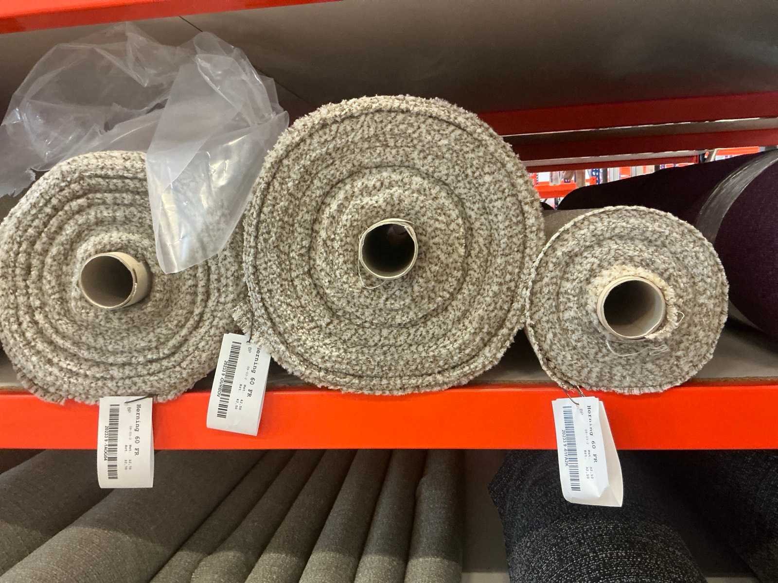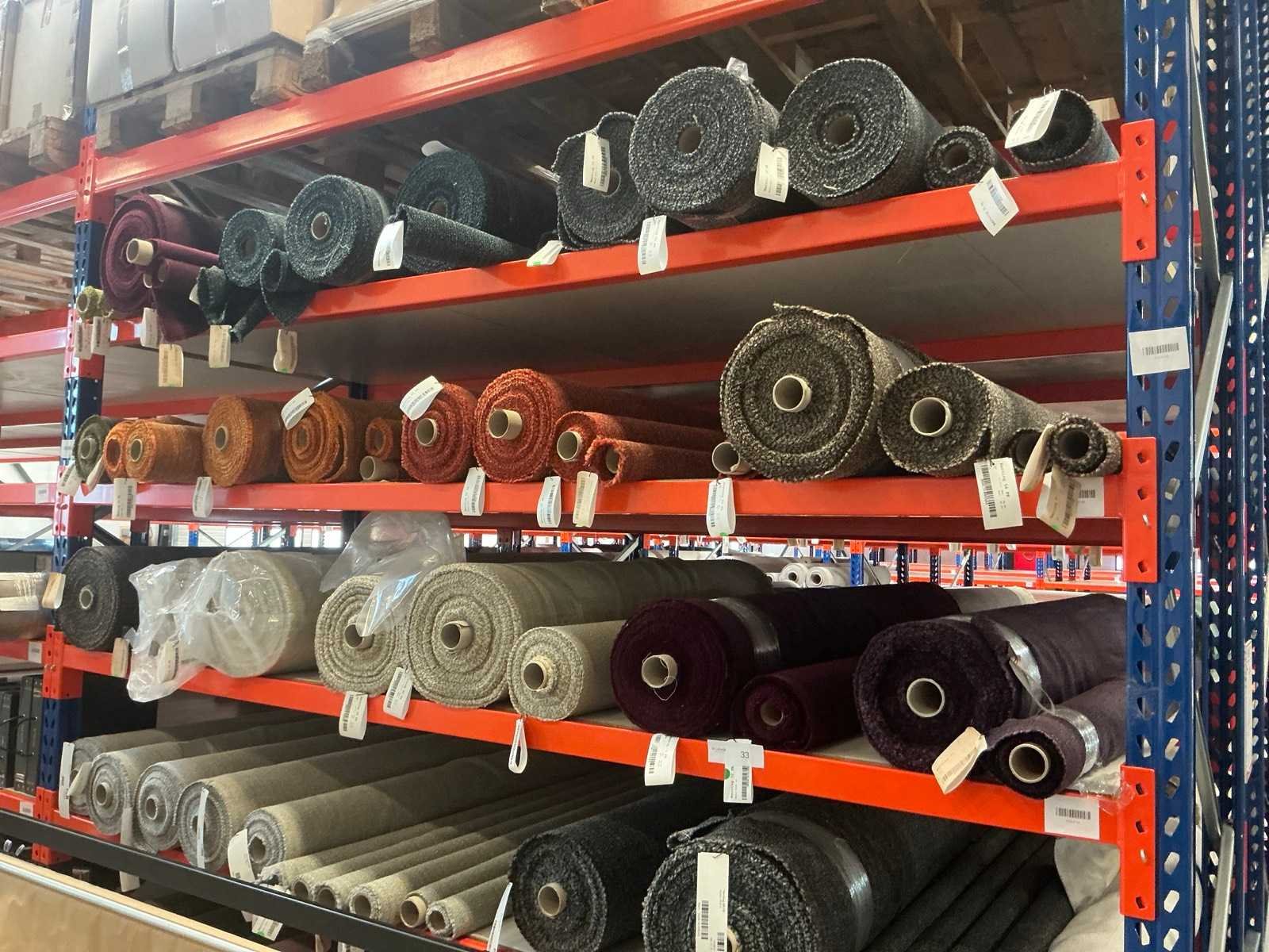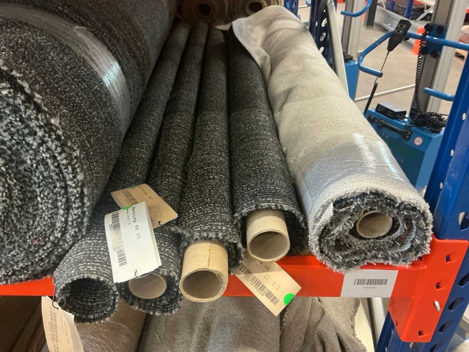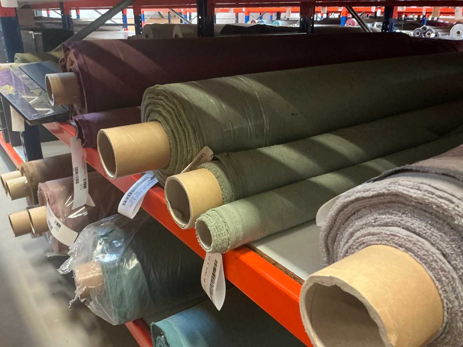 Bestaande uit inhoud sectie, diverse rollen textiel / stof. Diverse designs, soorten stof. Diverse lengtes