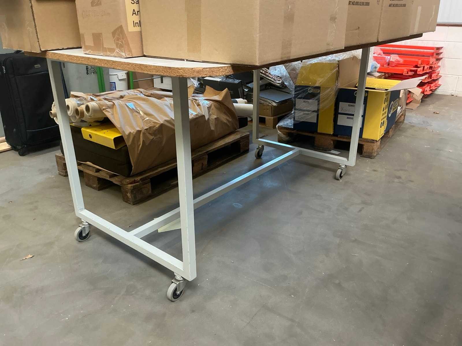 O.a. mobiele tafel 150x100cm, stalen tafel 200x100cm