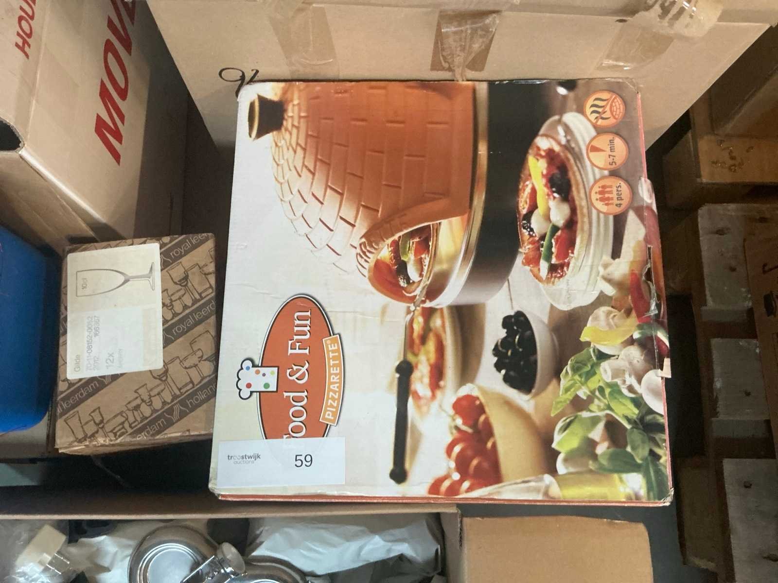 Bestaande uit inhoud pallet, o.a. glaswerk, pizzarette, champagne koelers etc