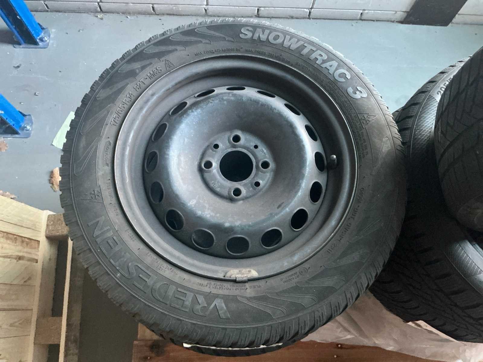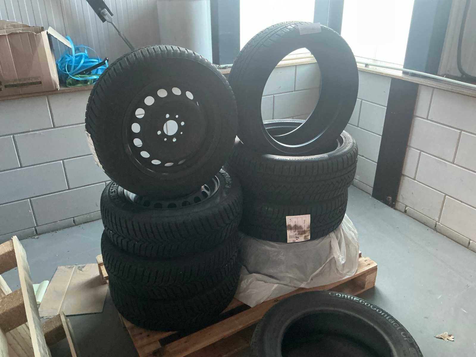 Bestaande uit 1x set winterbanden Continental wintercontact 205/50 R17 H XL, 1x setje winterbanden op velg Vredestein Snowtrac 3 175/65 R14 4-gaats
