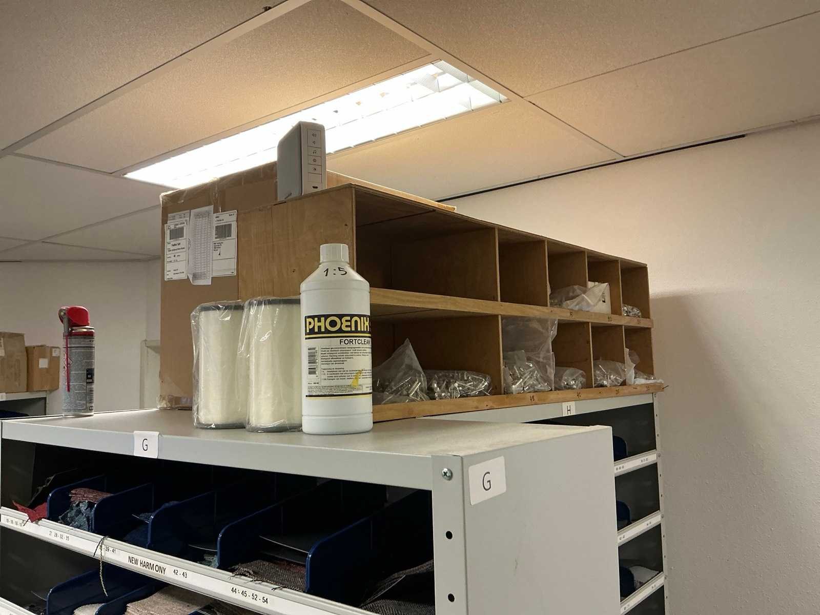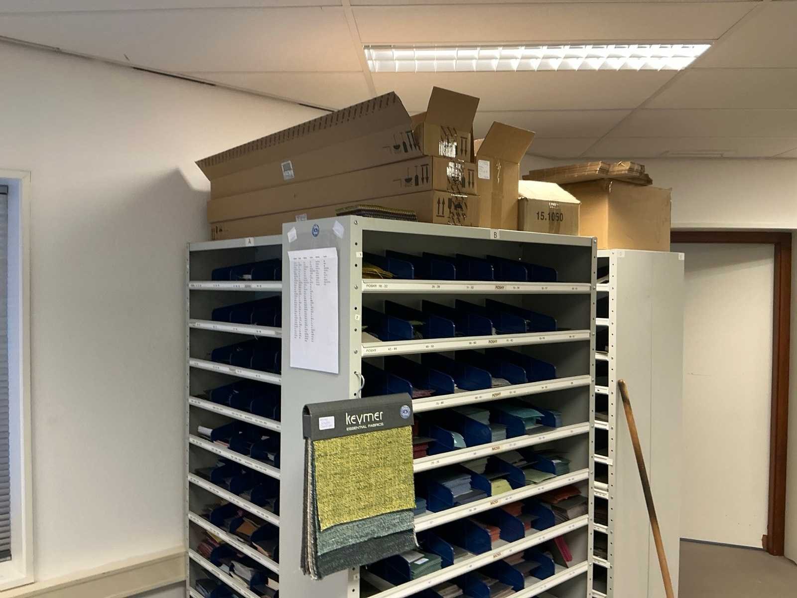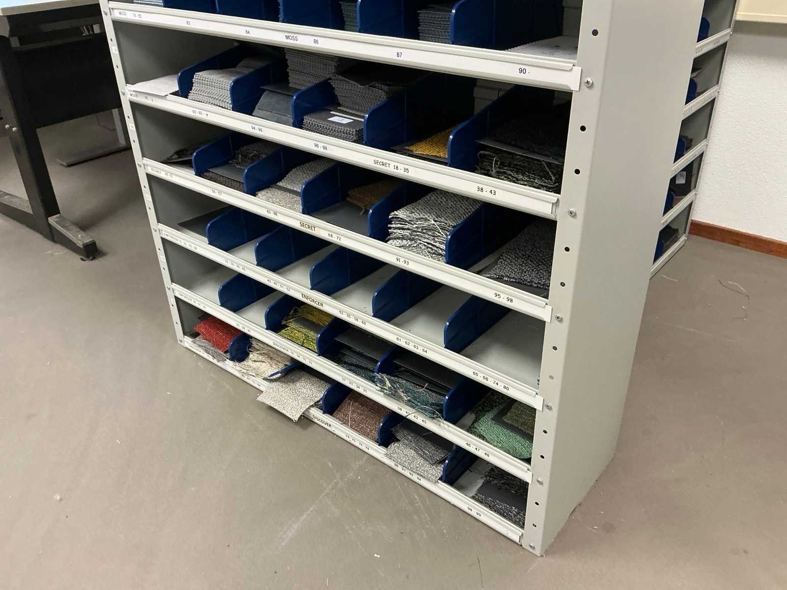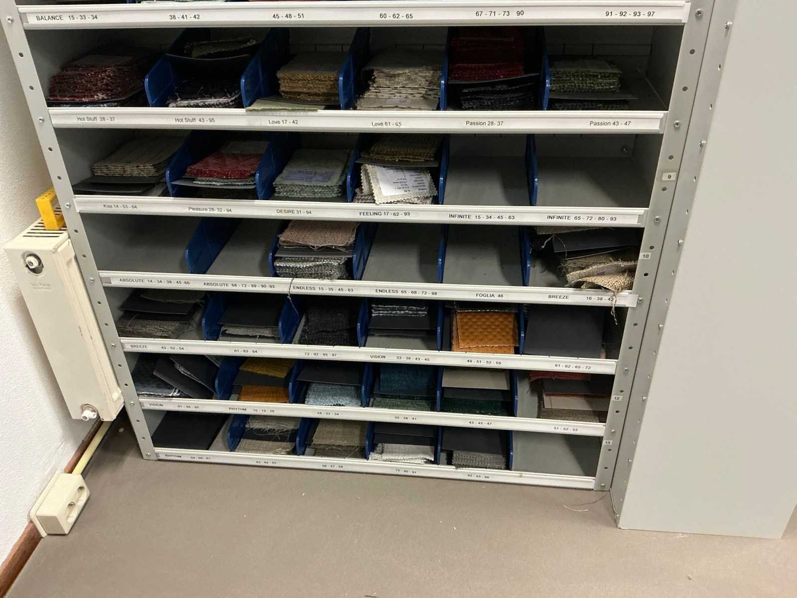 Inclusief inhoud en zaken op de kasten, diverse stofstalen. Kleur: Grijs Lengte: 100cm Breedte: 30cm Hoogte: 198cm Materiaal: Metaal