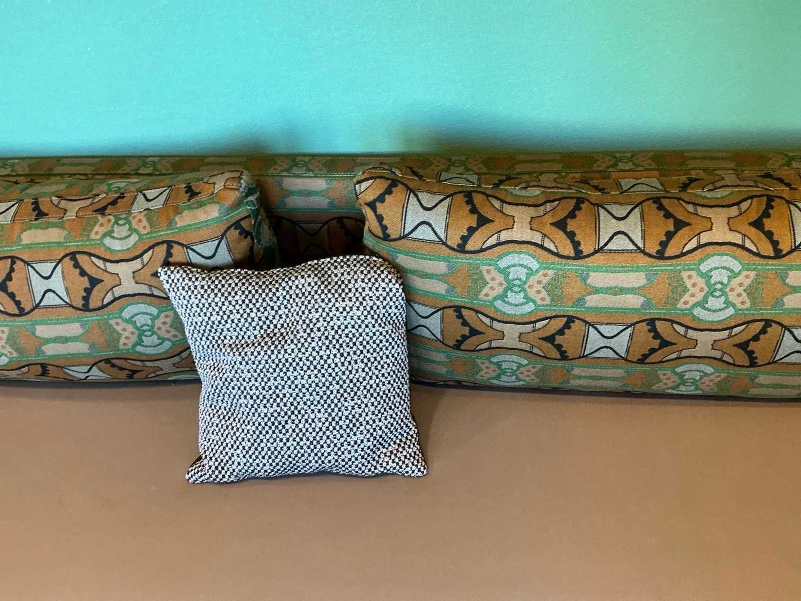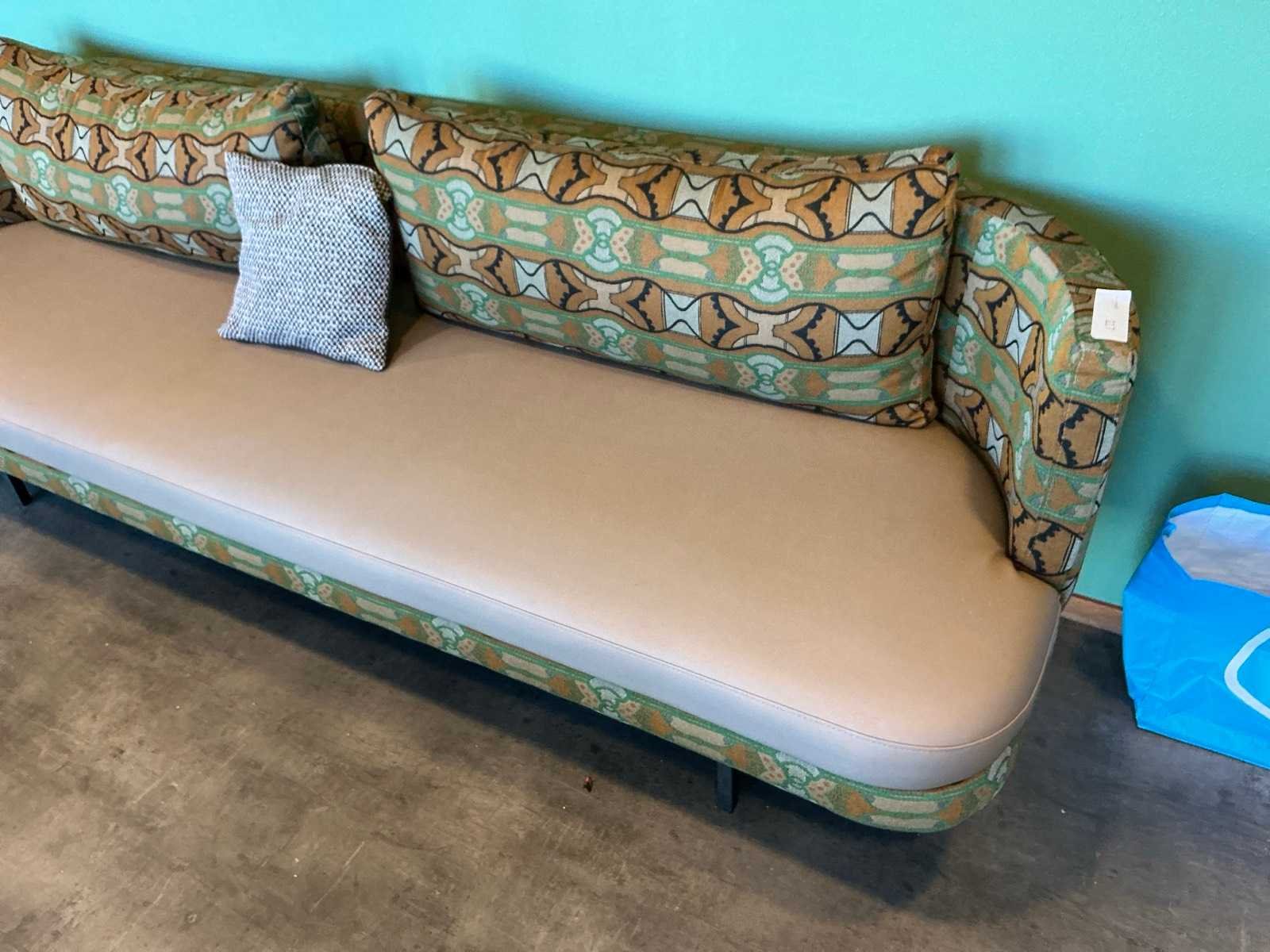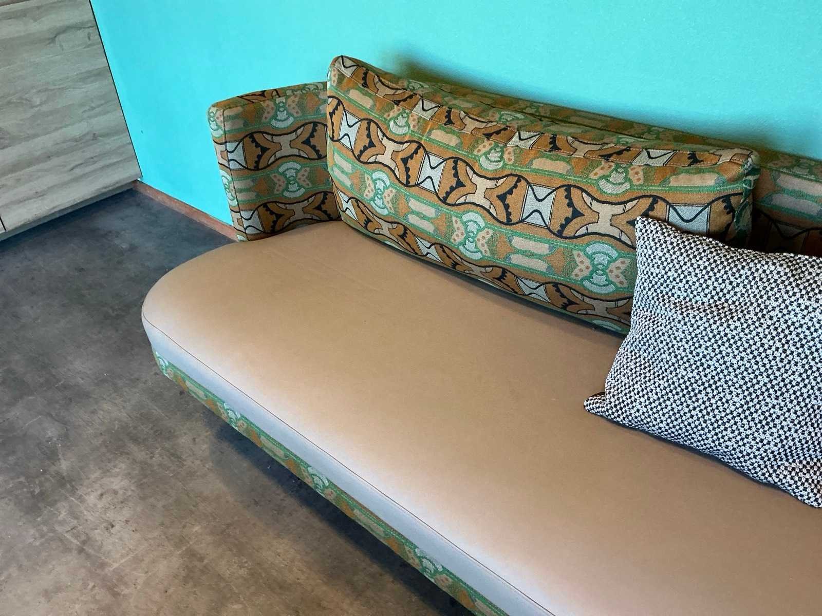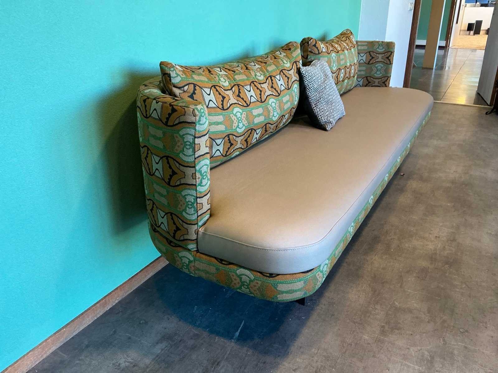 Merk: Design Zitplaatsen: 4 Lengte: 250cm Breedte: 77cm Hoogte: 80cm Zithoogte: 45cm Diepte: 50cm Materiaal: Stoffen bekleding