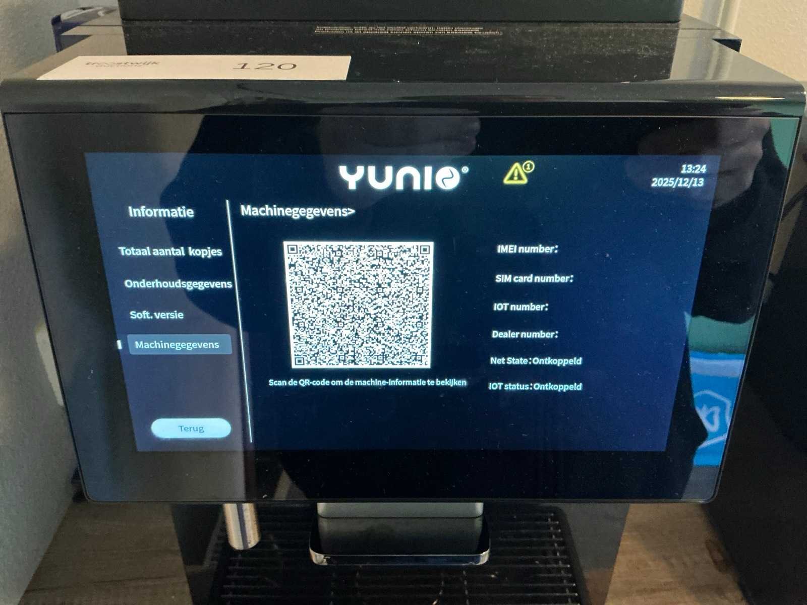Diverse koffie uitgifte, touchscreen display, teller ca 3413 kopjes. Merk: Yunio Koffie- & espressomachine: true