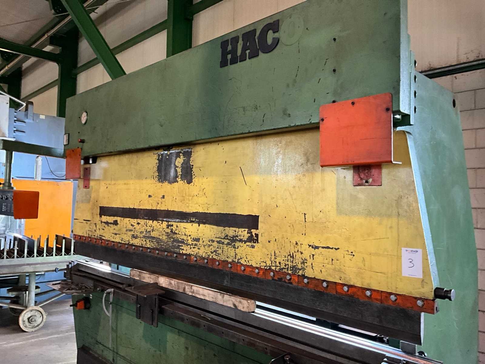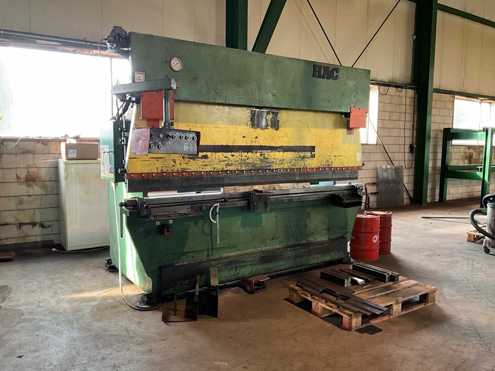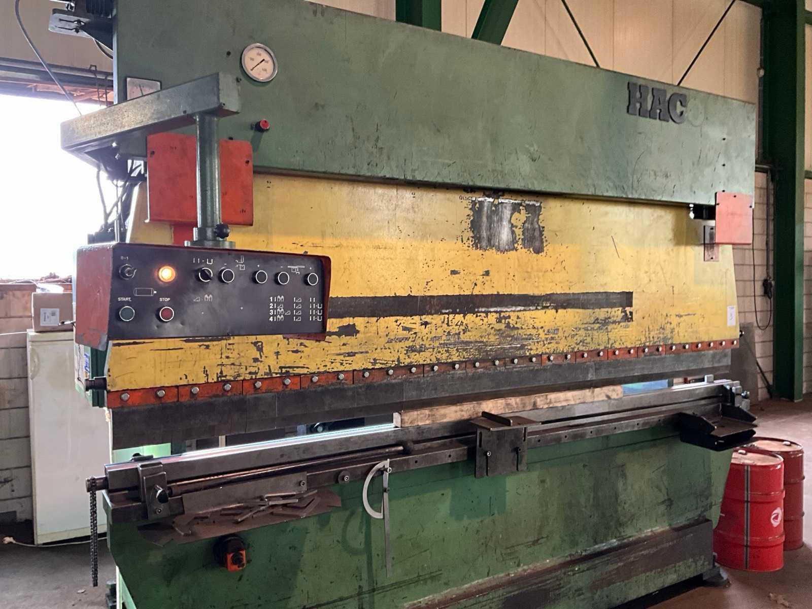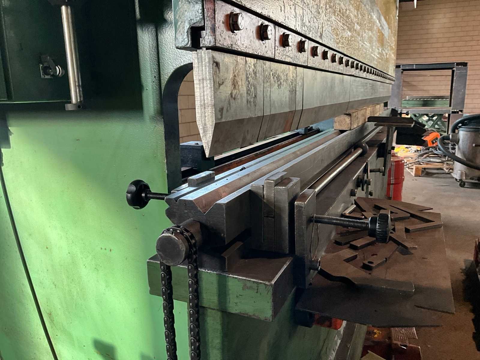 Afstand tussen de kolommen 2570 mm, uitlading bij kolommen 210 mm, voorzien van zet- / kantgereedschap, bedieningspaneel, Merk: Haco Type: PPB 30135 Bouwjaar: 1985 Serienummer: 55153 Capaciteit.: 135t Werklengte: 3000mm Voetbediening: true Achteraanslag bereik: 900mm Aansluiting: 400V Afmeting l: 1800mm Afmeting b: 3000mm Afmeting h: 2500mm