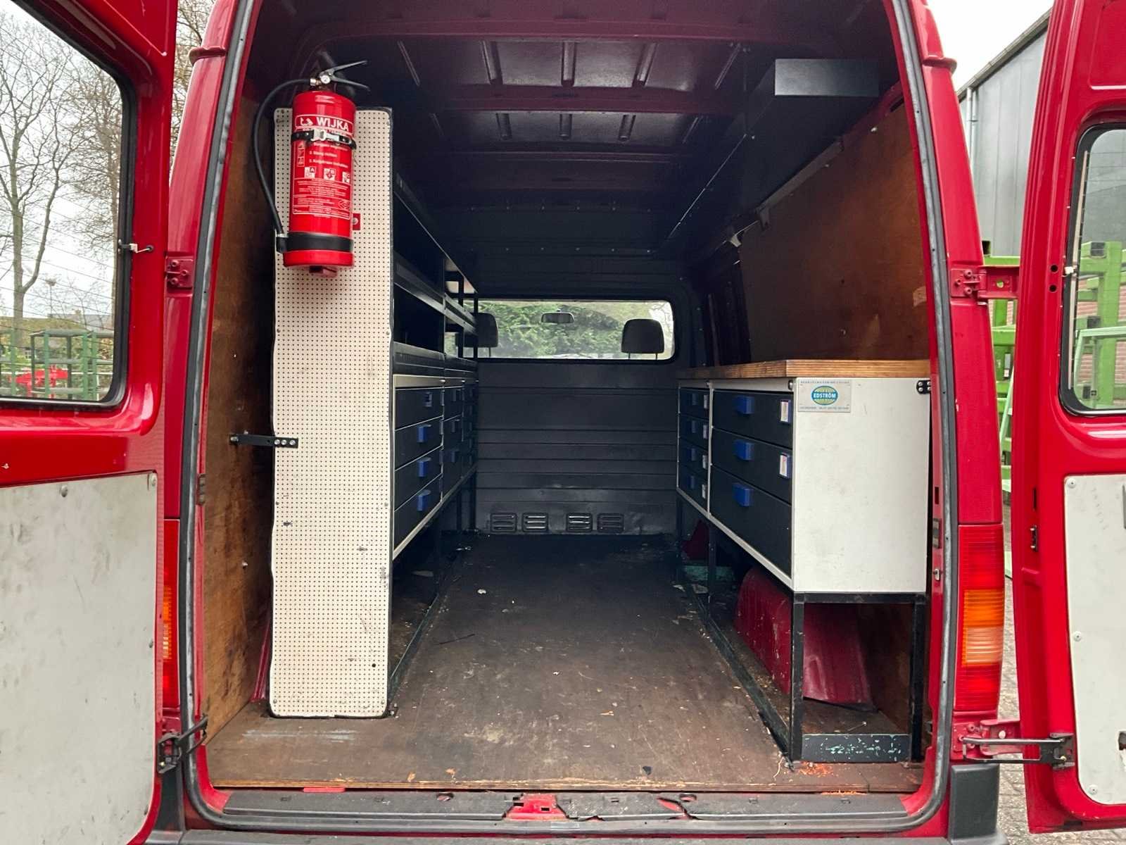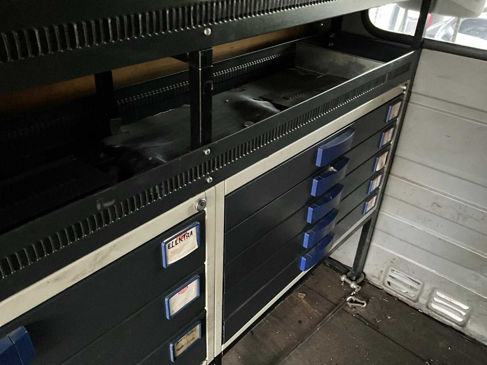 Voorzien van verhoogde dak, laadruimte inrichting (1 zijde werkbank + 7 lades, 1 zijde opbergvakken + 12 lades), Kenteken: VV-FB-29 Merk: Volkswagen Type: 35 TDI Model: LT Bouwjaar: 1998 Chassisnummer: WV1ZZZ2DZWH019424 Afgelezen kilometerstand: 132678km Cilinderinhoud: 2799cc Vermogen (kW): 92kW Brandstof: diesel Datum eerste toelating: 1998-01-12 Datum eerste toelating (NL): 1998-01-12 APK vervaldatum: 2026-09-24 NAP status: Logisch Transmissie: Handgeschakeld Aantal zitplaatsen: 2 Kleur: niet van toepassing Stuurwiel: links Bruto BPM (NL): 0 Ledig gewicht: 1985kg Laadvermogen: 1515kg Vermogen (pk): 125 Aantal cilinders: 4 Carrosserie: gesloten opbouw Emissieklasse: 2 Maximaal trekgewicht ongeremd: 750