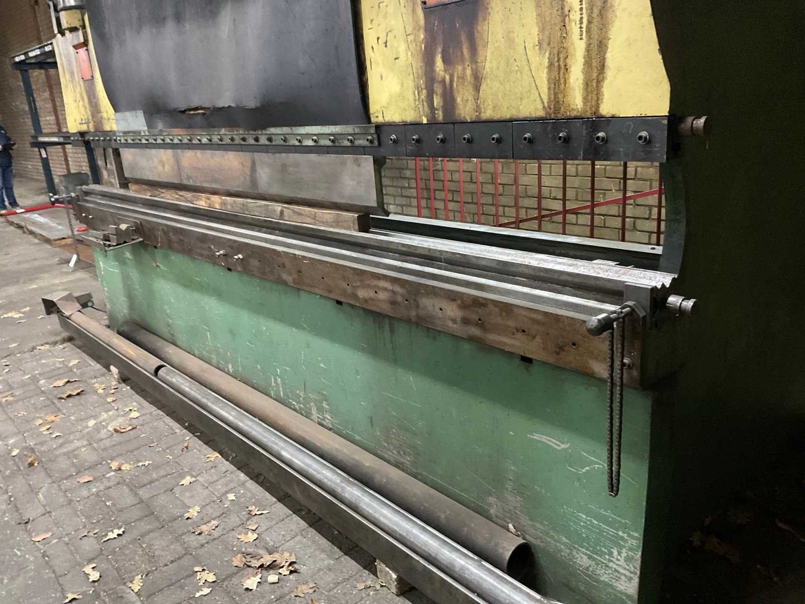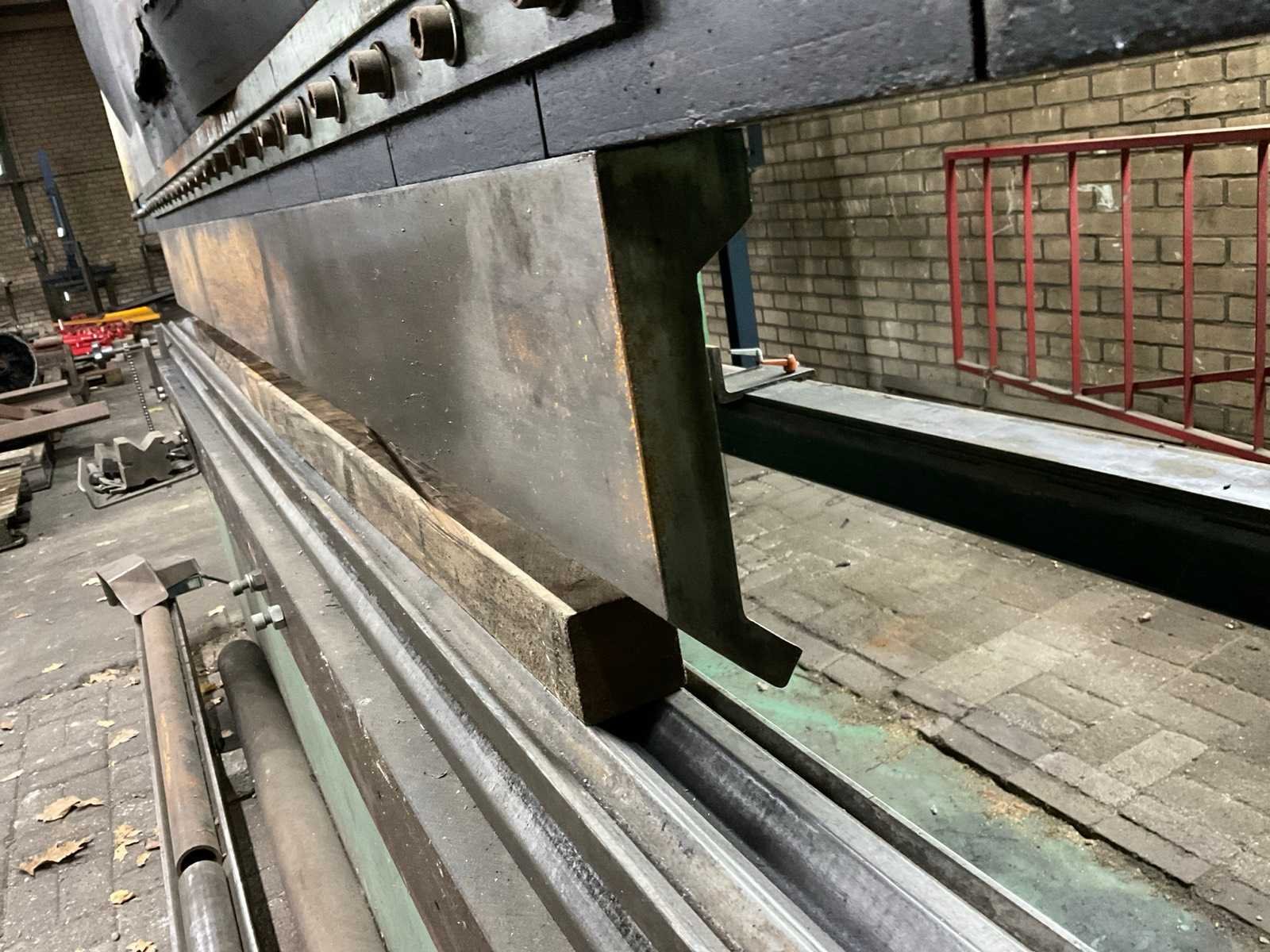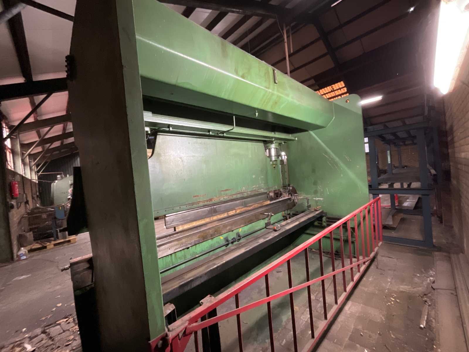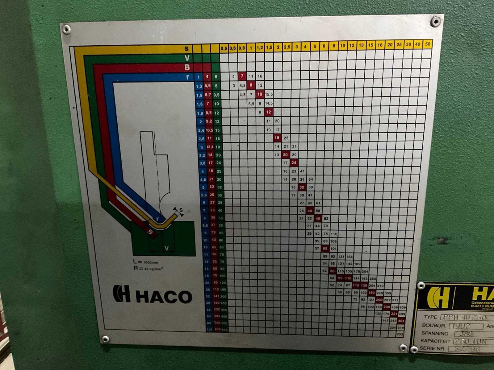 Numerieke besturing ATL 500, Machine zit circa 15 cm in de grond. Er is geen toereikend laadmaterieel aanwezig. Merk: HACO Type: PPH40260 Bouwjaar: 1992 Serienummer: 52298 Capaciteit.: 260t Werklengte: 2250mm Achteraanslag bereik: 800mm Aansluiting: 400V Afmeting l: 4500mm Afmeting b: 2100mm Afmeting h: 3600mm