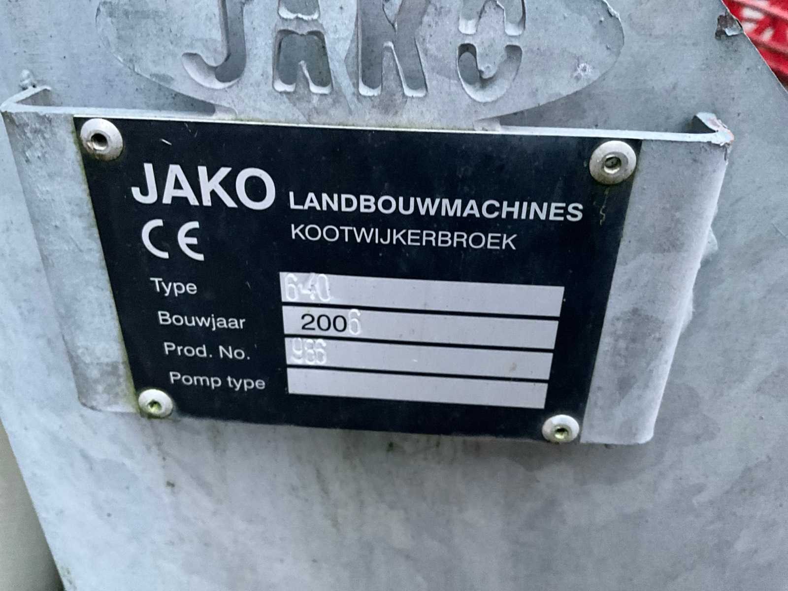 Voorzien van 4-punt aansluiting, hydraulisch aangedreven verdeler, 32 elementen Merk: Jako Type: 640 Bouwjaar: 2008 Serienummer: 986 Werkbreedte: 6400mm Aantal uitlopen: 32 Totale afmeting L: 1400mm Totale afmeting Breedte: 6400mm Totale afmeting Hoogte: 2600mm