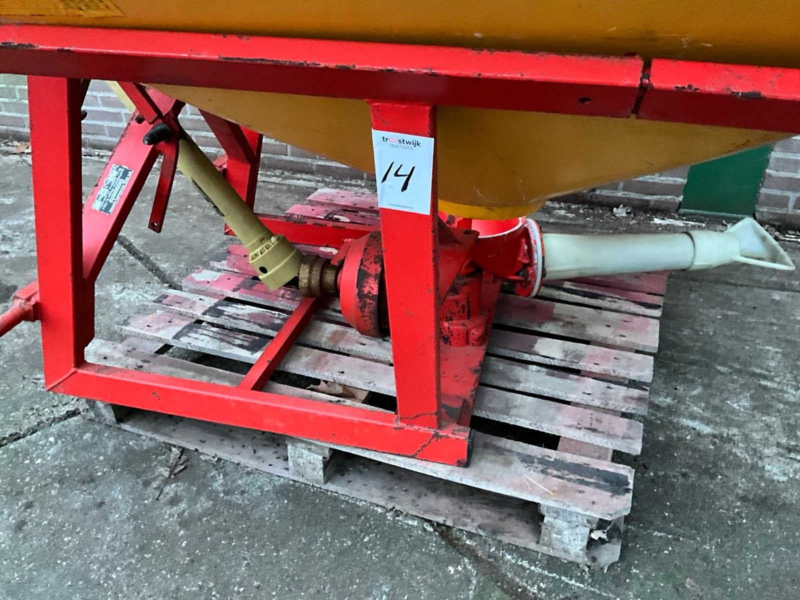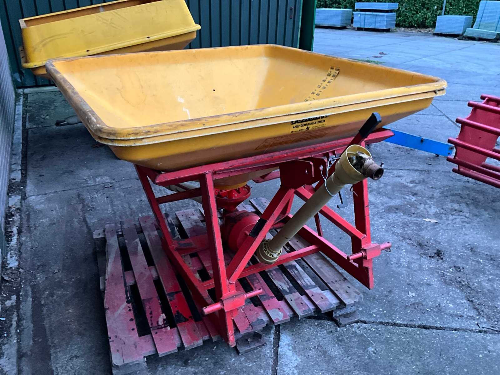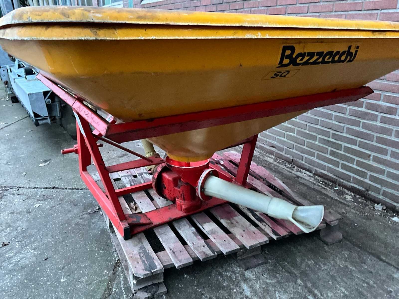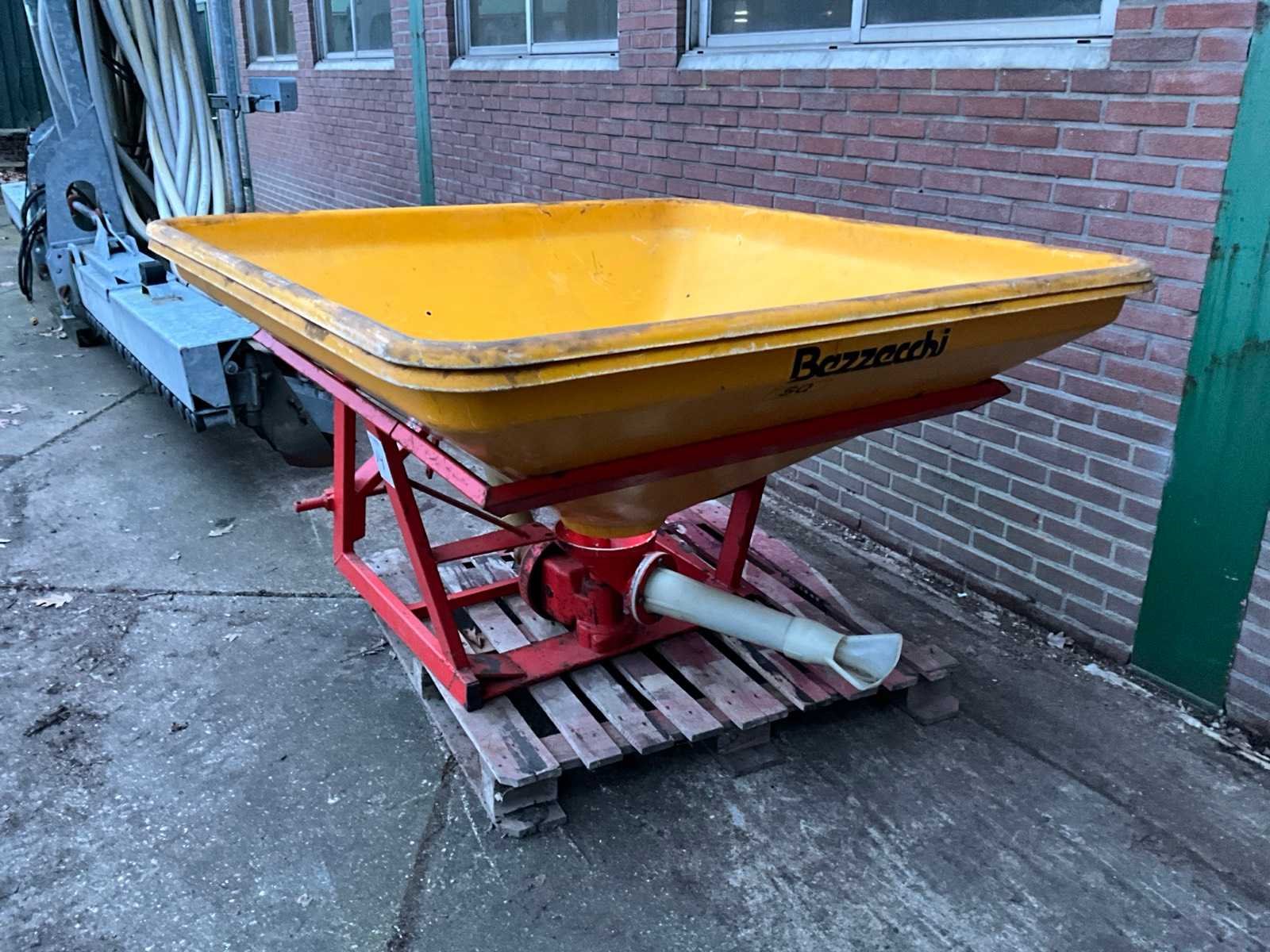 Betreft een pendelstrooier, voorzien van aftakas, 3-punt aansluiting, Merk: Bezzecchi Tankinhoud: 500l Totale afmeting L: 1600mm Totale afmeting Breedte: 1600mm