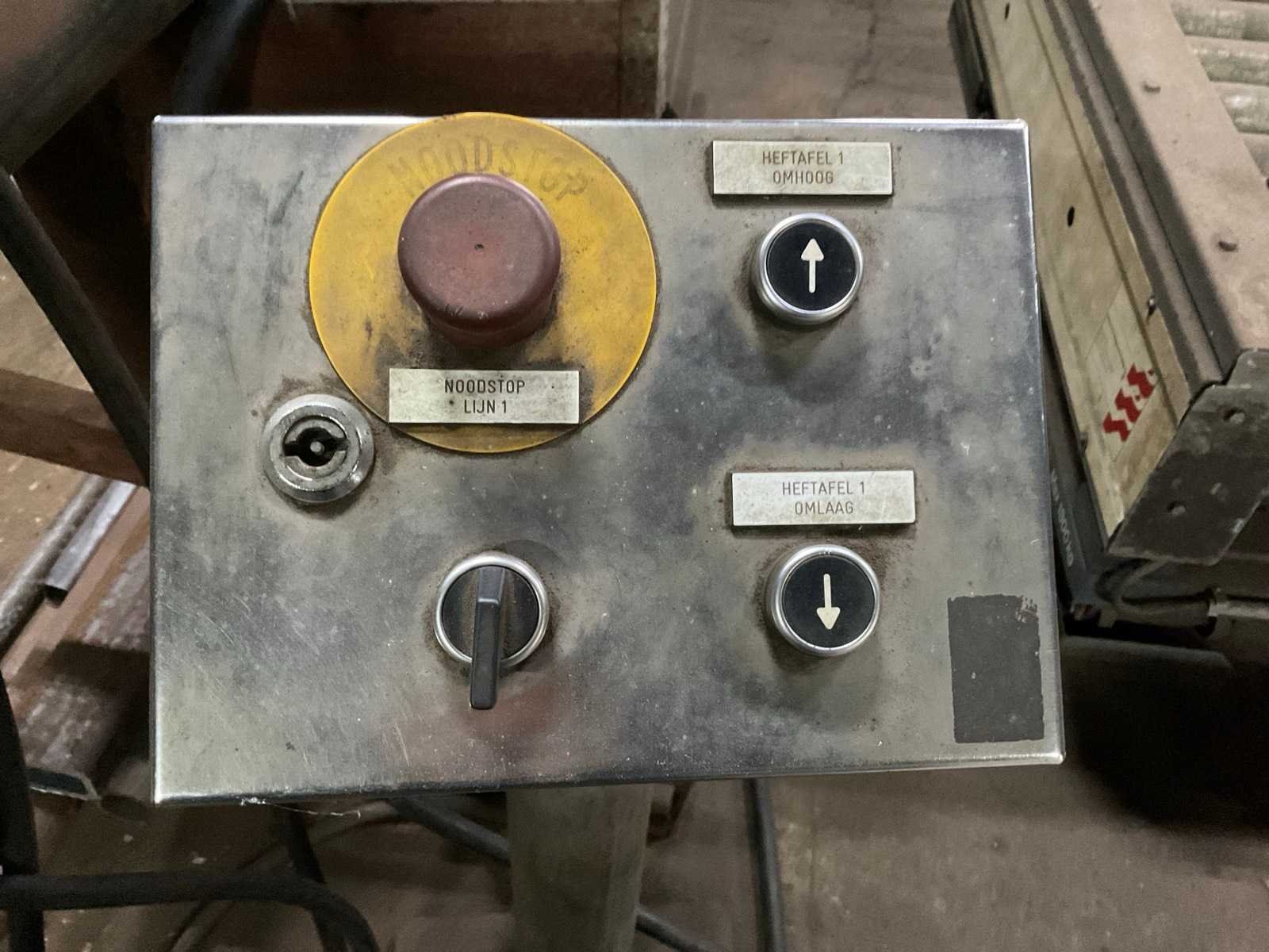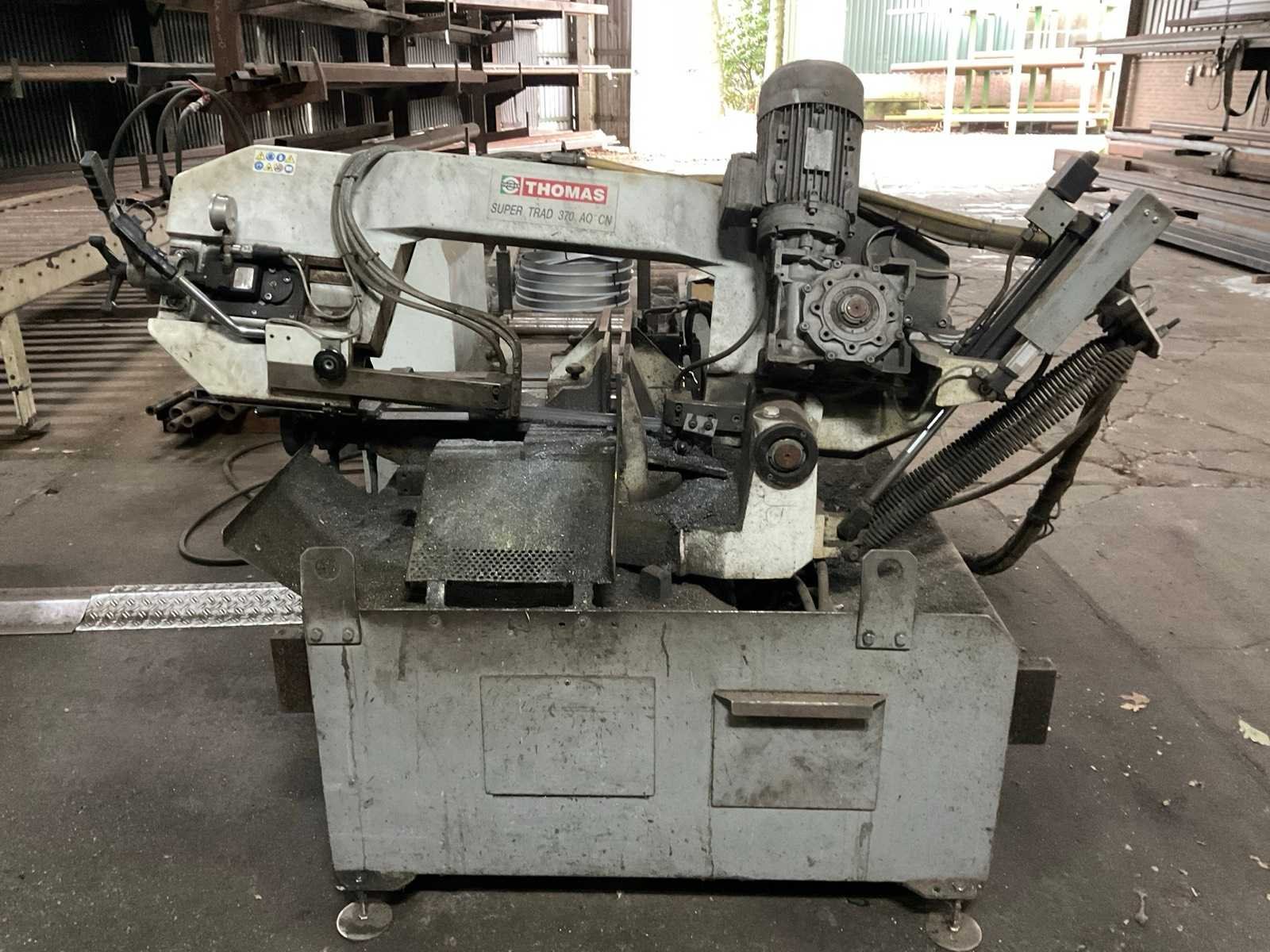 Inclusief 1x elektrisch aangedreven heftafel met 12x rol afmeting 153x135x70cm bouwjaar 1998, 1x bok voorzien van 2x rol afmeting 120x75x95cm Merk: Thomas Type: Super Trad 370 AO CN INV Bouwjaar: 2015 Serienummer: 03 00395 Max. werkstukhoogte: 150mm Werkbreedte: 180mm Zaagblad afm. b: 25mm Aantal snelheden: 2 Digitale uitlezing: true Aansluiting: 400V Machinegewicht: 1200kg Afmeting l: 2100mm Afmeting b: 1900mm Afmeting h: 1600mm