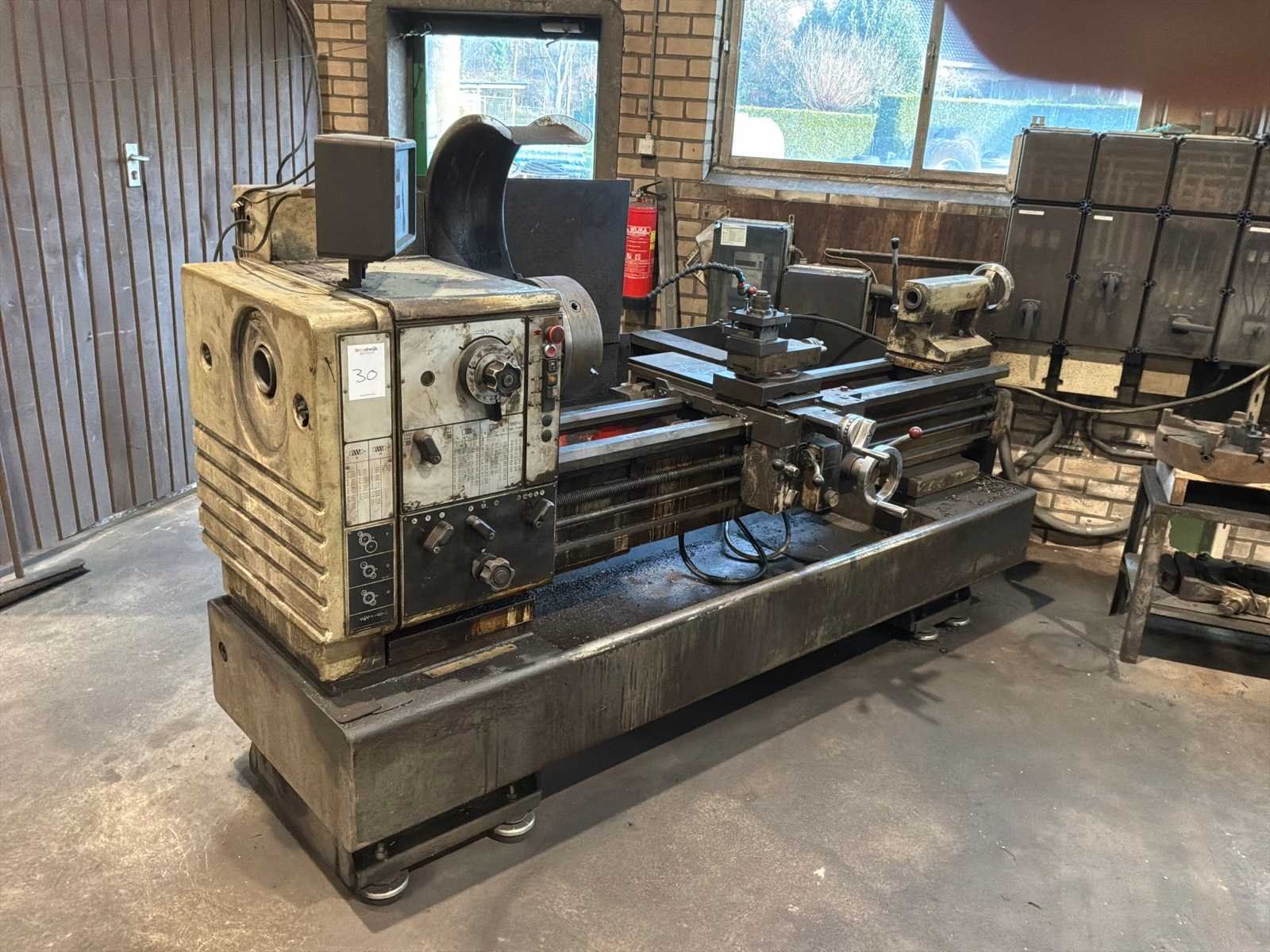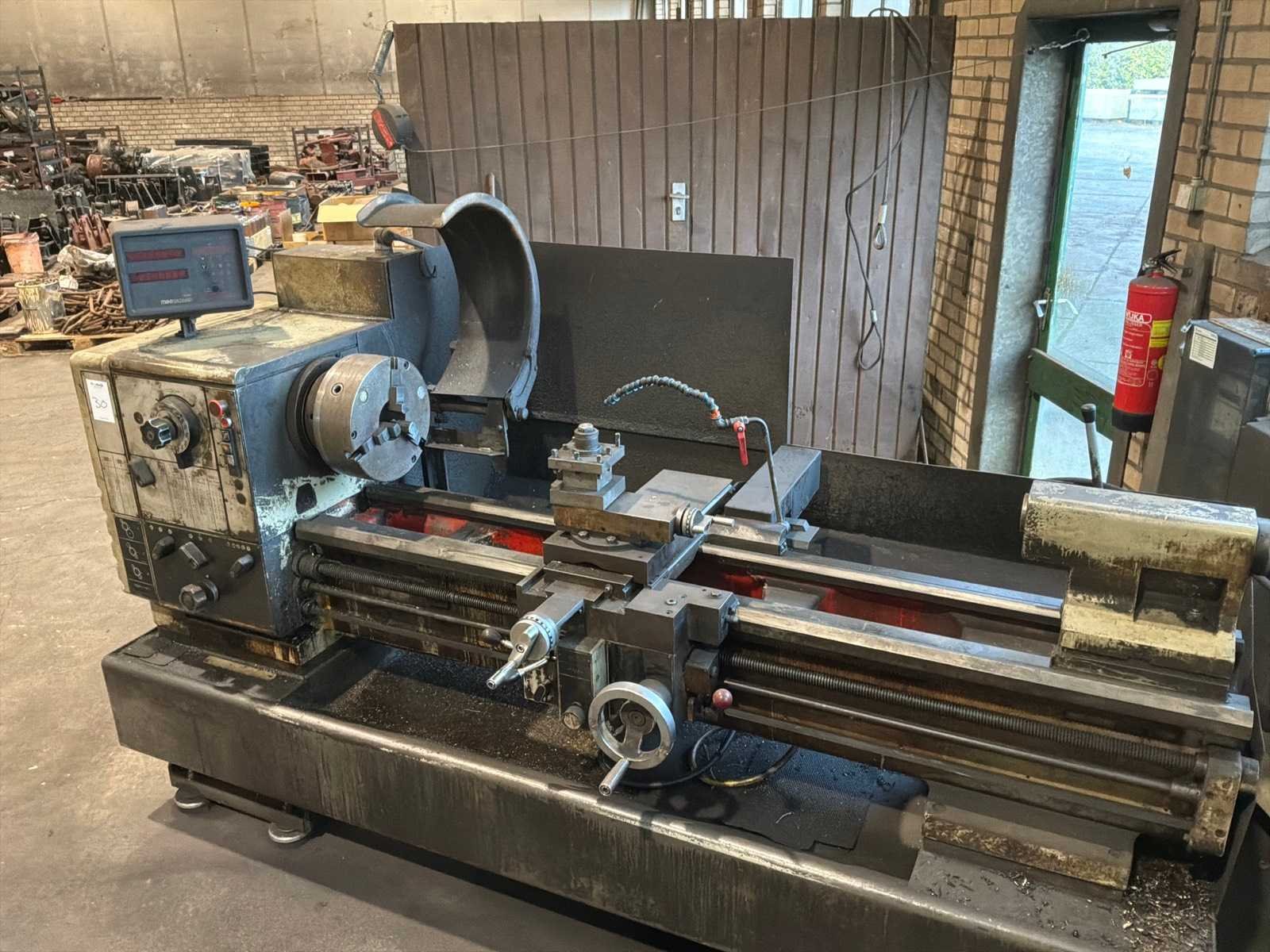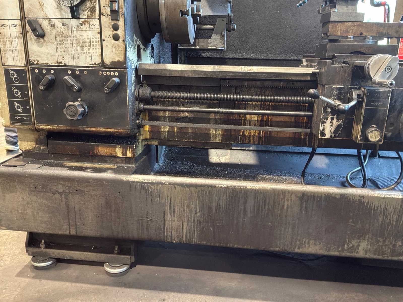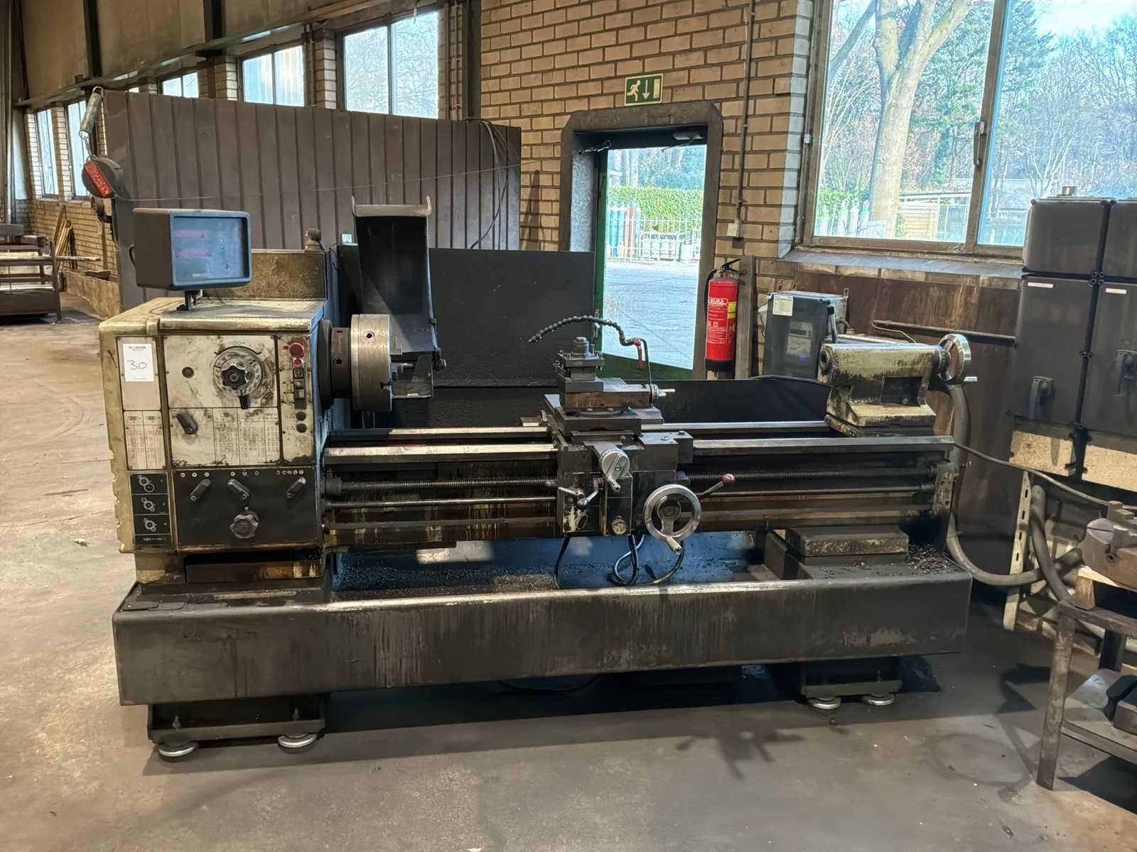 Voorzien van Anilam Miniwizard scherm, tafel met draaibank accessoires Merk: Harrison Draailengte: 1500mm Draai: 500mm Holle spil Ø: 80mm Aantal snelheden: 18 Snelheid van n =: 31rpm Snelheid tot n =: 1600rpm Koelmiddelpomp: true Motorvermogen (kW): 9.3kW Aansluiting: 4000V Afmeting l: 2800mm Afmeting b: 1300mm Afmeting h: 1700mm