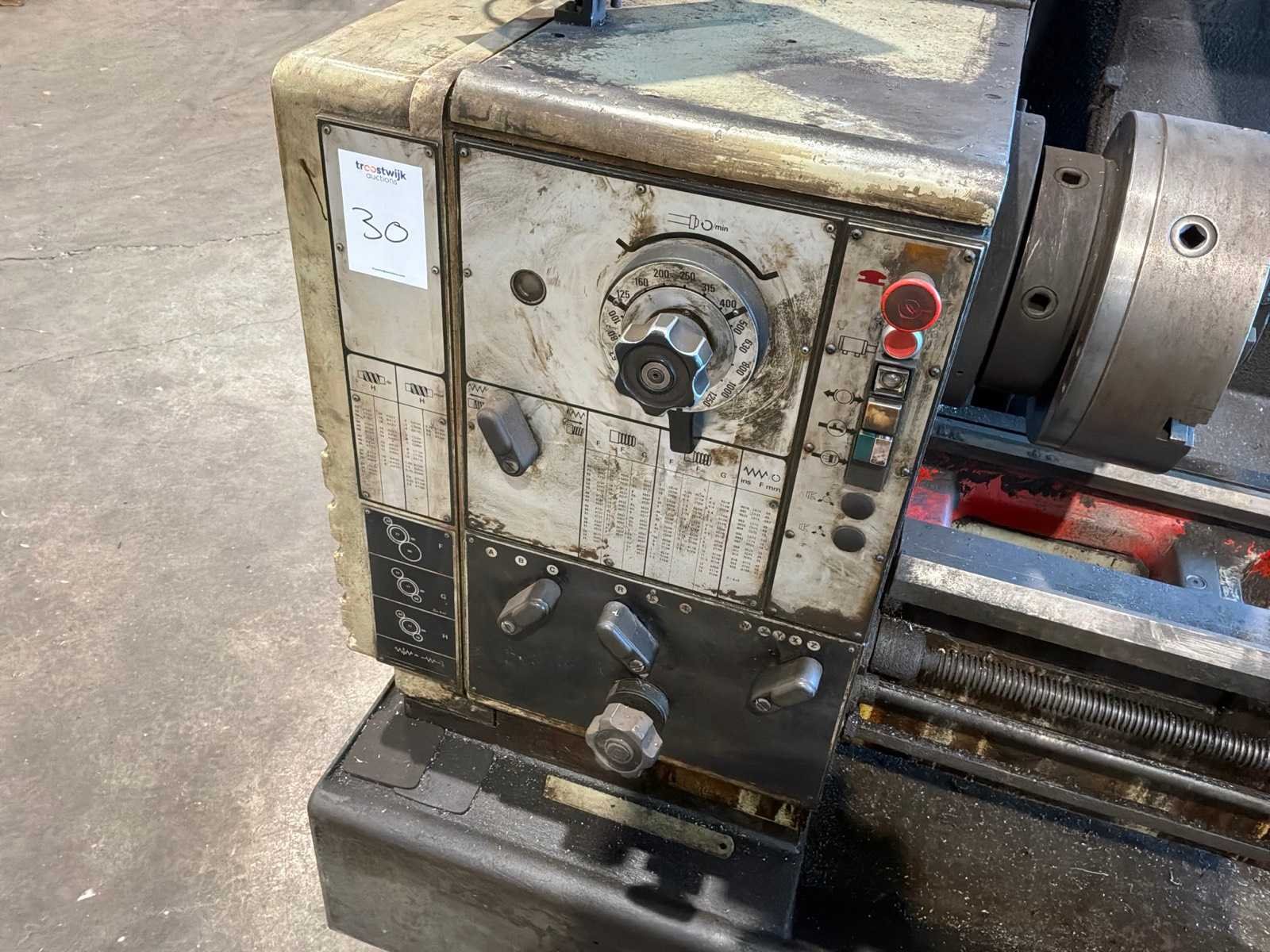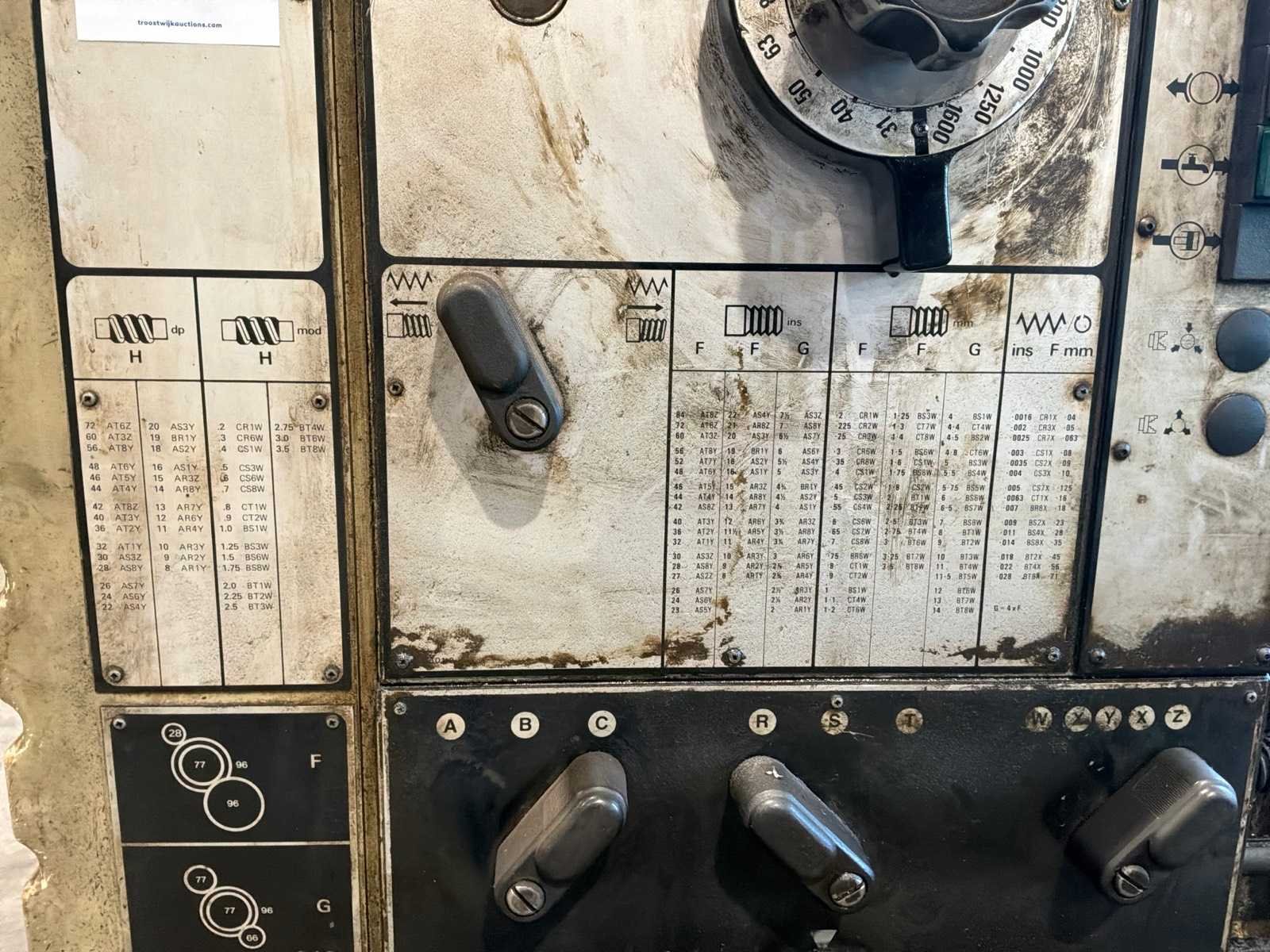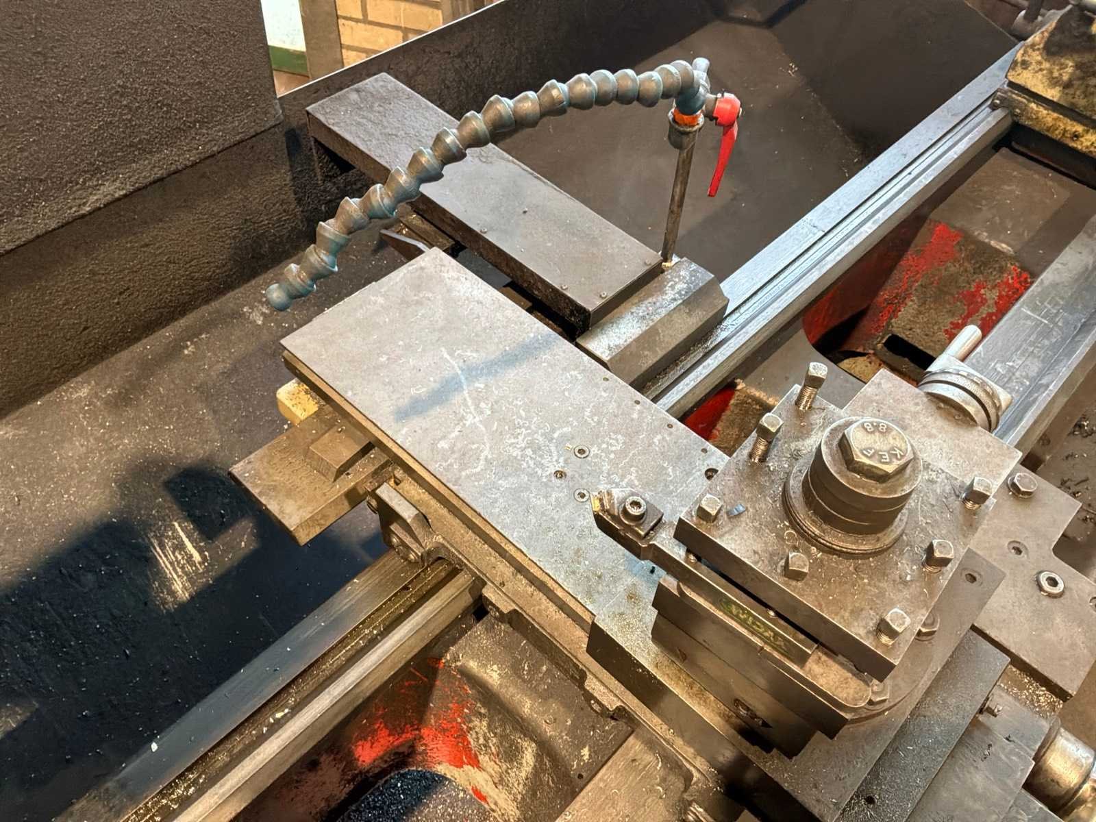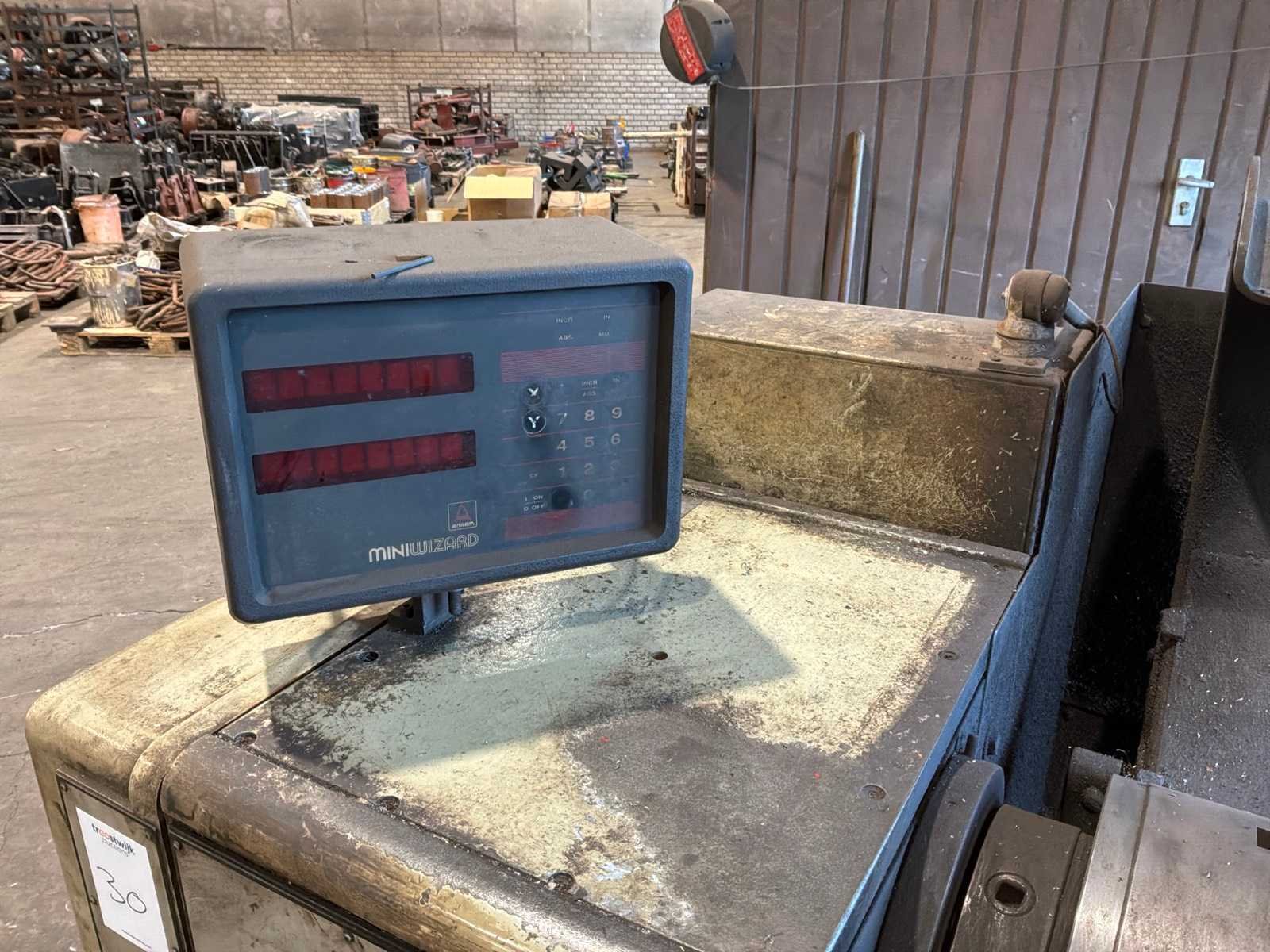 Voorzien van Anilam Miniwizard scherm, tafel met draaibank accessoires Merk: Harrison Draailengte: 1500mm Draai: 500mm Holle spil Ø: 80mm Aantal snelheden: 18 Snelheid van n =: 31rpm Snelheid tot n =: 1600rpm Koelmiddelpomp: true Motorvermogen (kW): 9.3kW Aansluiting: 4000V Afmeting l: 2800mm Afmeting b: 1300mm Afmeting h: 1700mm