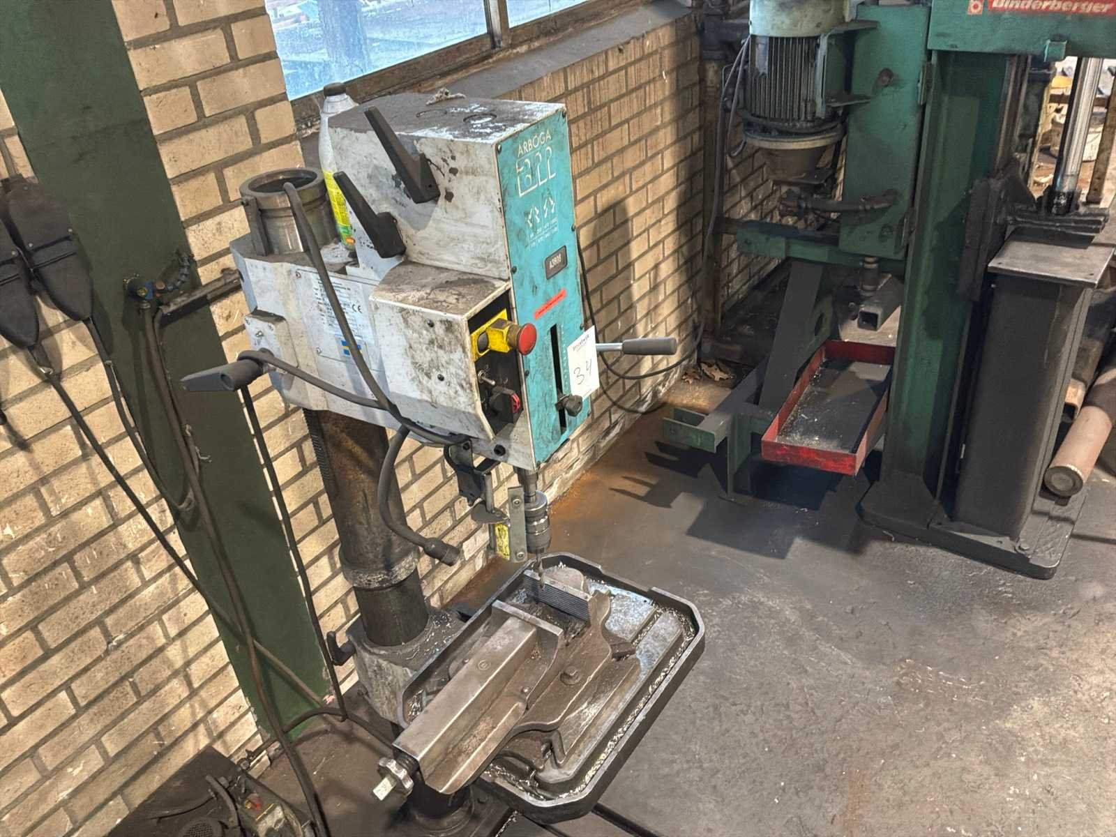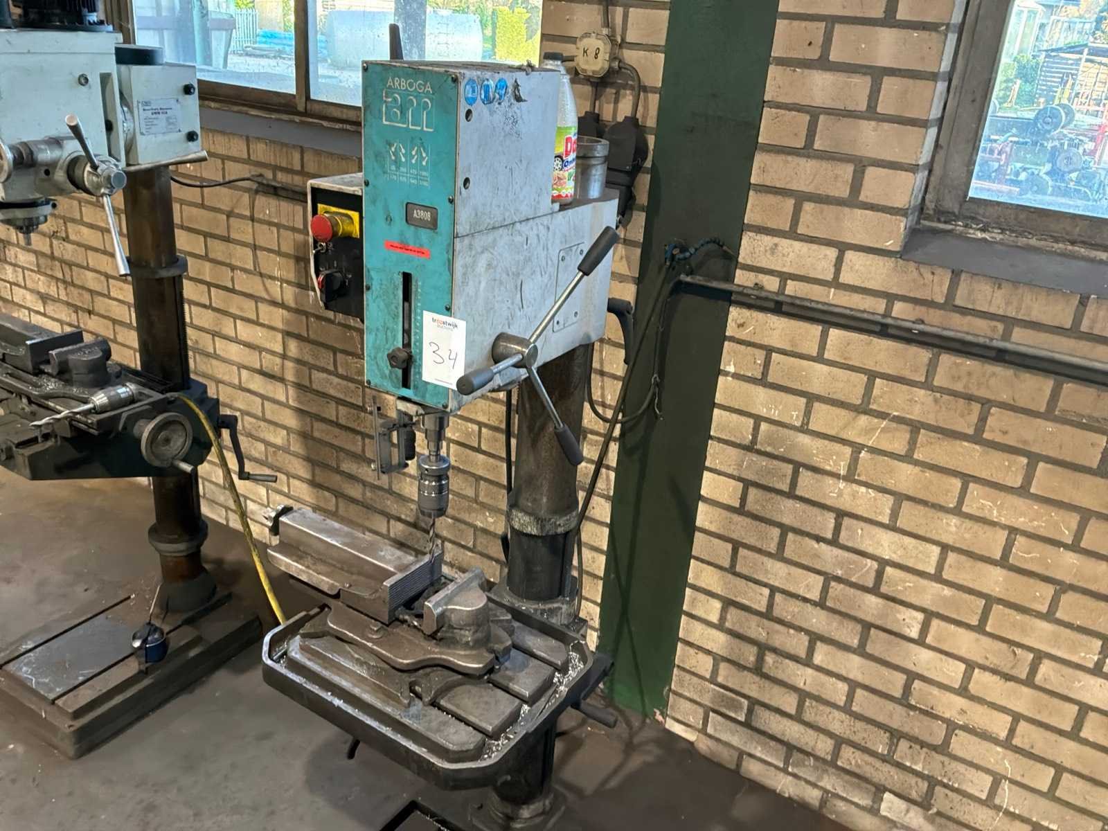 Voorzien van 2 toerental snelheden, links- rechtsom draaiend, t-gleuf opspantafel Merk: Arboga Type: A 3808 Bouwjaar: 2019 Serienummer: 411279 Aantal snelheden: 8 Spindelsnelheid van n =: 85rpm Spindelsnelheid tot n =: 3160rpm Boordiepte: 150mm Uitlading: 320mm Tandwiel aangedreven: true Tafel afmeting l: 400mm Tafel afmeting b: 500mm Motorvermogen (kW): 1.8kW Aansluiting: 400V Machinegewicht: 290kg Afmeting l: 700mm Afmeting h: 1700mm