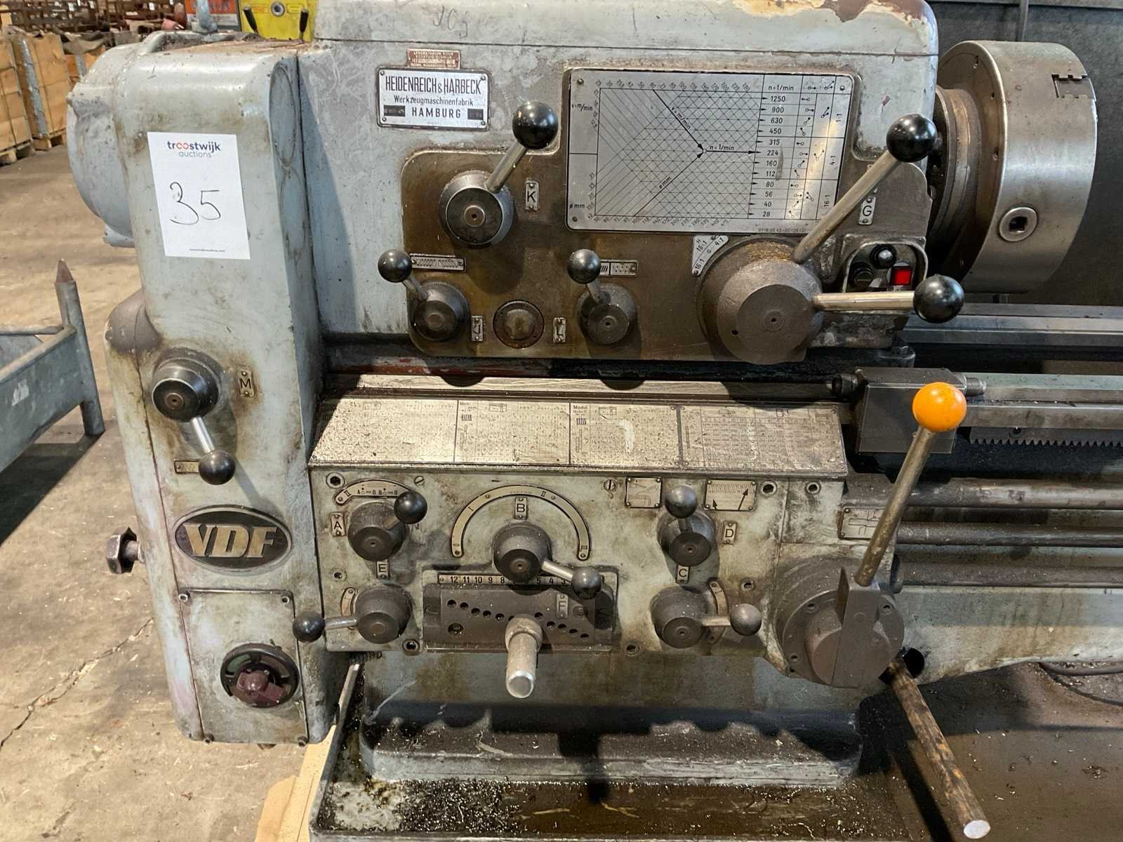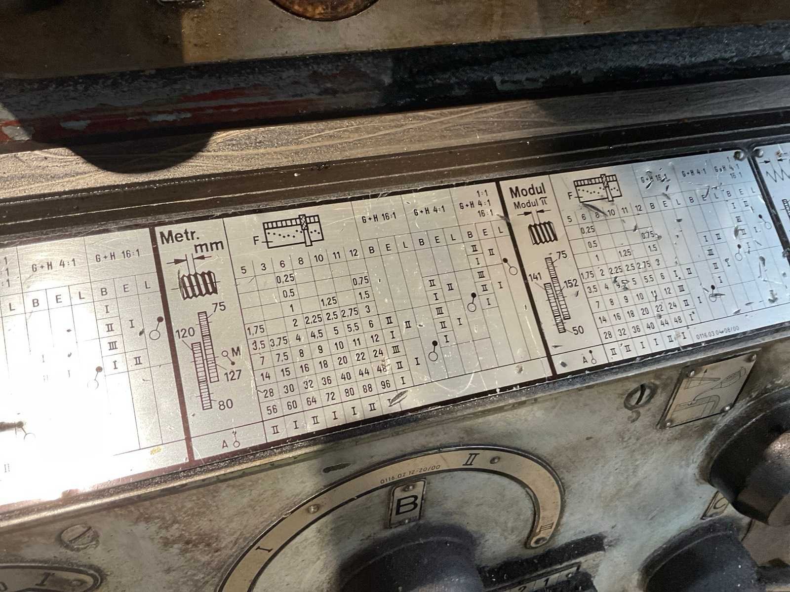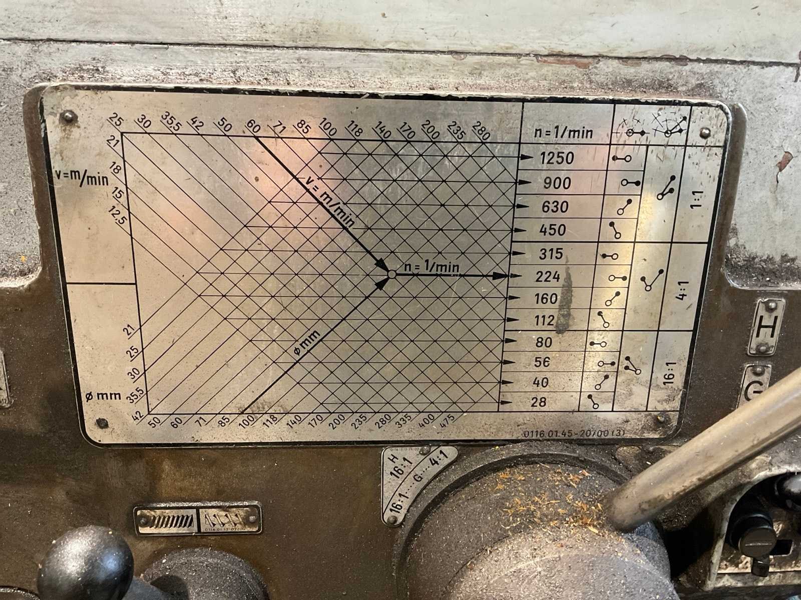 Inclusief 3-klauwplaat ø265mm, 2x steunbril, 3x3 opspanbekken Merk: VDL Type: 21R0 Serienummer: 800117-1605 Draailengte: 1000mm Draai: 200mm Holle spil Ø: 55mm Aantal snelheden: 12 Snelheid van n =: 28rpm Snelheid tot n =: 1250rpm Aantal gereedschapwisselstations: 1 Koelmiddelpomp: true Aansluiting: 400V Afmeting l: 3000mm Afmeting b: 1150mm Afmeting h: 1400mm