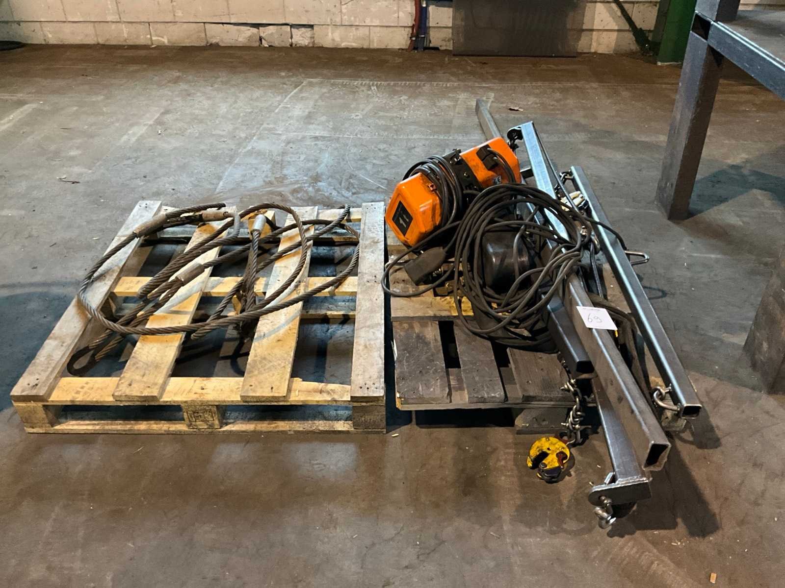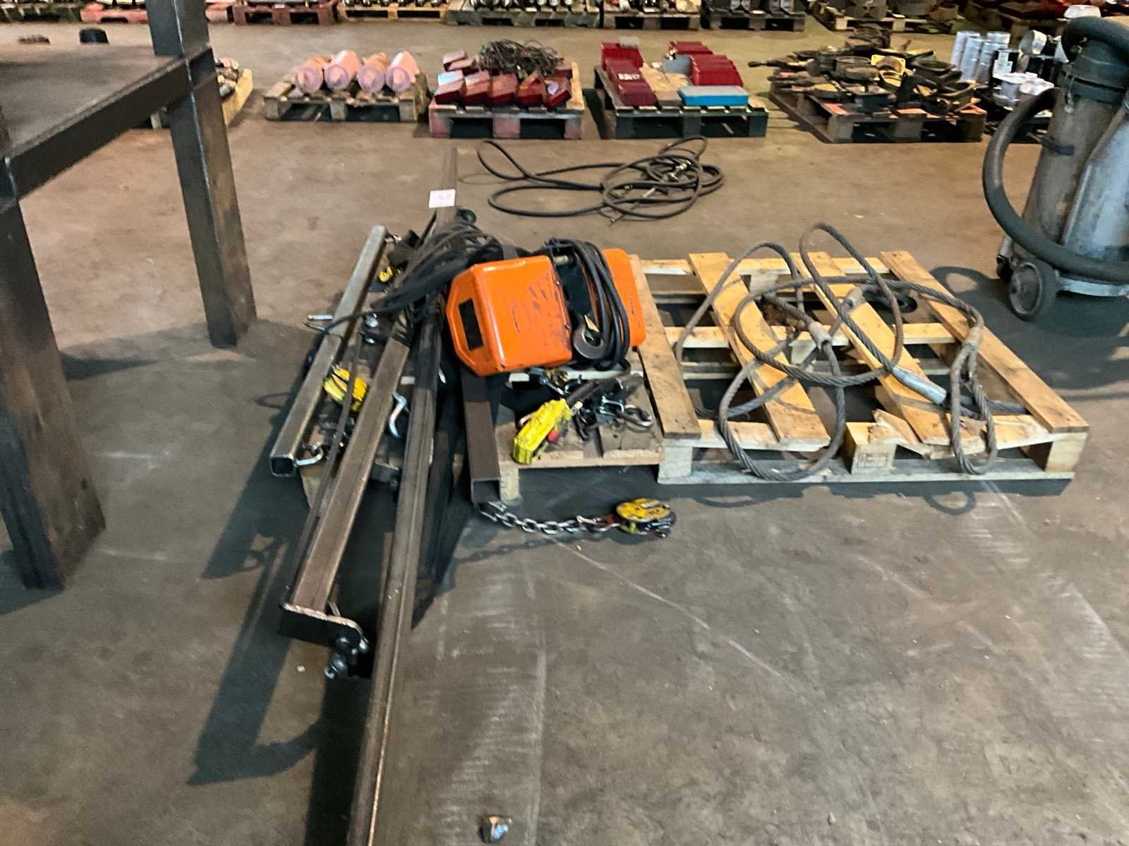 Voorzien van bedrade afstandsbediening, diverse hijsevenaren, inclusief pallet met hijskabel Merk: Hitachi Hijsvermogen: 1000kg Aansluiting: 400V