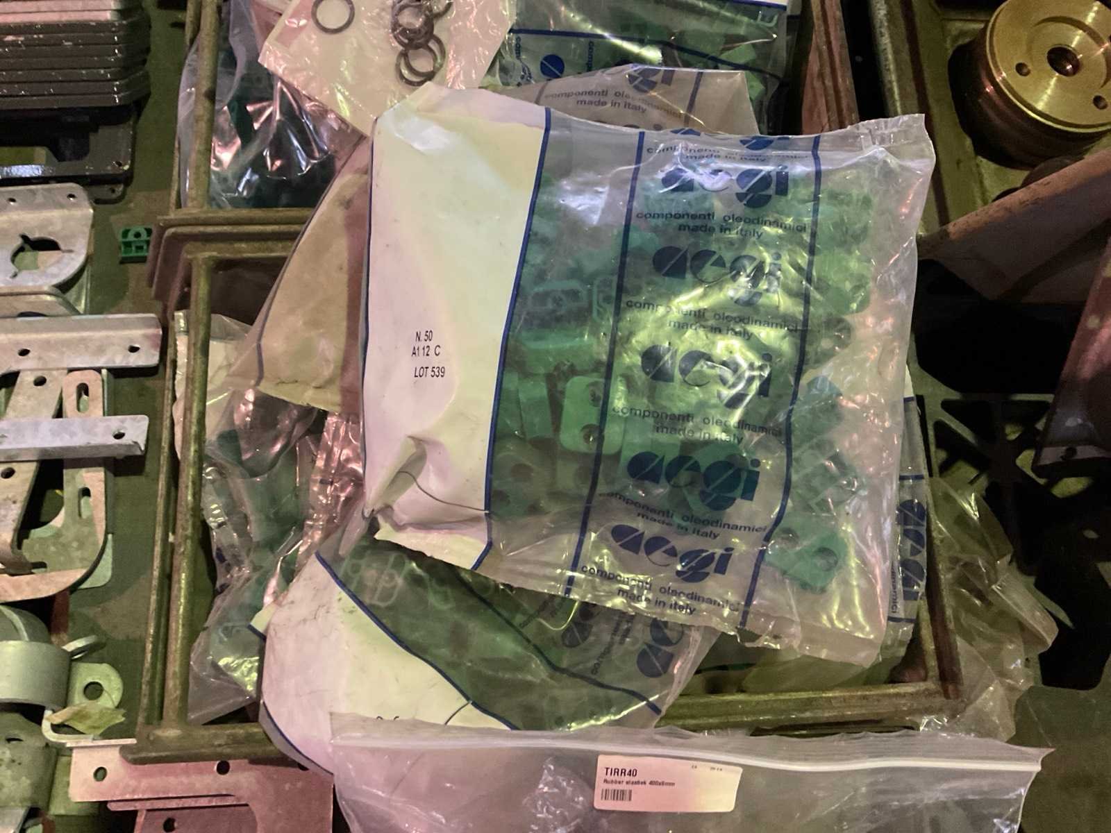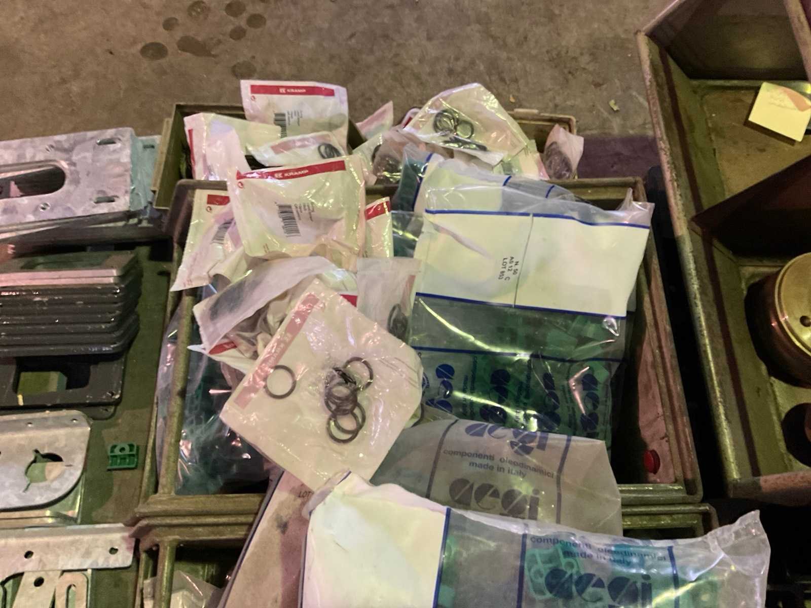 Waaronder O-ringen, bevestigingsplaten, partij Ocgi A1 12 C hydraulische afdichtingen, rubber elastieken 400x8mm, etc. Op in inclusief pallet.