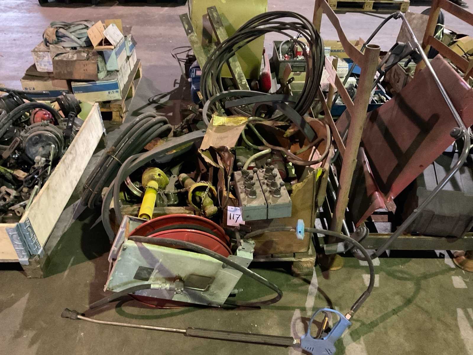 Waaronder hydrauliek stuurblok met bediening, aftakas, vulplaten, hydrauliek slang, afdicht rubber, slanghaspel met lans, etc. Op in inclusief pallet.