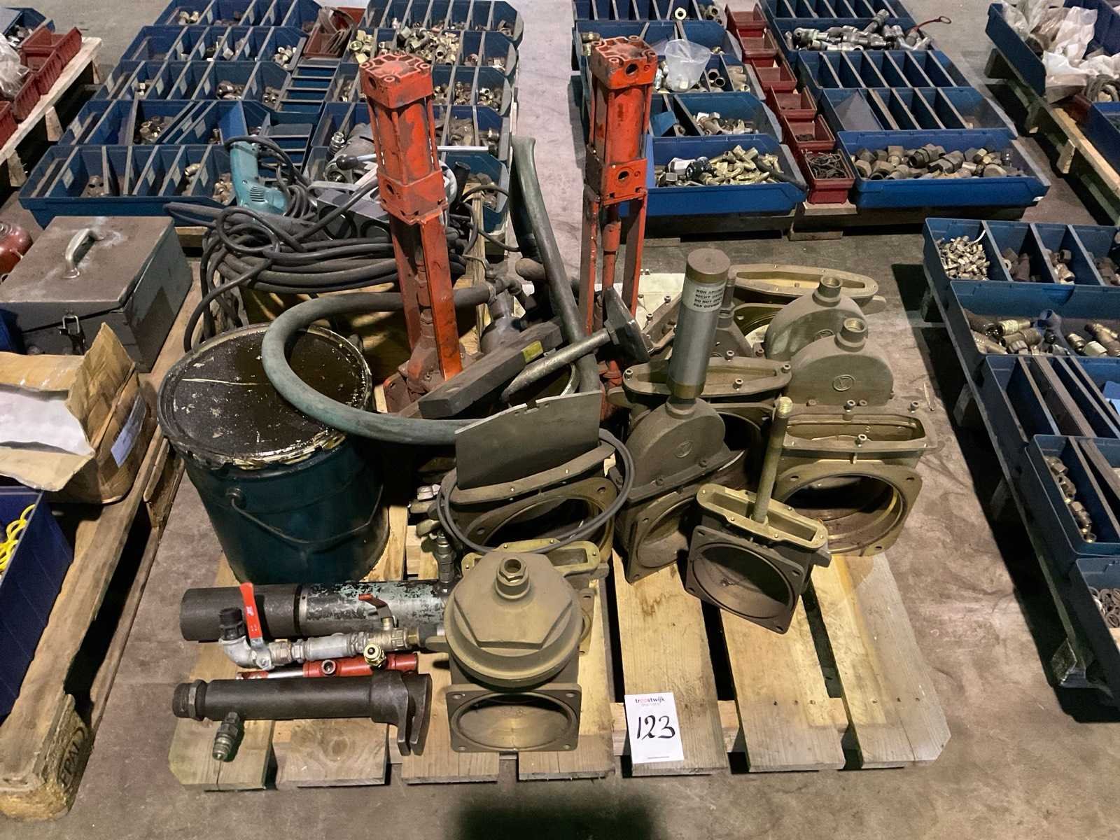 Waaronder messing afsluiters voor mesttanks, elektrisch gereedschap waaronder magneetboor (vermoedelijk defect), etc. Op en inclusief pallet.