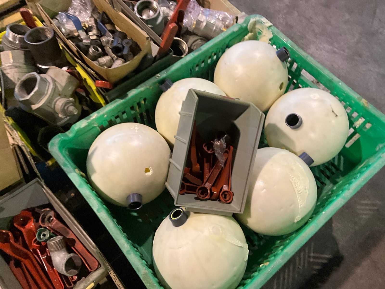 Alles op 1 pallet, onder andere vlotter ballen, kogelkranen, etc