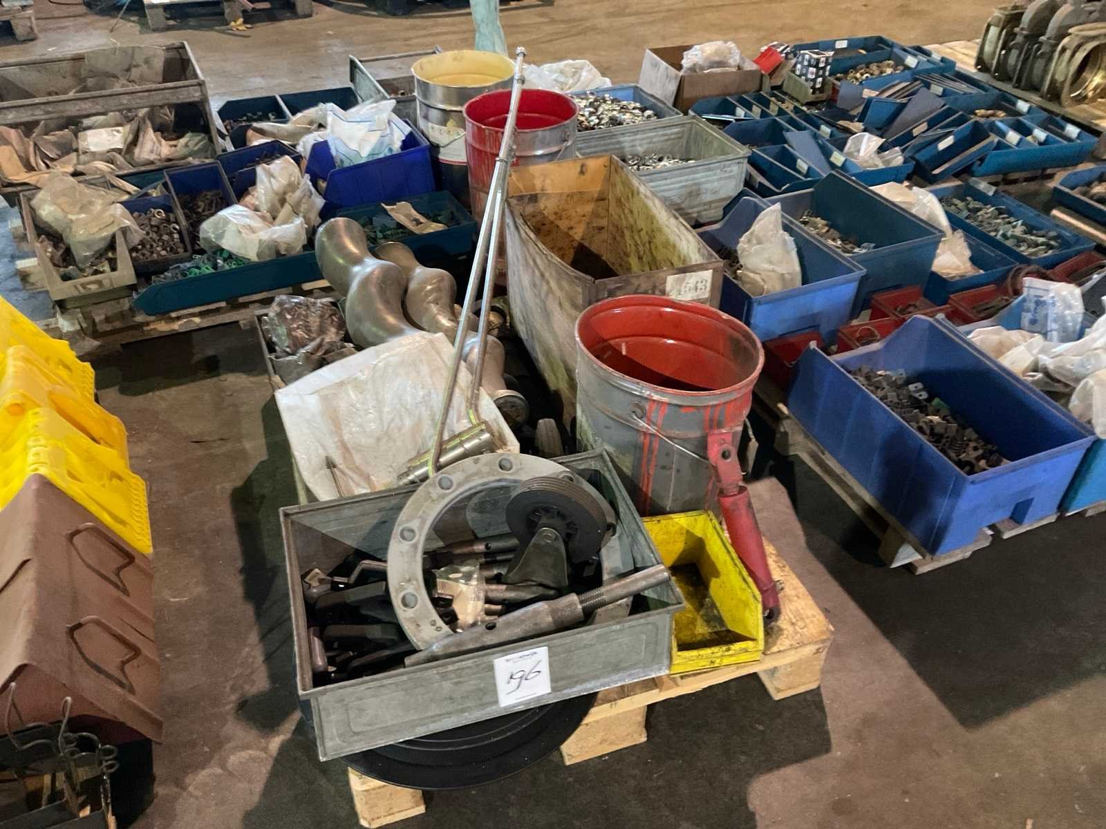 Waaronder 4x worm voor bongerpomp, 2x inlaatklep voor bongerpomp, inclusief partij hijsharpen, hydraulische werkcilinders L 20cm, 2x niveauwijzer, etc. Op en inclusief pallet.