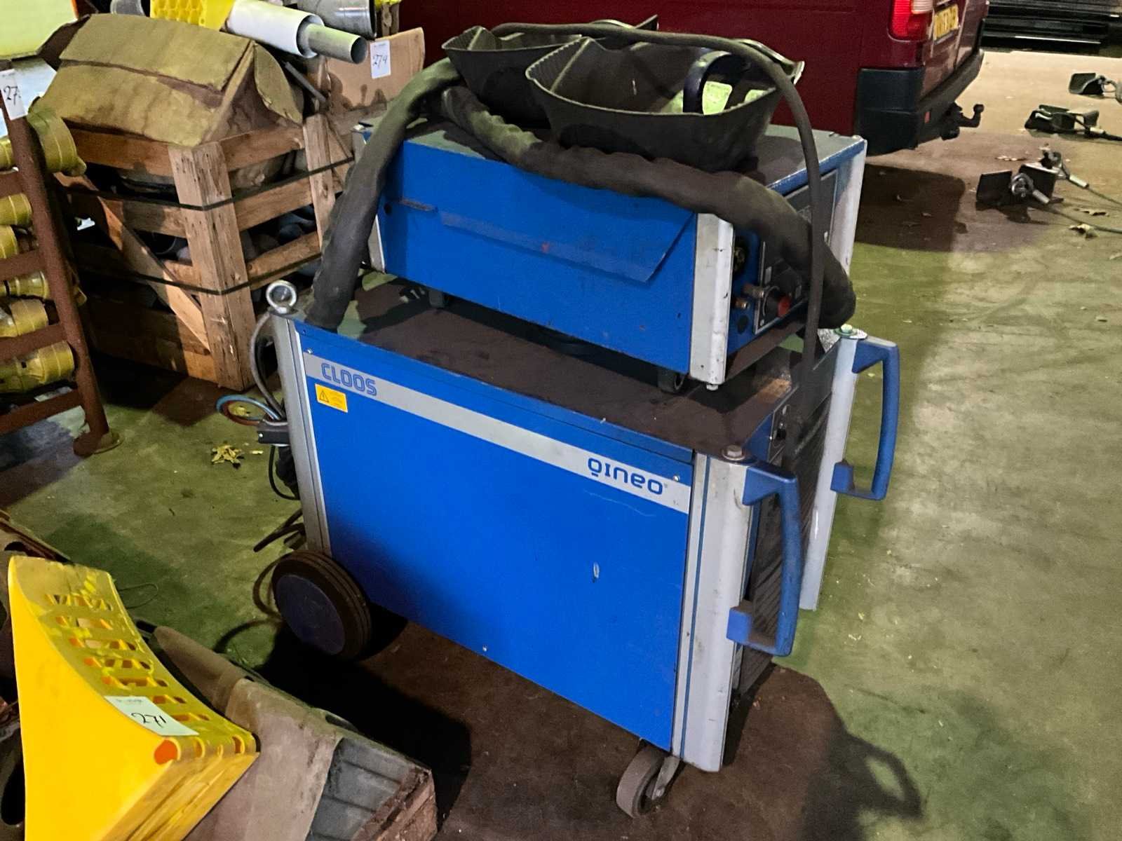Let op! volgens opgave defect, Merk: Cloos Type: Qineo Pulse Inschakelduur: 60% Max. lasvermogen: 350A Aansluiting: 400V Digitale uitlezing: true Draadaanvoerunit: true Afmeting l: 1100mm Afmeting b: 700mm