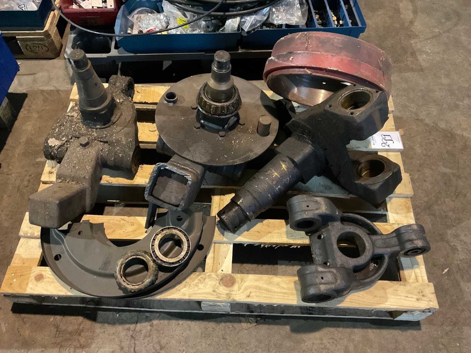 Waaronder hef-/kantelverbinding, fusee/kingpin verbinding, fusee-/stuurnaaf. Op en inclusief pallet.