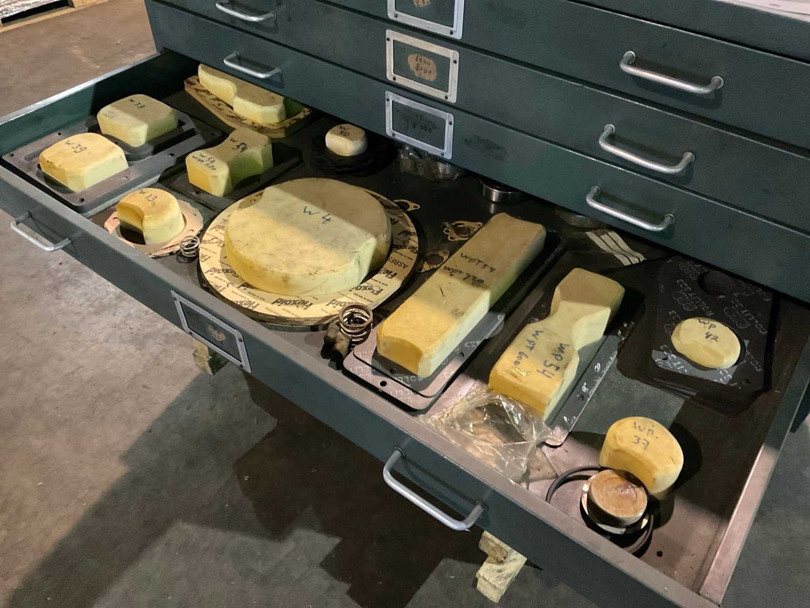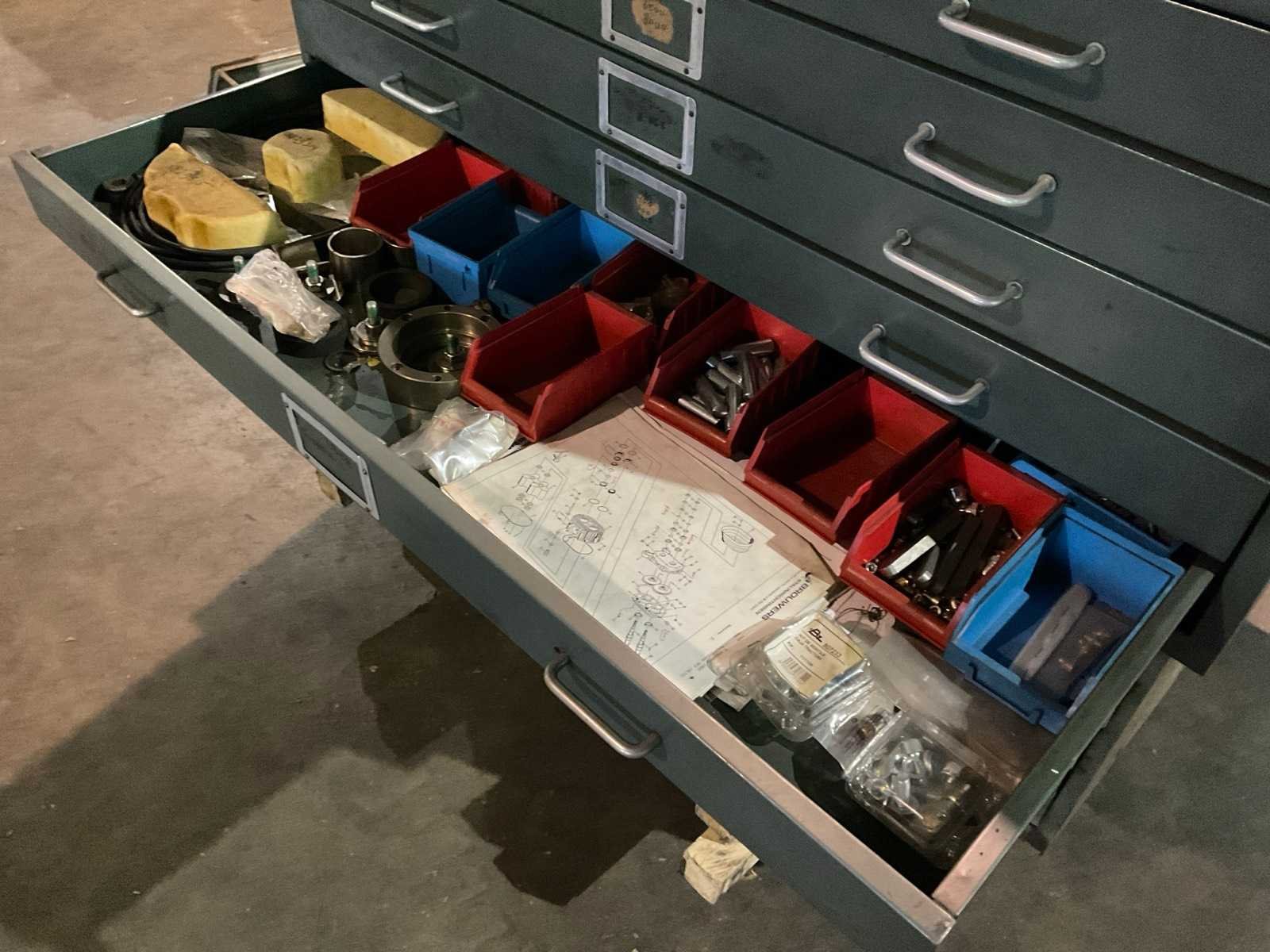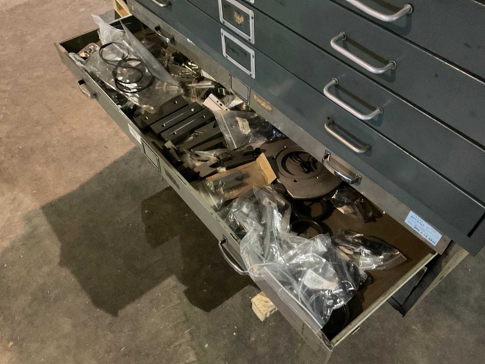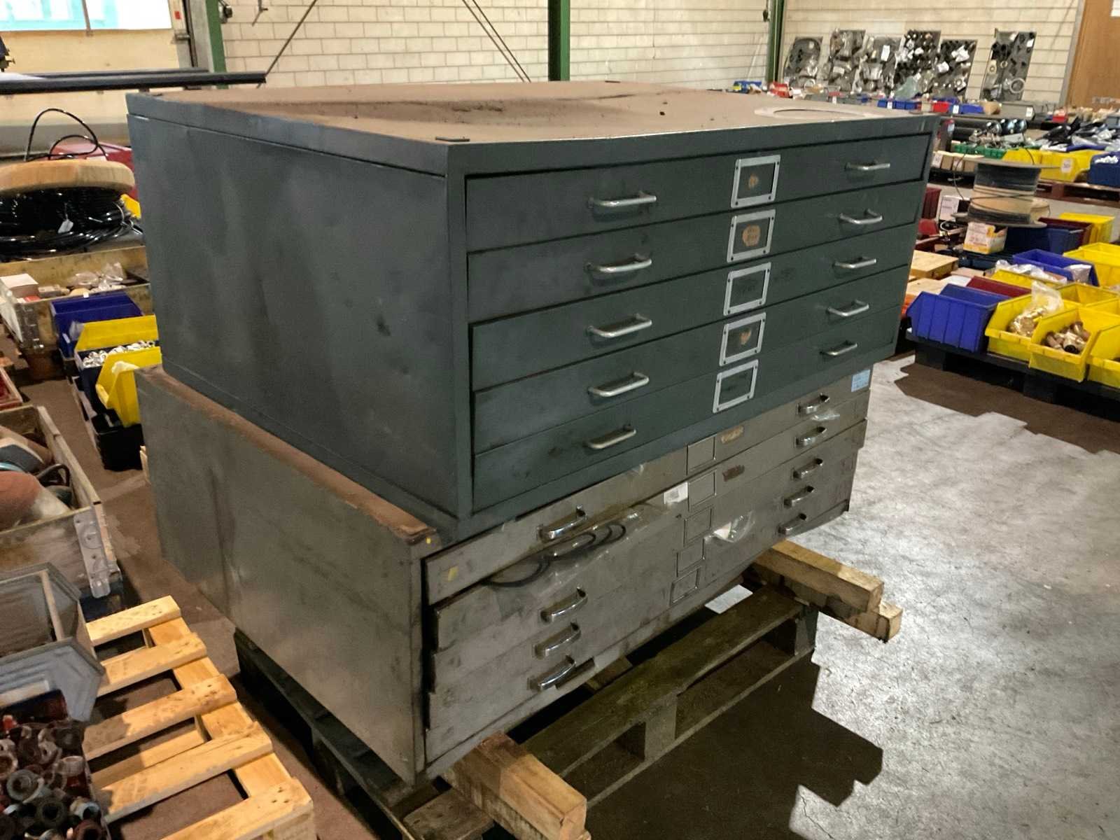 Voorzien van elk 5 laden met inhoud, 1x afmeting 132x94x54cm, 1x afmeting 134x94x45cm Materiaal: Staal