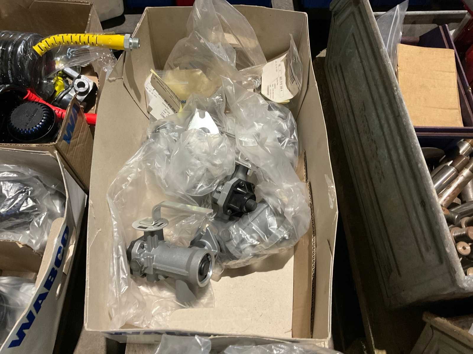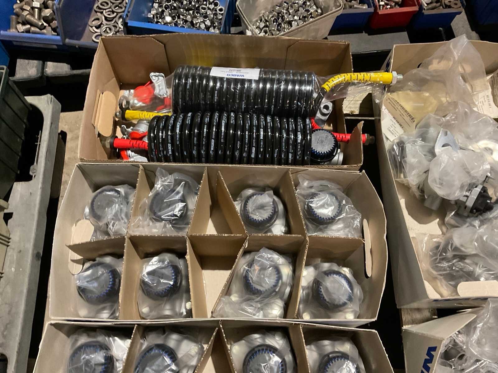 Partij Wabco luchtdruk-beveiligingsventielen, luchtslangen, etc. Op en inclusief pallet.