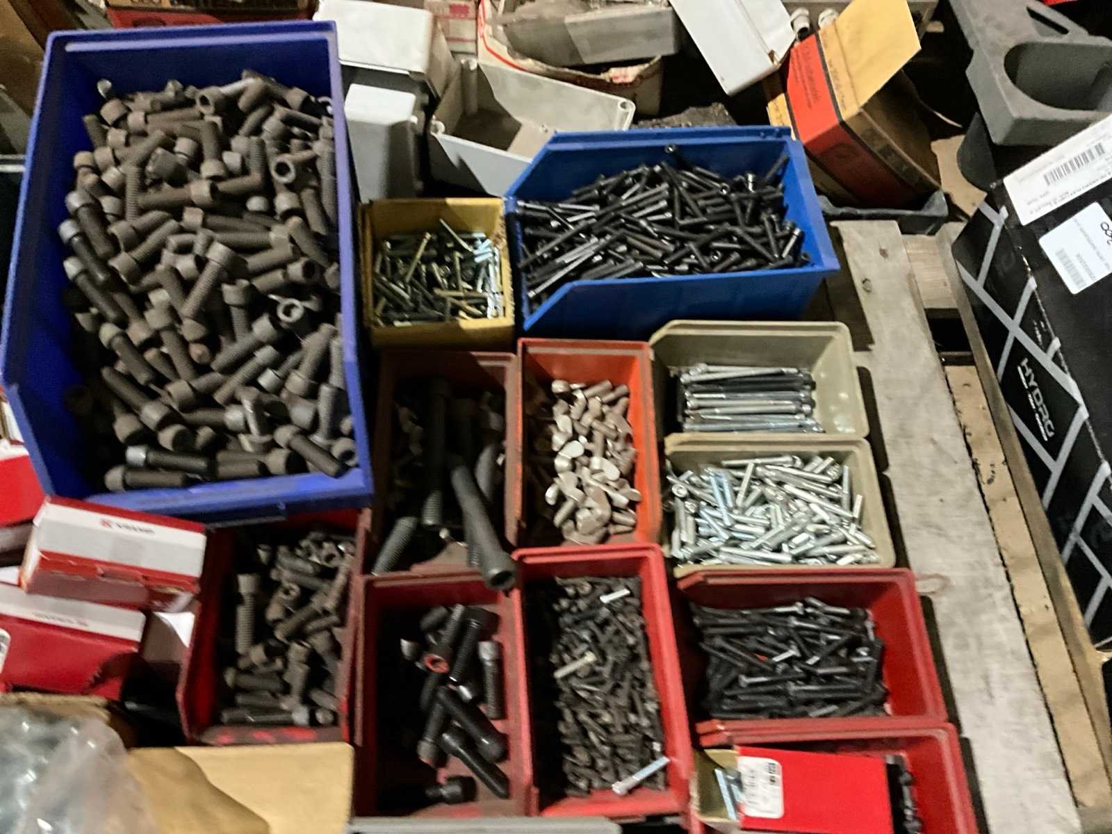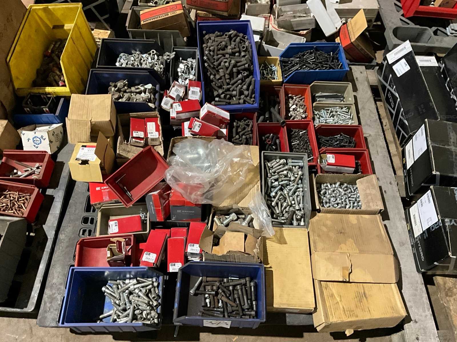 Bestaande uit diverse maten vleugel/inbus bouten, vleugelmoeren, in grijpvoorraad bakken op en met 1 pallet