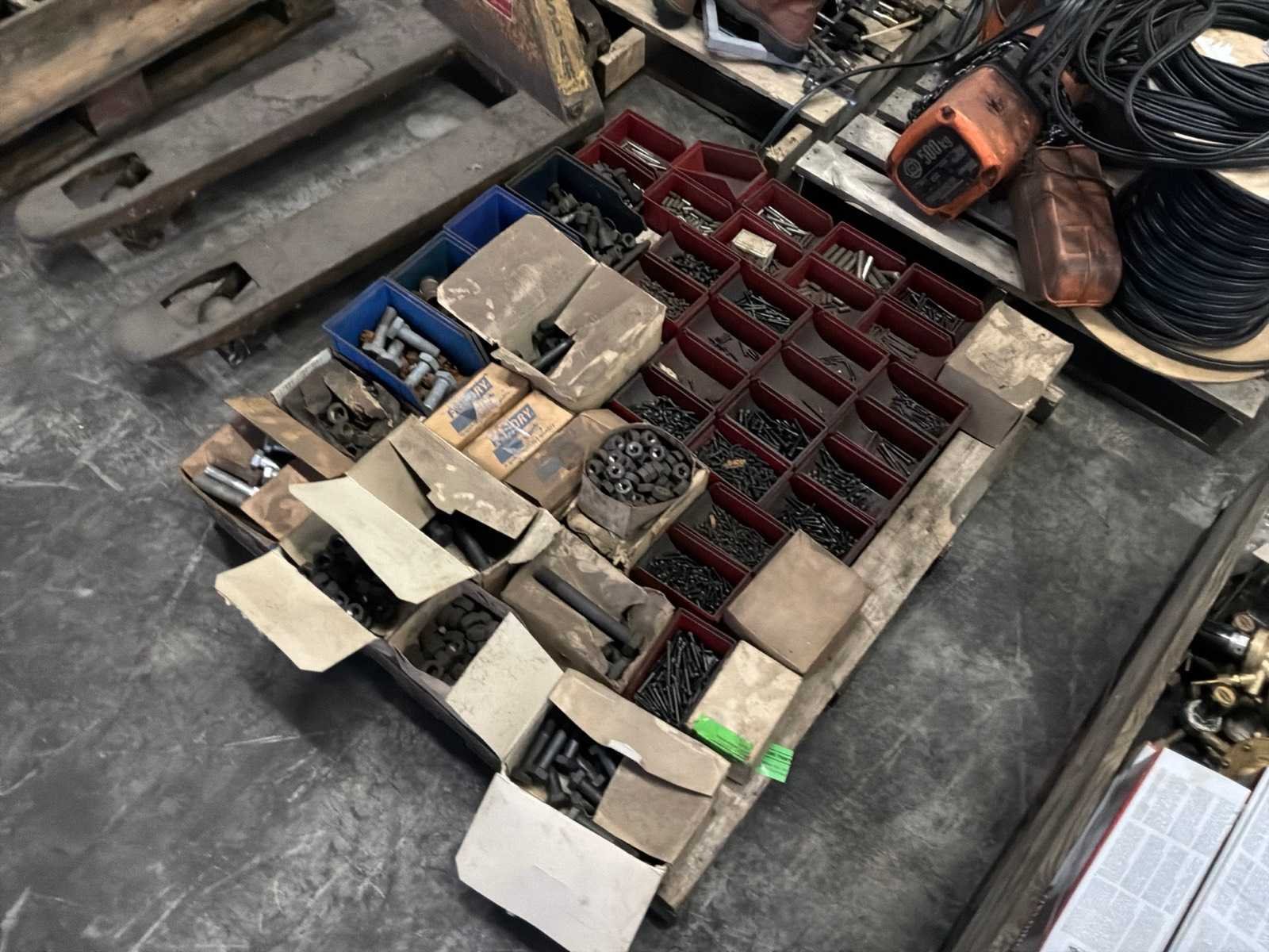 Grijpvoorraad bouten, moeren, op en inclusief pallet.