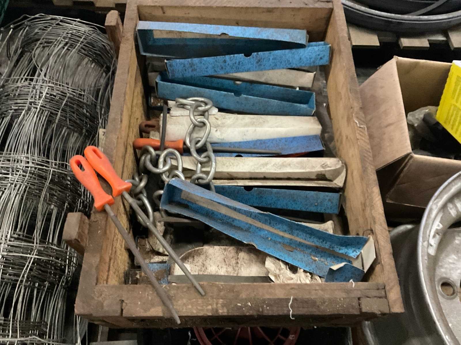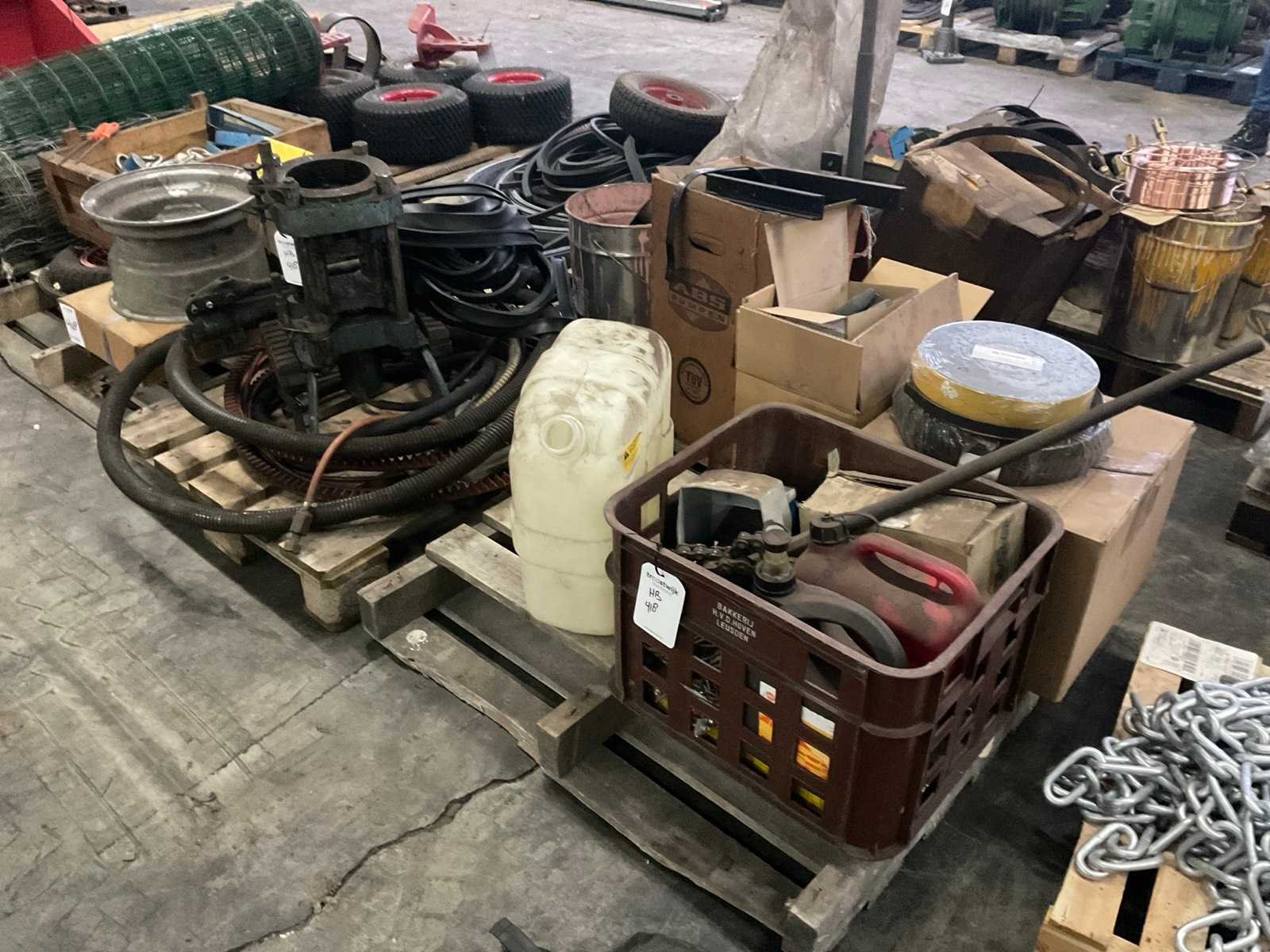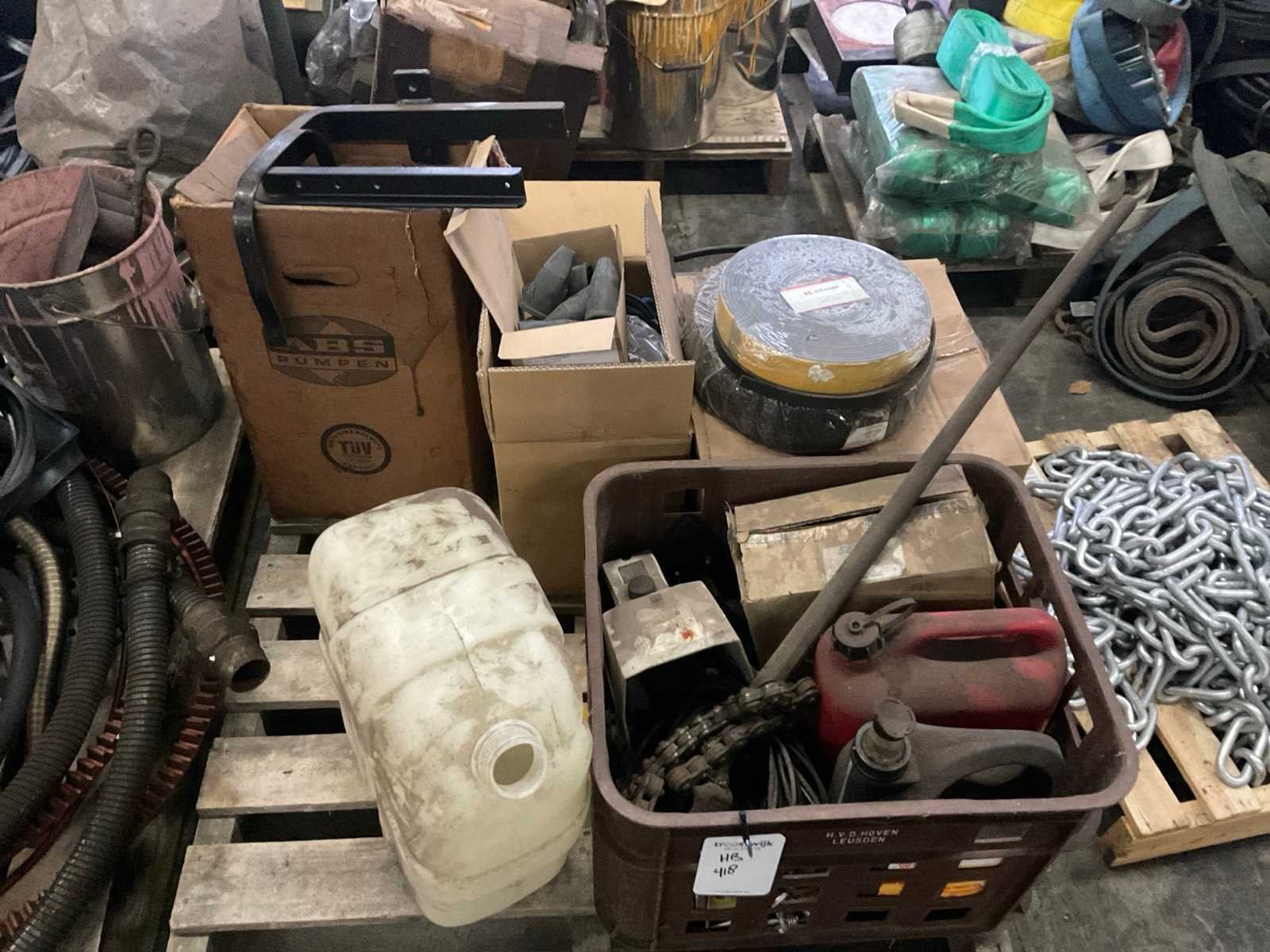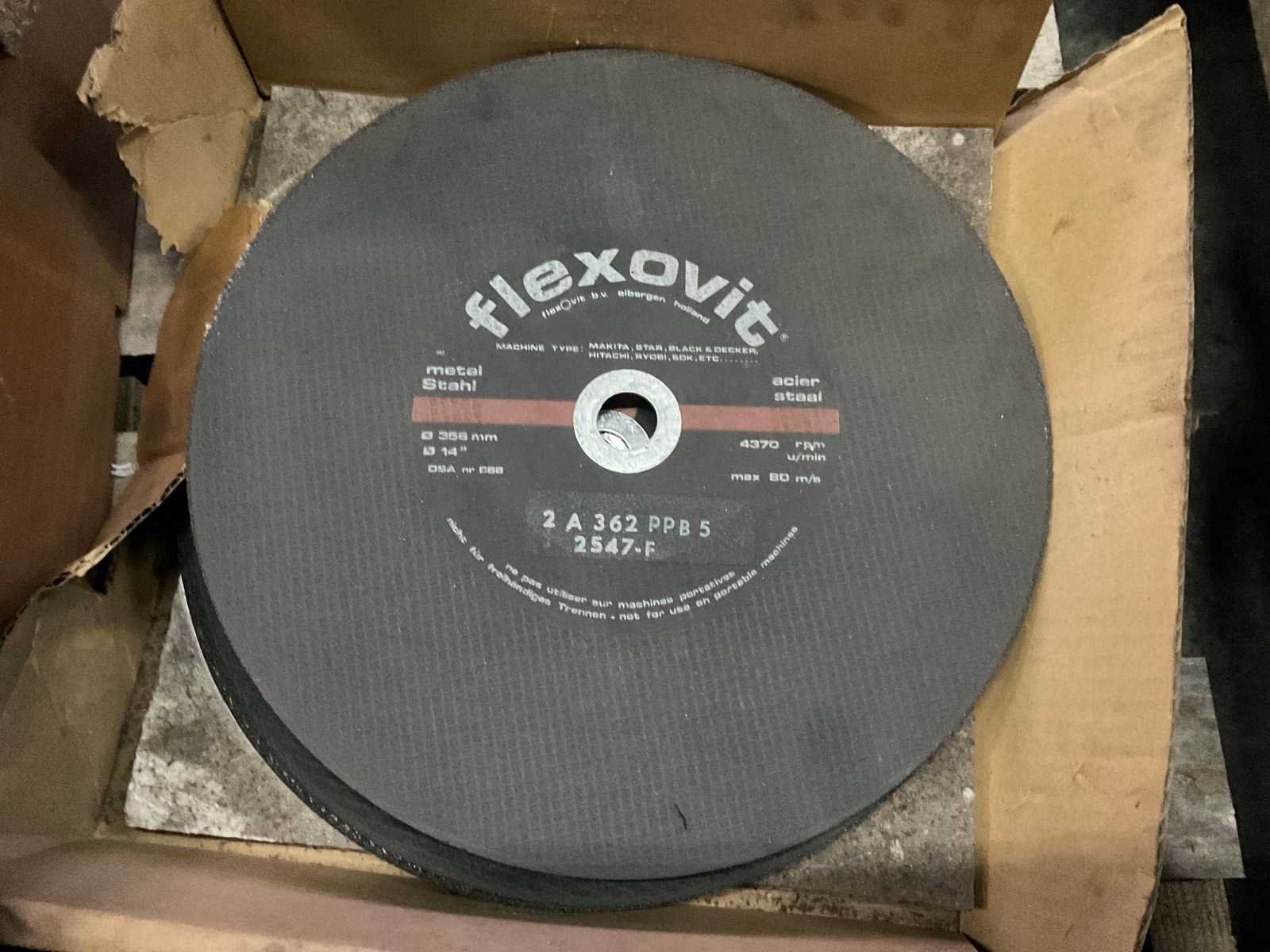 Waaronder Flexovit slijpschijven ø 356mm, partij rondvijlen, draadsnijmachine, Kramp afdichtband, Arag schuimmarkeerder, etc. Op en inclusief 3x pallet.