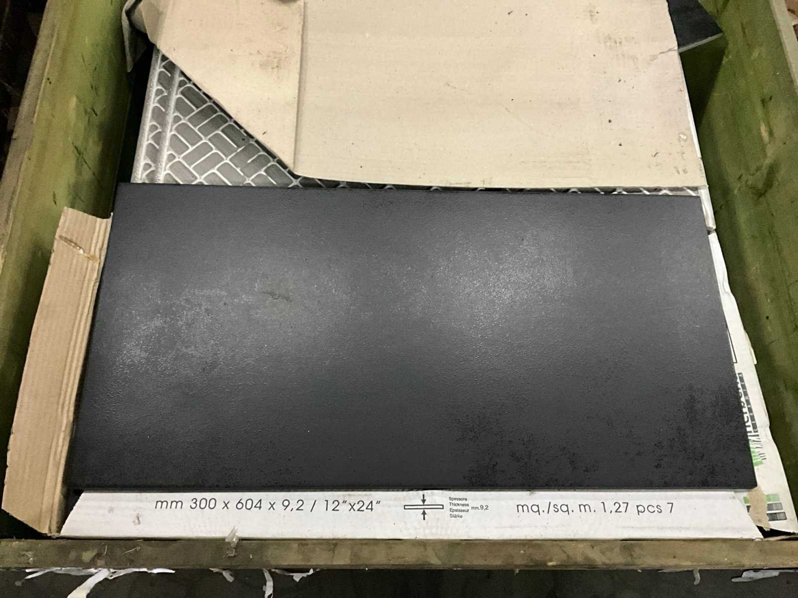 In en met palletkist Kleur: Black Lengte: 300mm Breedte: 604mm Dikte: 9.2mm Aantal m² per verpakking: 1.27m² Aantal pakken: 13 Totaal oppervlakte: 16m²