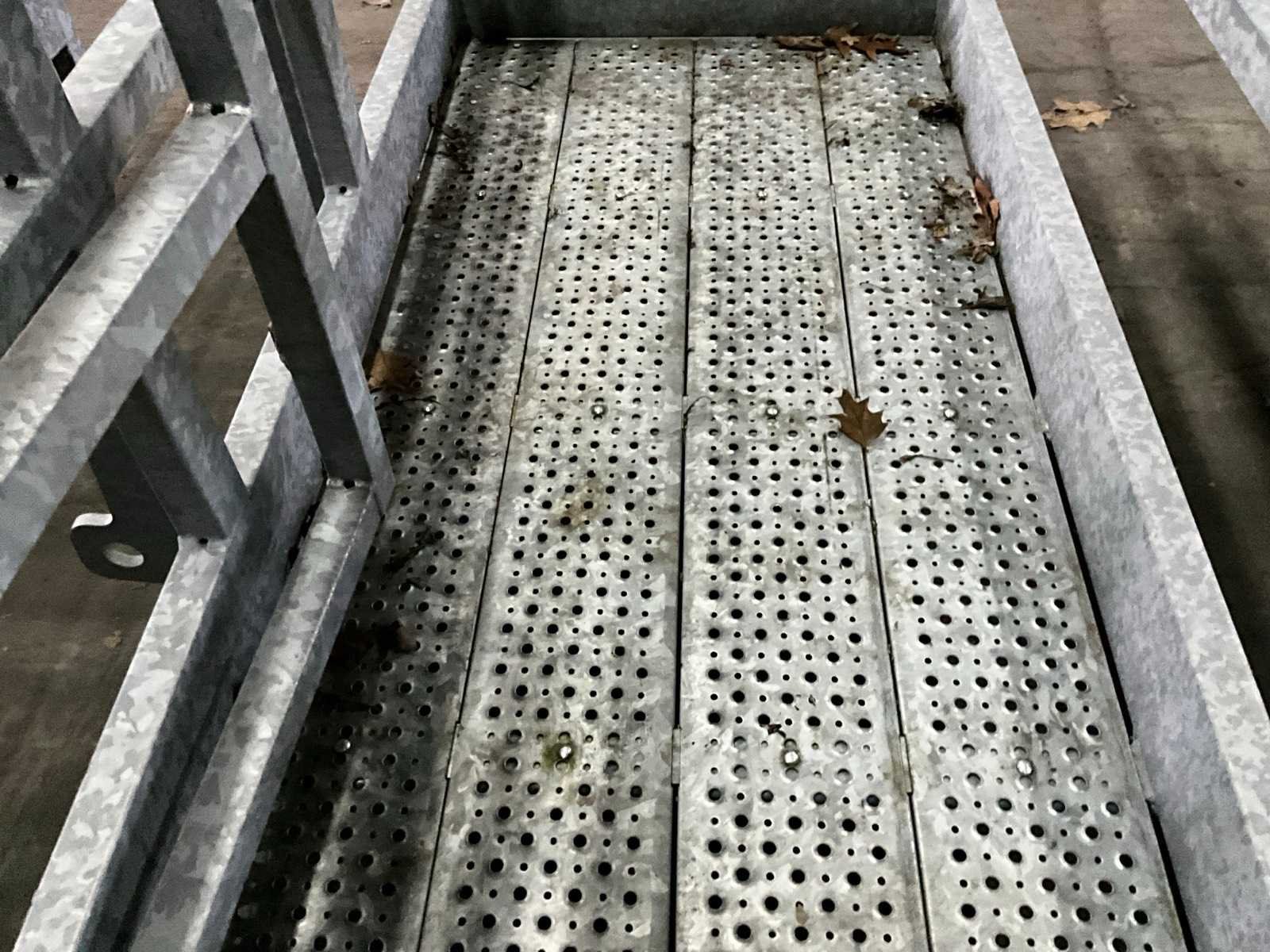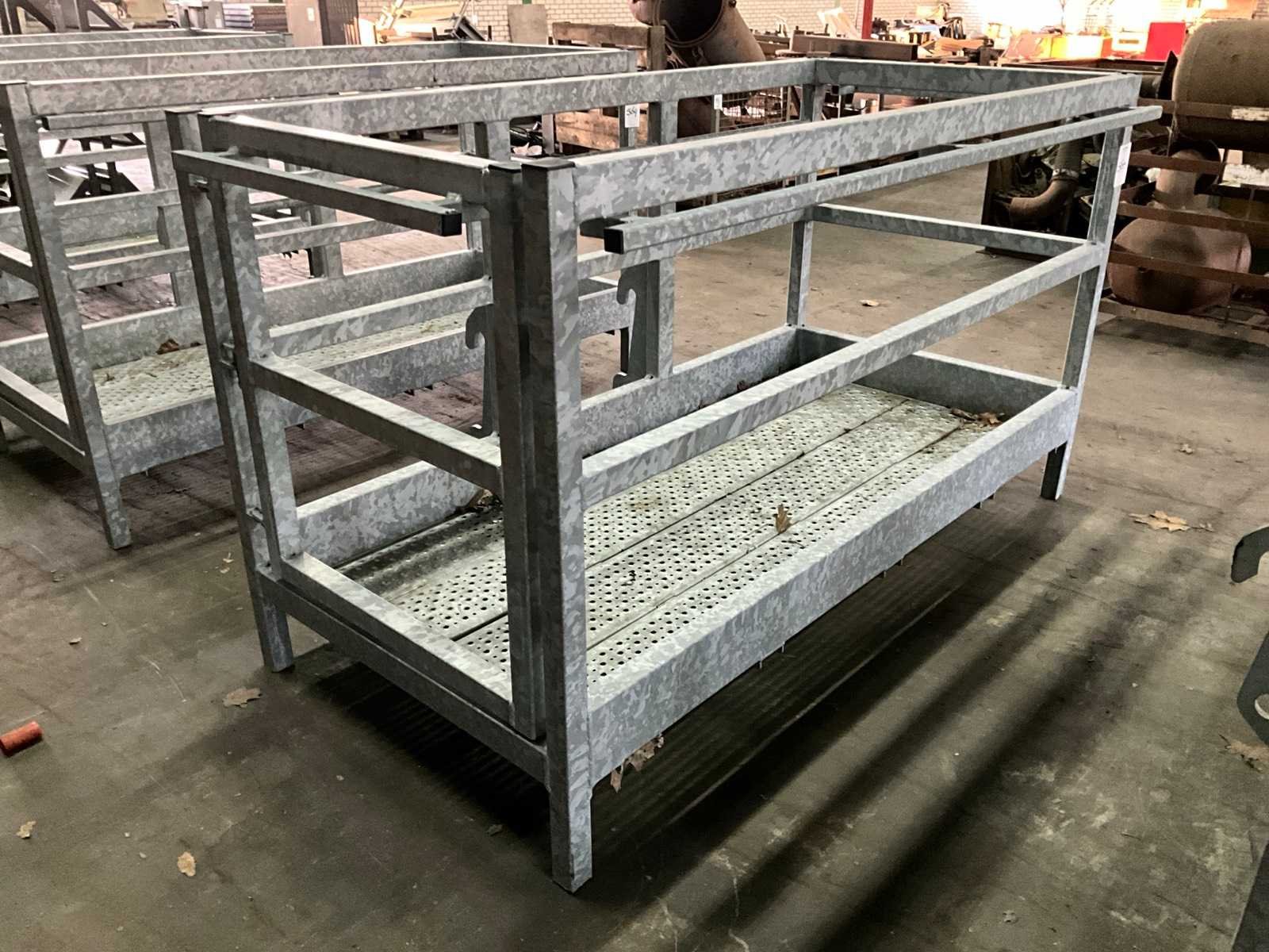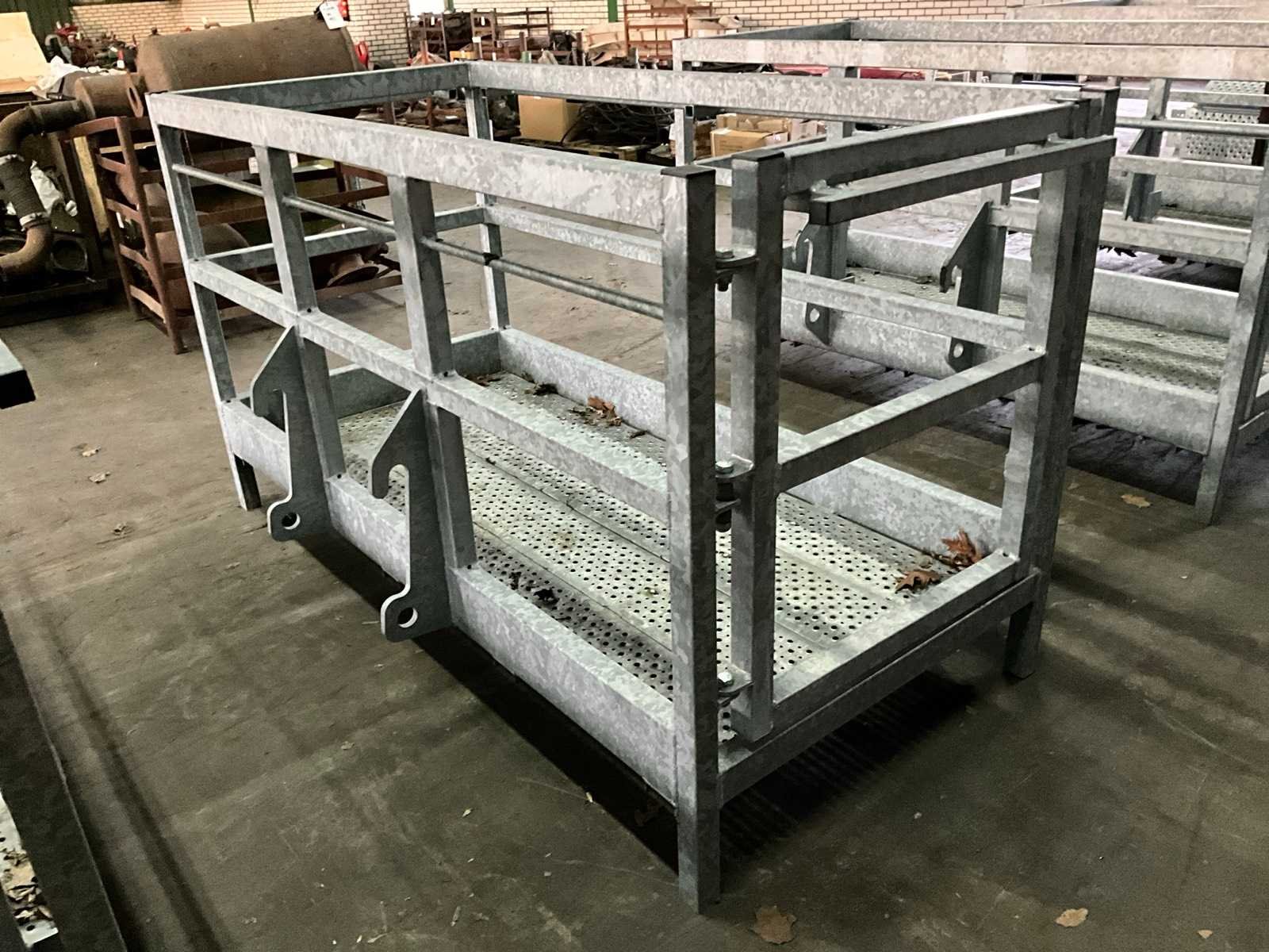Voorzien van wiellader adapter (breedte hart/hart 580 mm, hoogte hart/hart 320 mm), bak met automatisch sluitende deur, reling (total reling hoogte 1000 mm), Totale afmeting L: 1300mm Totale afmeting Breedte: 2280mm Totale afmeting Hoogte: 1200mm
