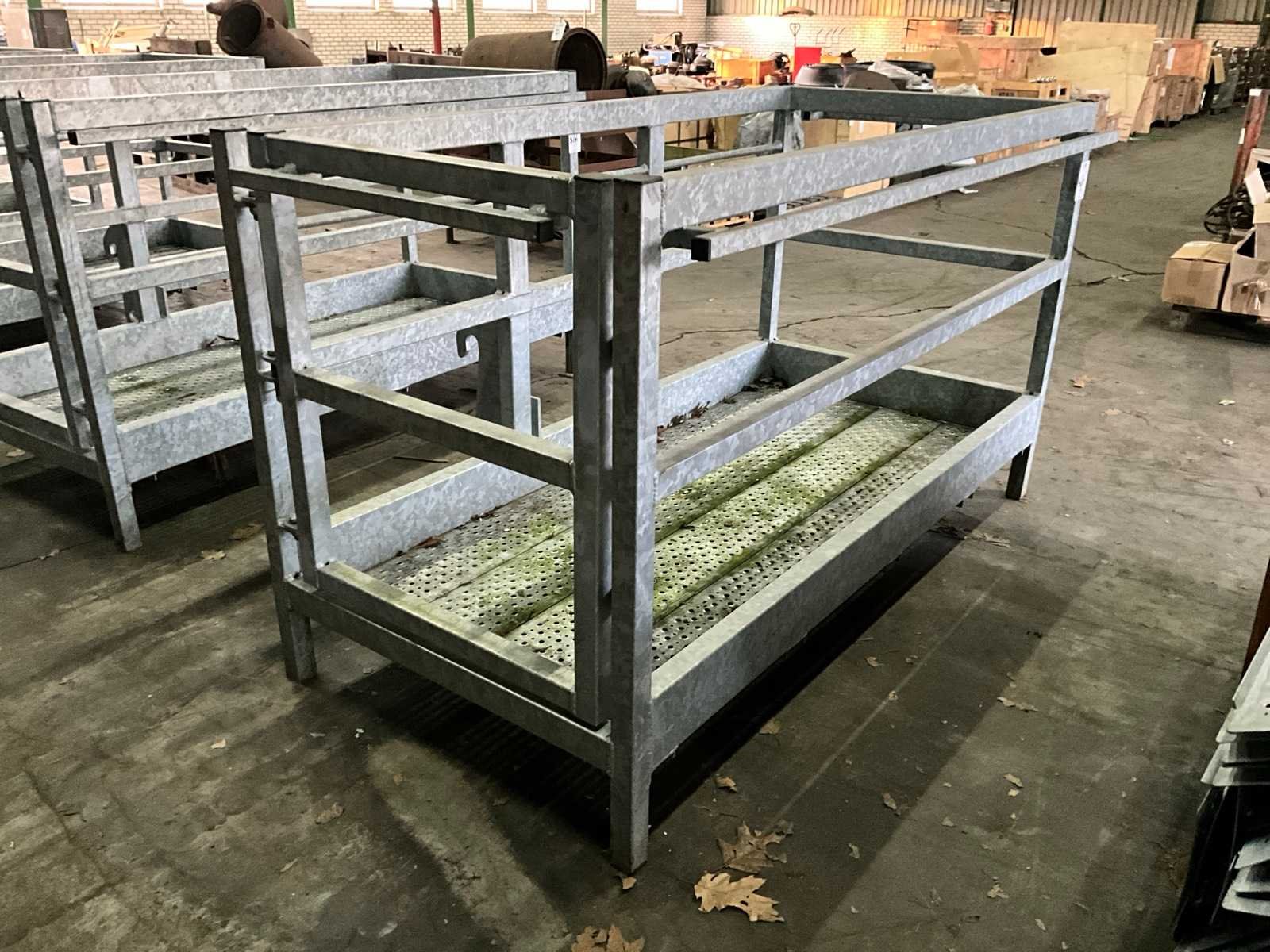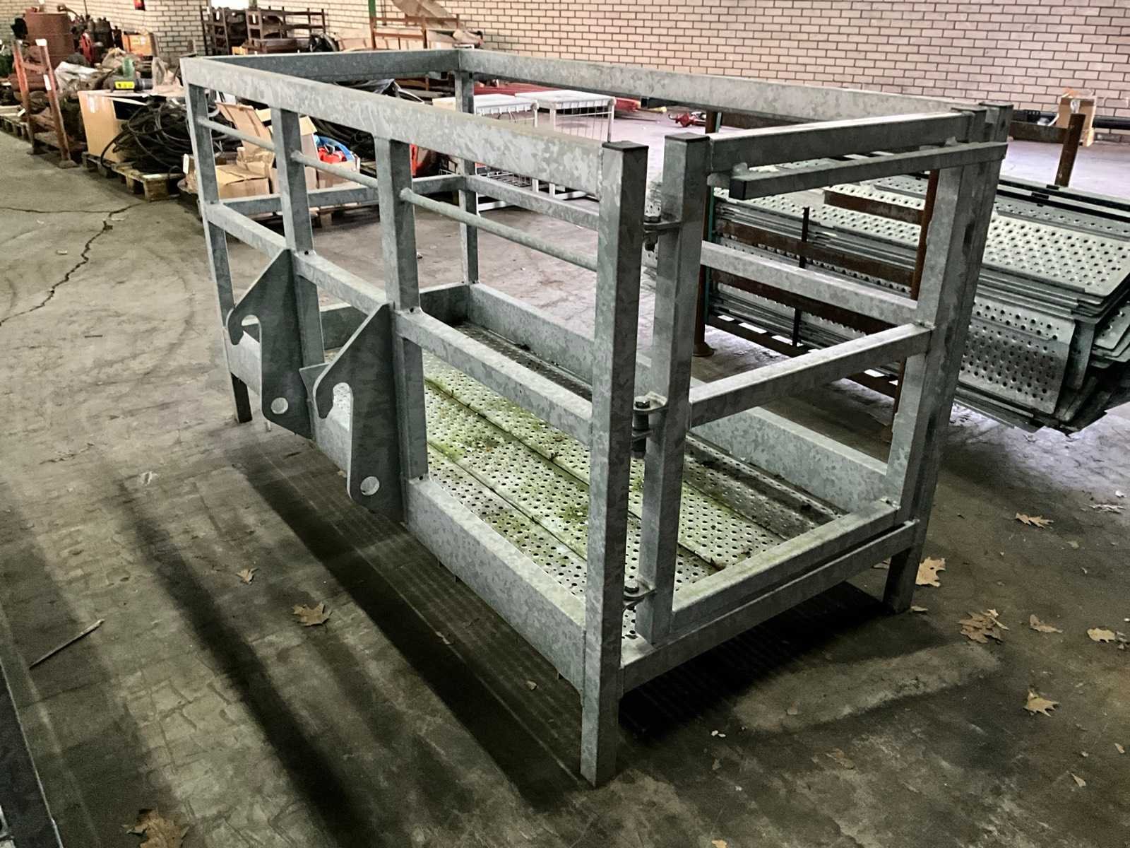 Voorzien van wiellader adapter (breedte hart/hart 560 mm, hoogte hart/hart 270 mm), bak met automatisch sluitende deur, reling (total reling hoogte 1000 mm), Totale afmeting L: 1300mm Totale afmeting Breedte: 2280mm Totale afmeting Hoogte: 1200mm