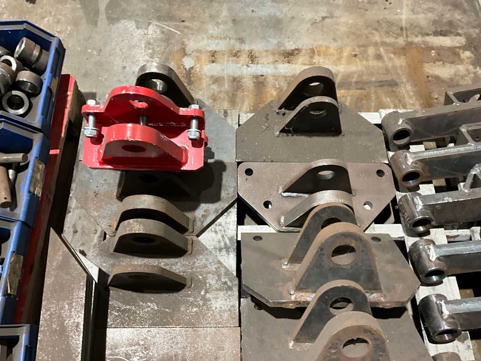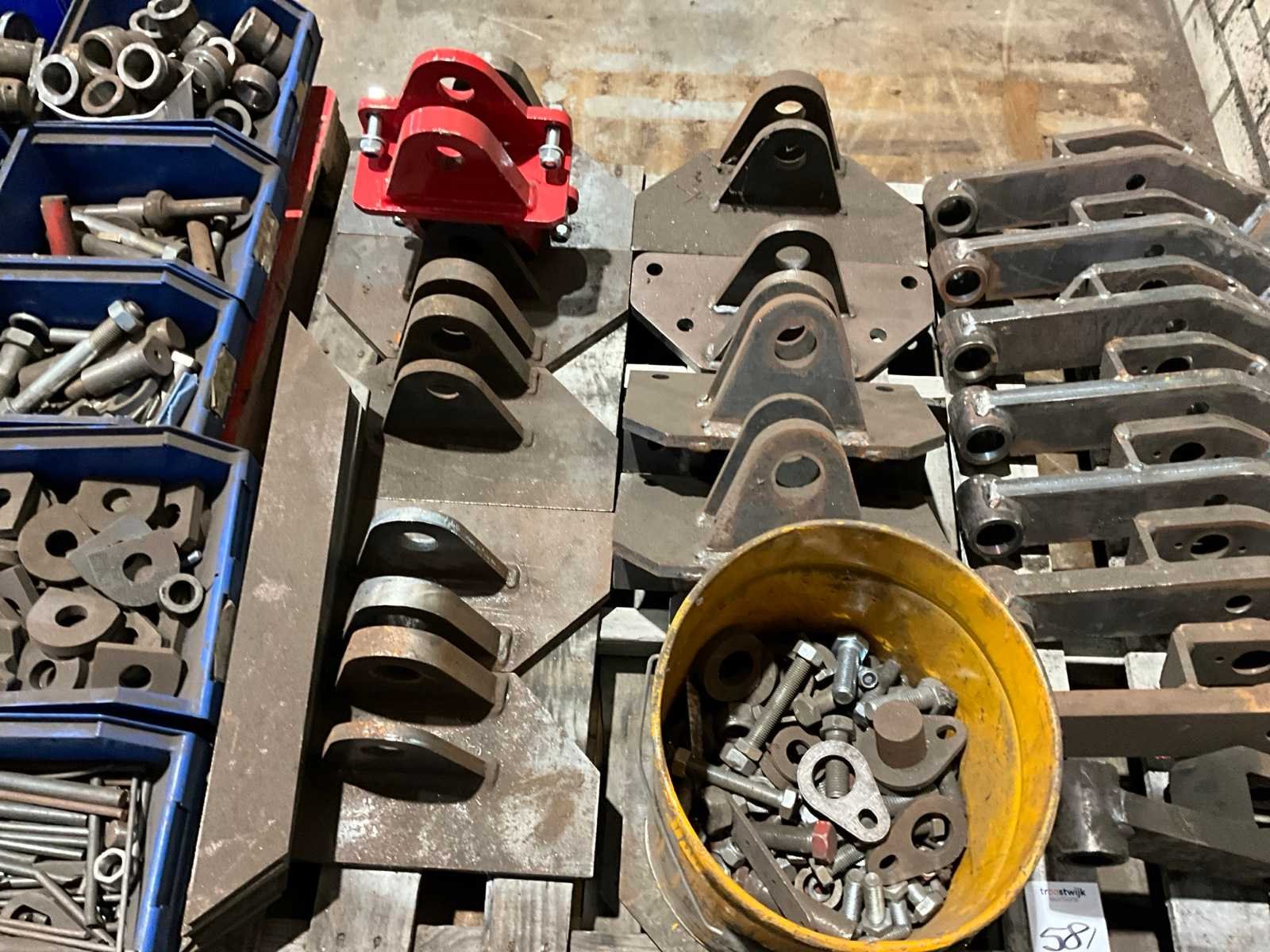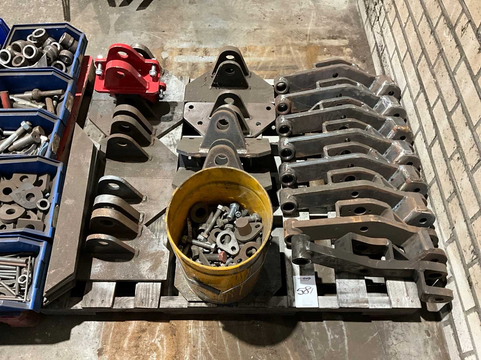 Circa 9x halffabrikaat trekhaak, 8x besturing tuimelaar, alles op en met 1 pallet