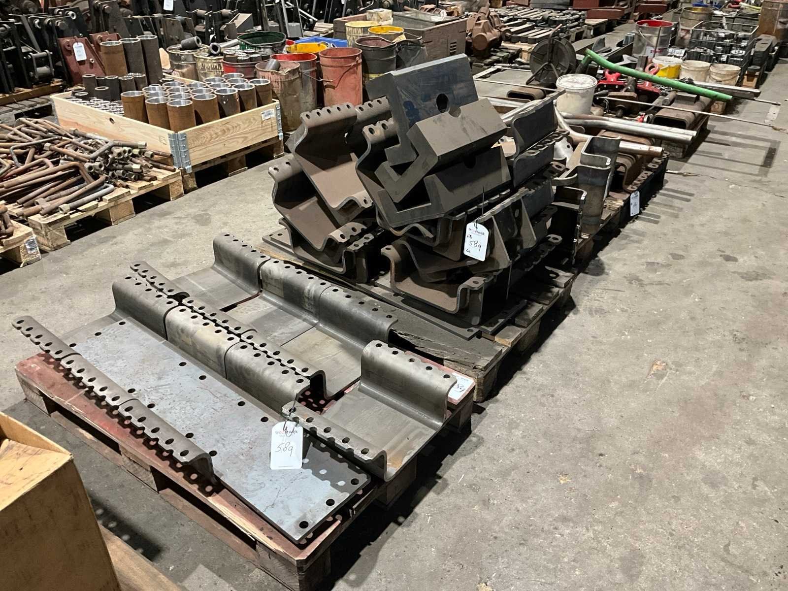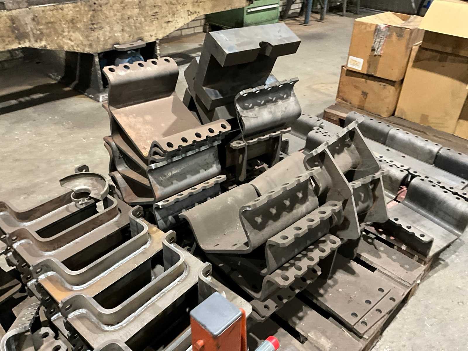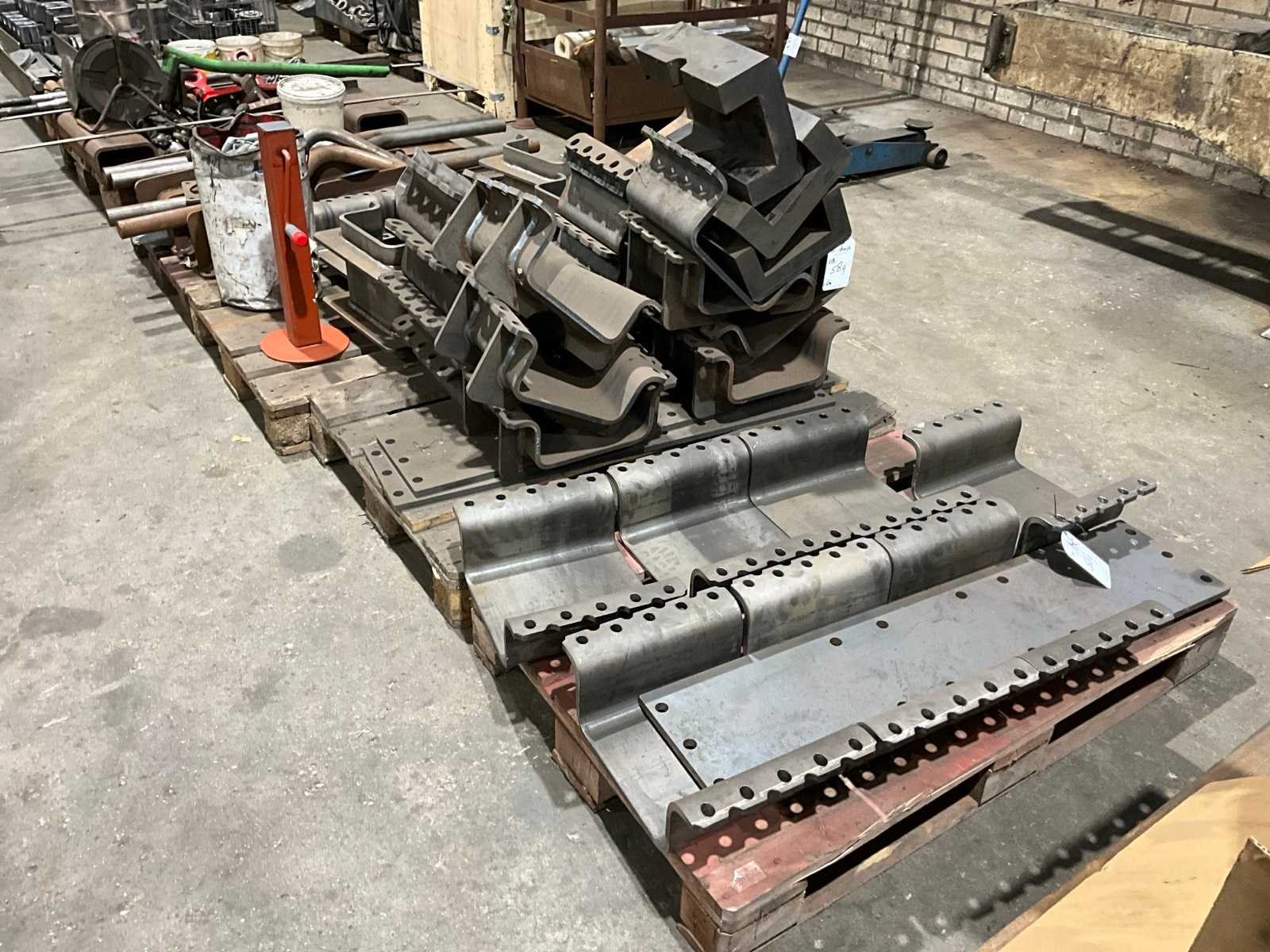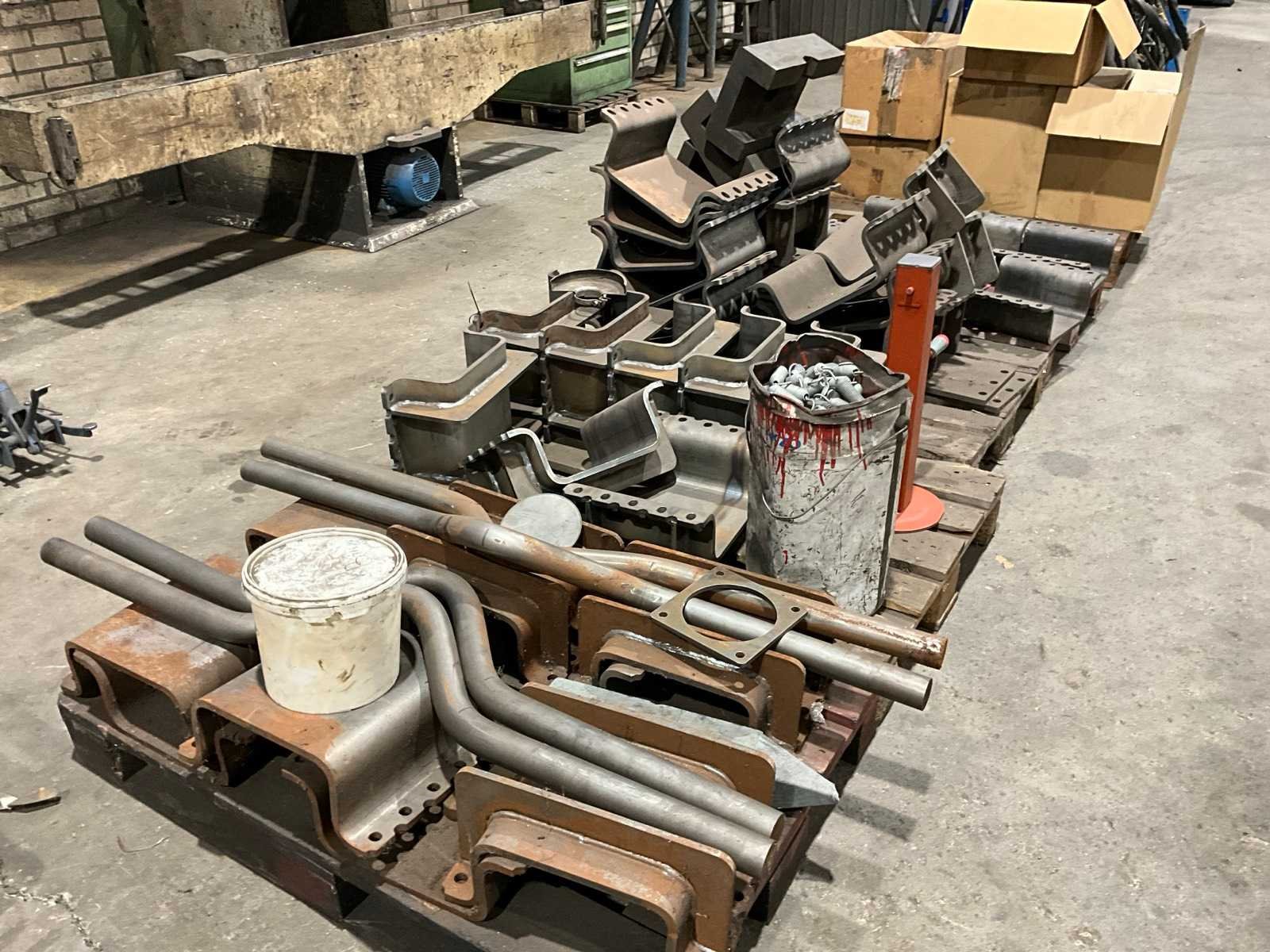 Diverse stalen flenzen/schalen, rubberen inleg delen, inclusief divers op en met 4x pallet