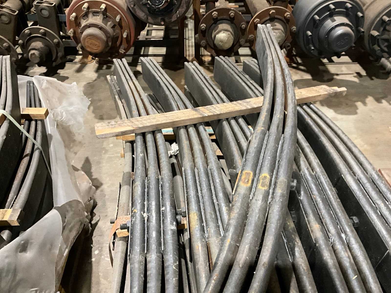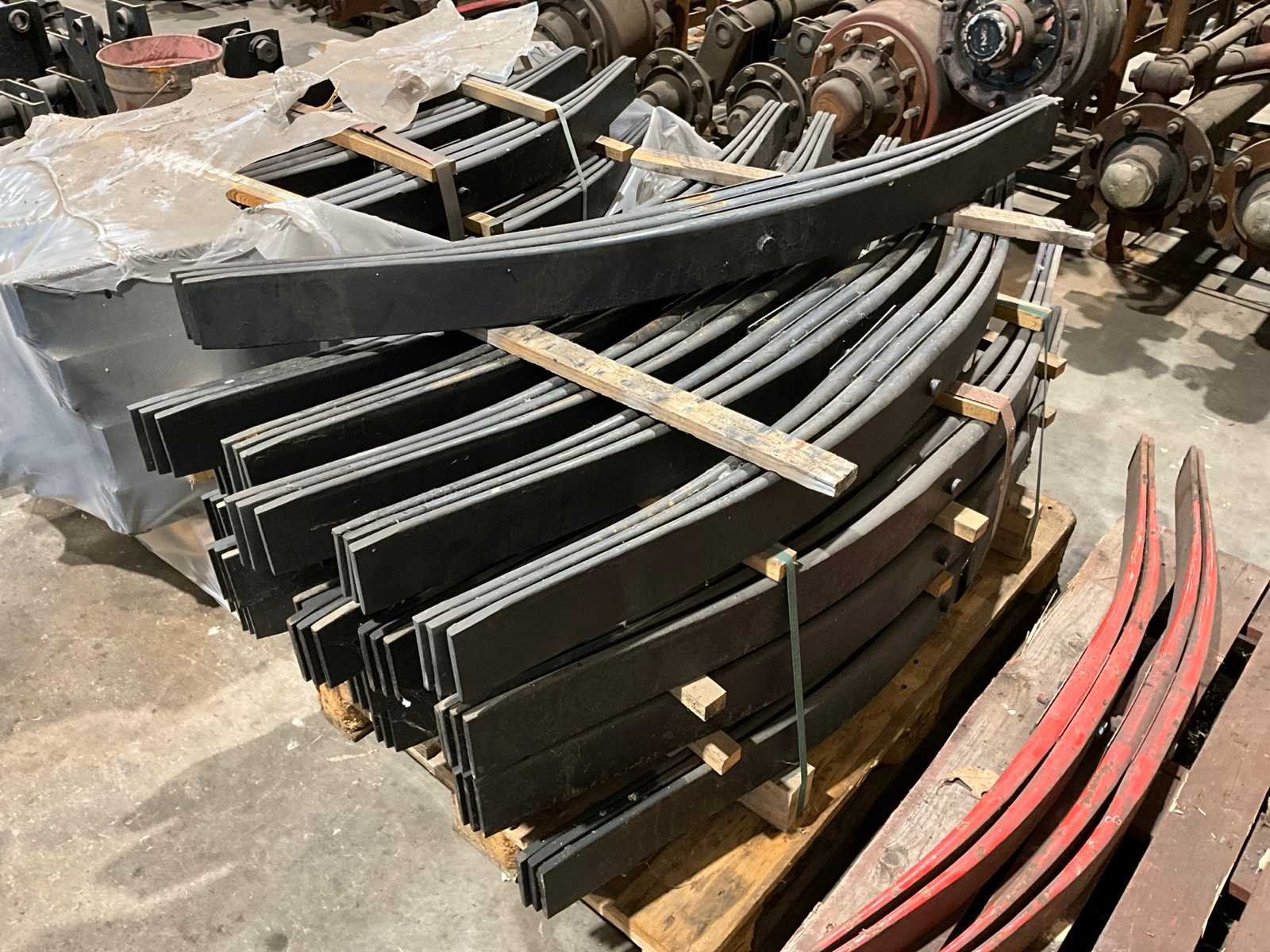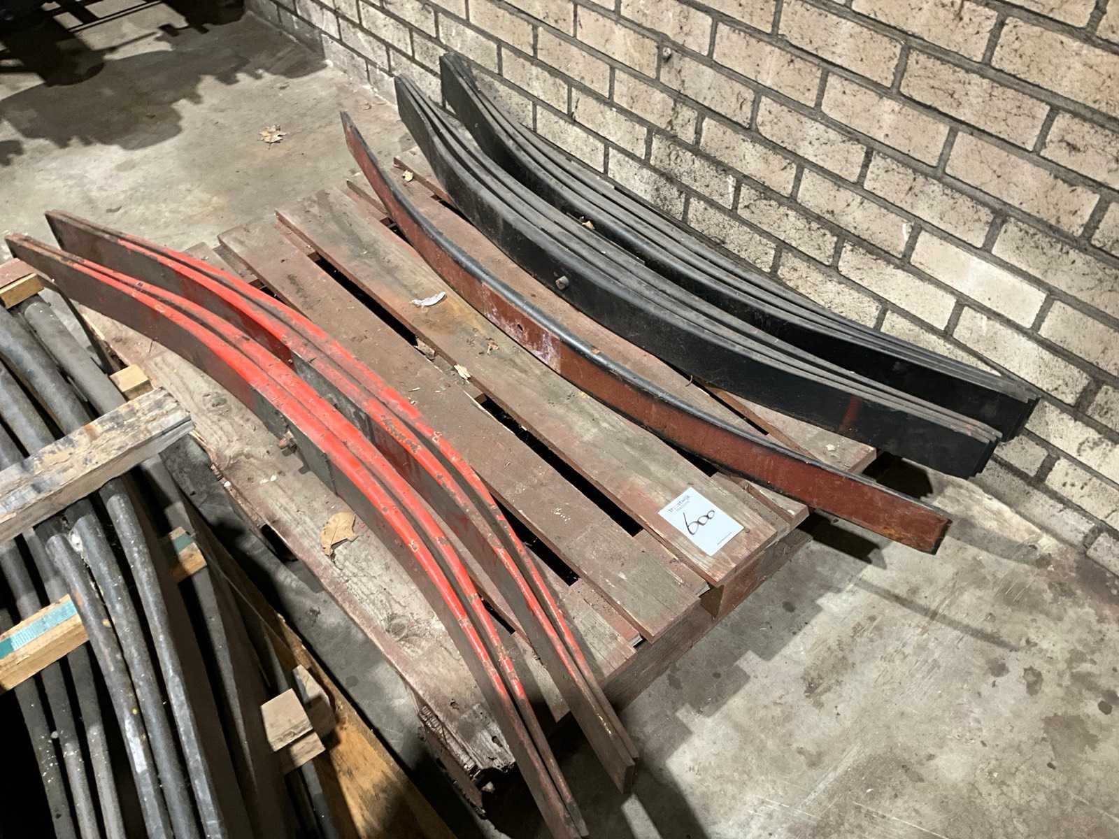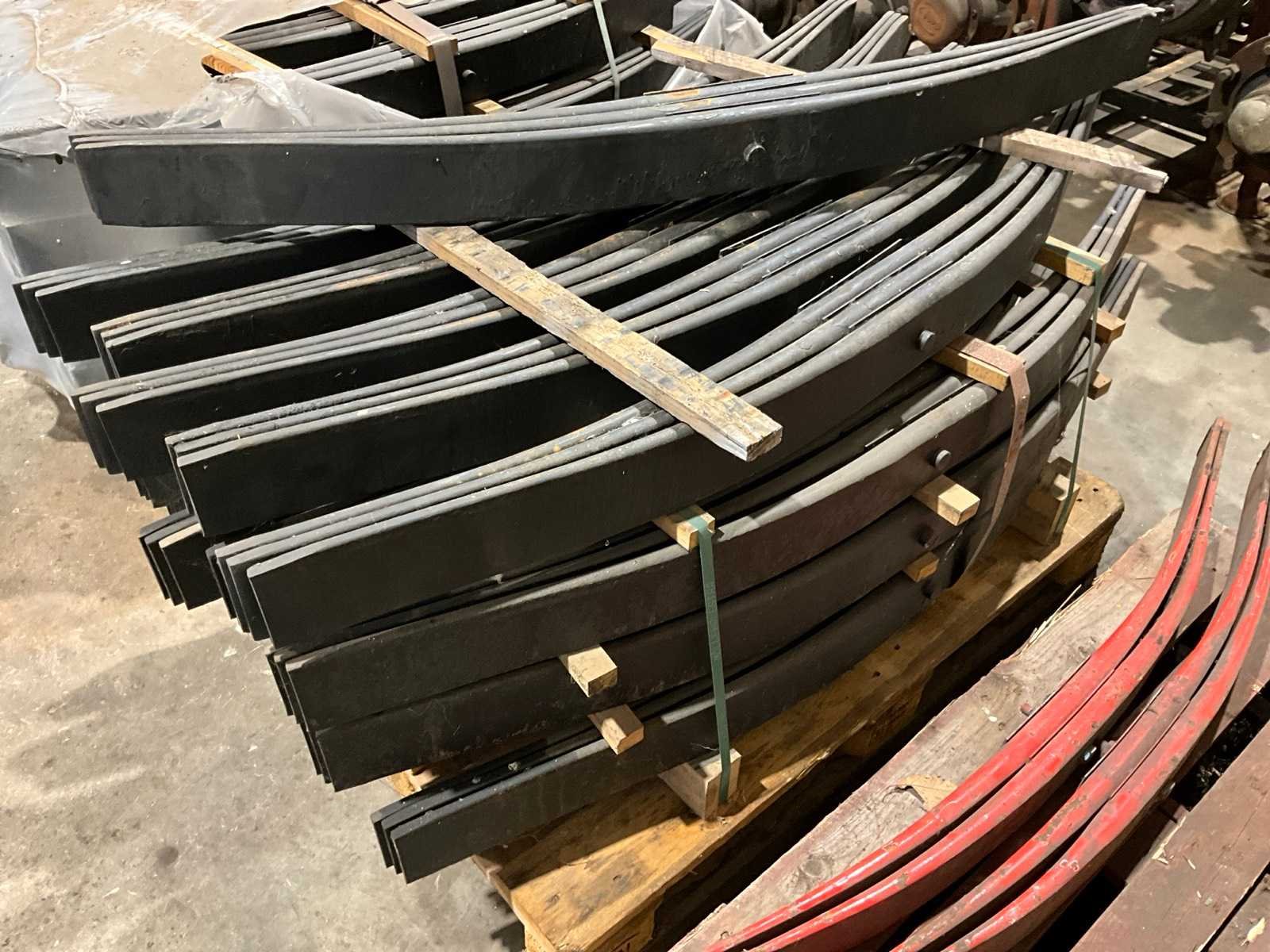 Lengte 1x veer set circa 1470 mm, breedte + dikte midden van veerpakket circa 100 mm, dikte uiteinde veerpakket circa 45 mm, inclusief pallet divers,