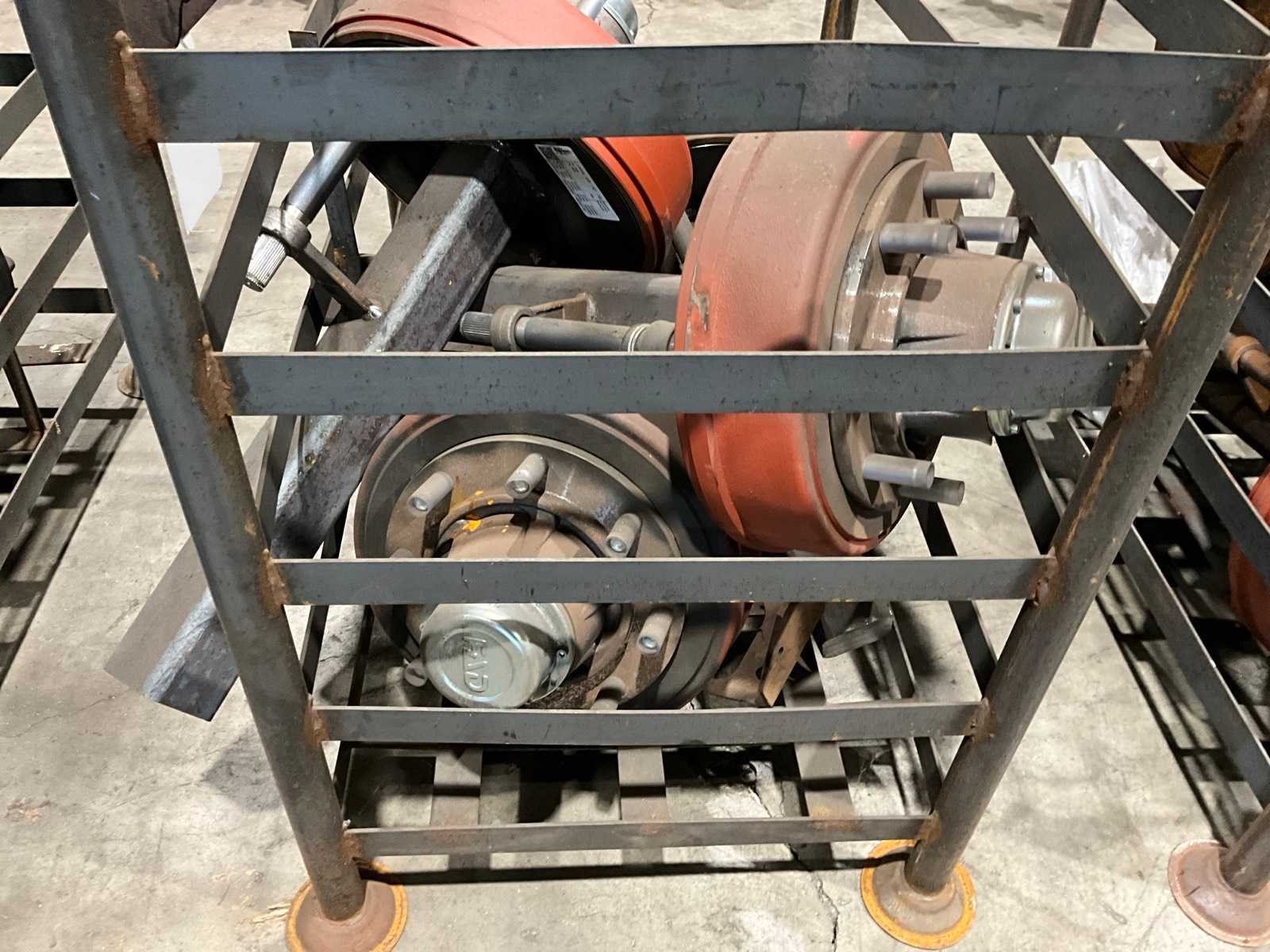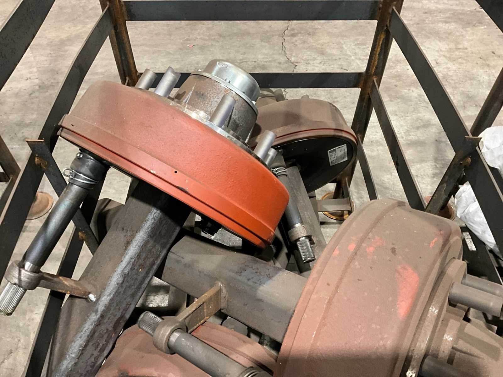 Totale lengte asstomp 850 mm, voorzien van remtrommel breedte circa 110 mm, 8 bouts/steek circa 270 mm, in en met juk Merk: FAD