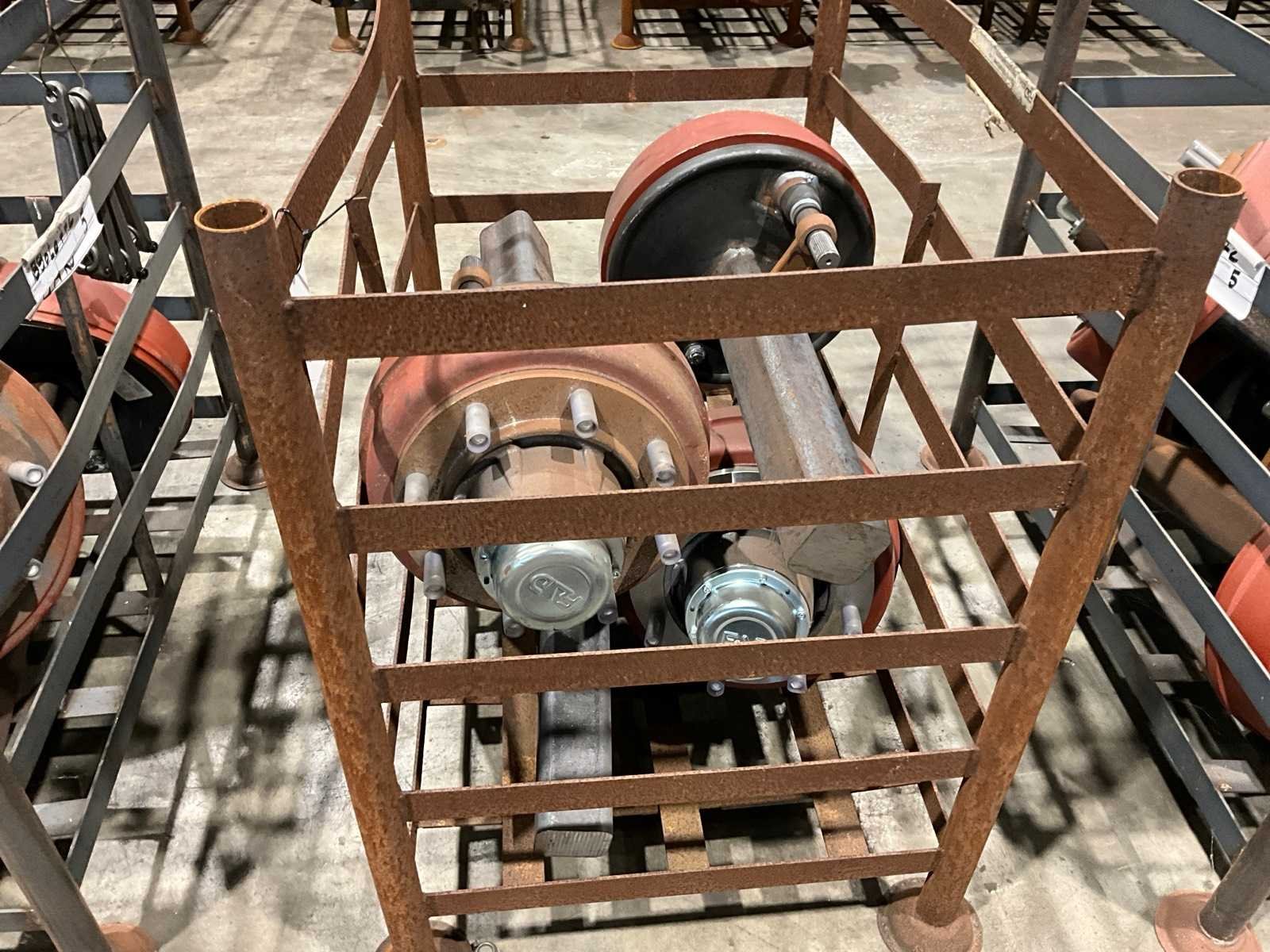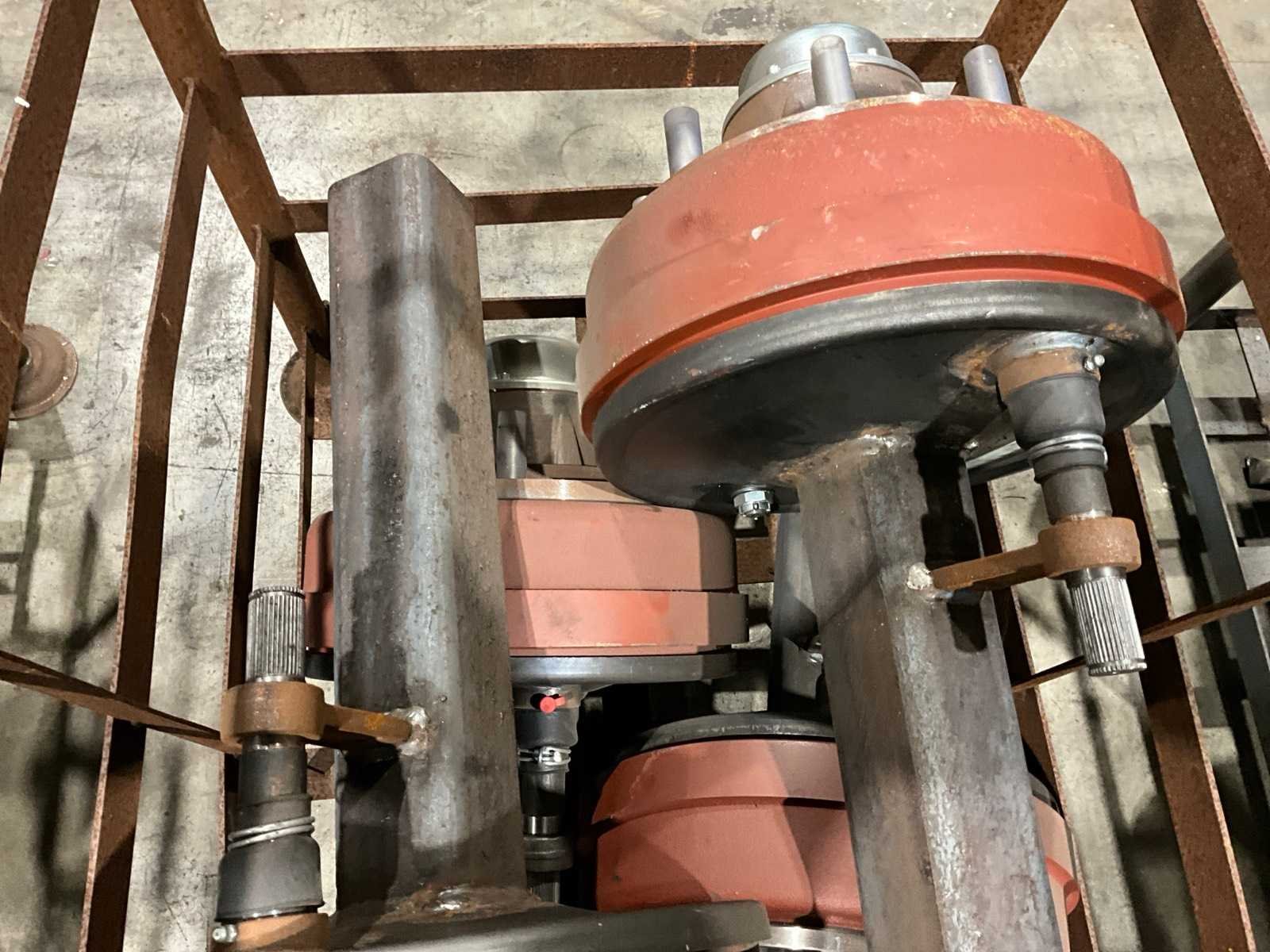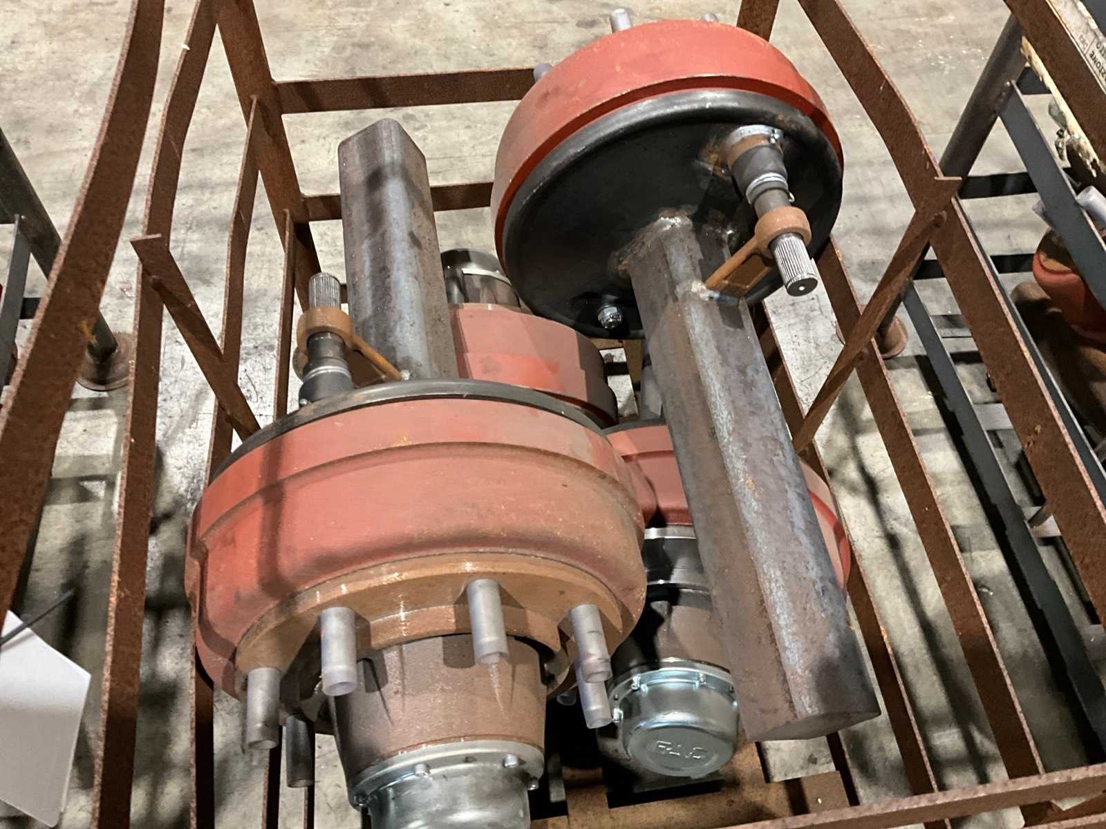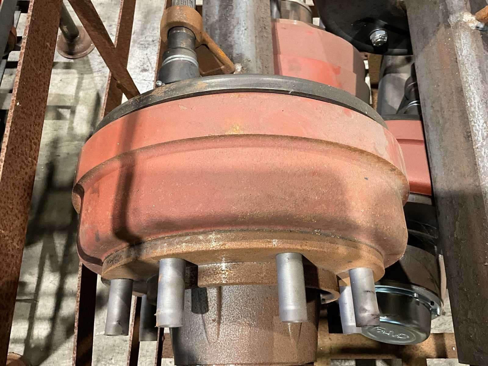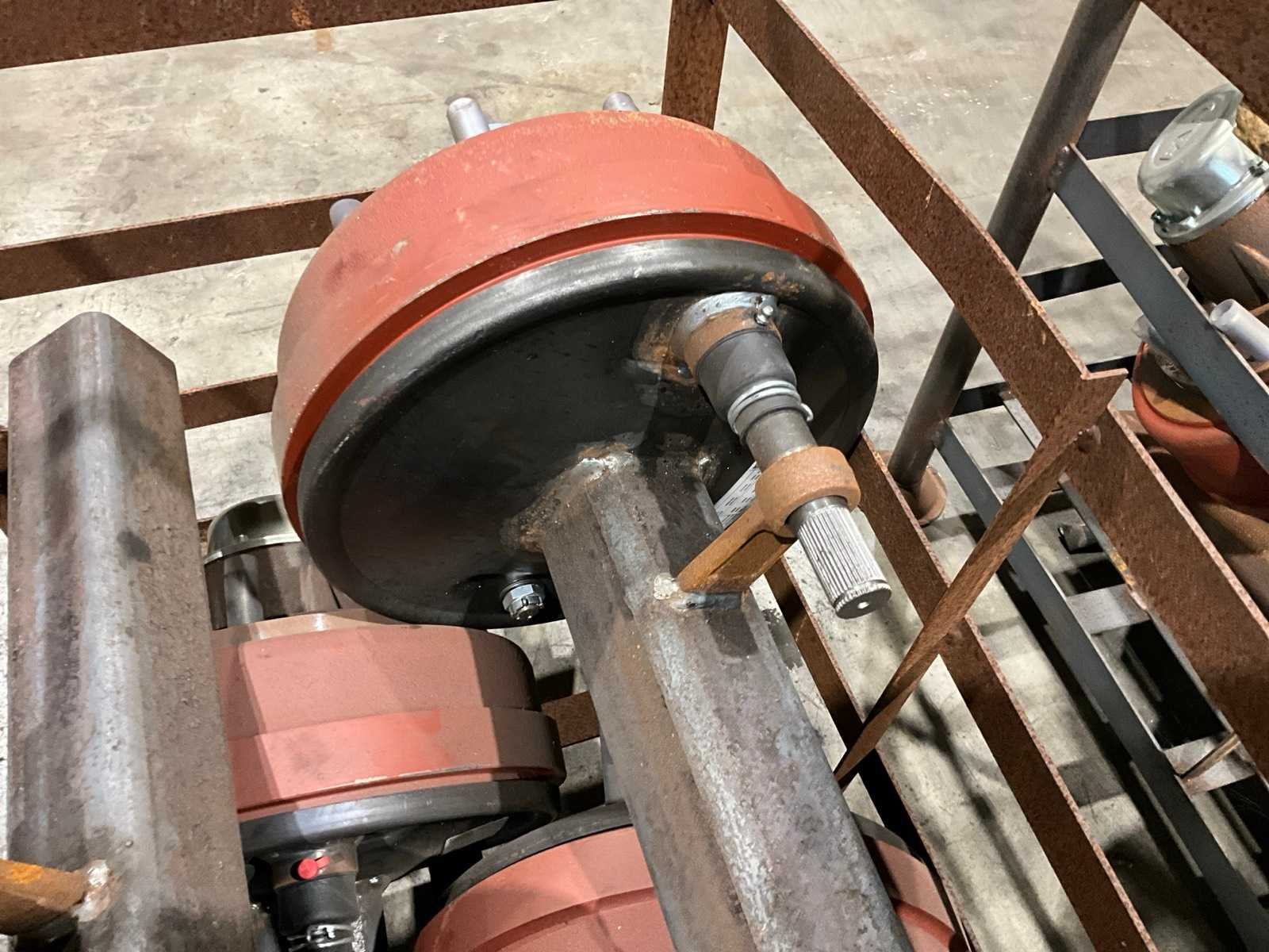 Totale lengte asstomp 850 mm, voorzien van remtrommel breedte circa 120 mm, 8 bouts/steek circa 270 mm, in en met juk Merk: FAD