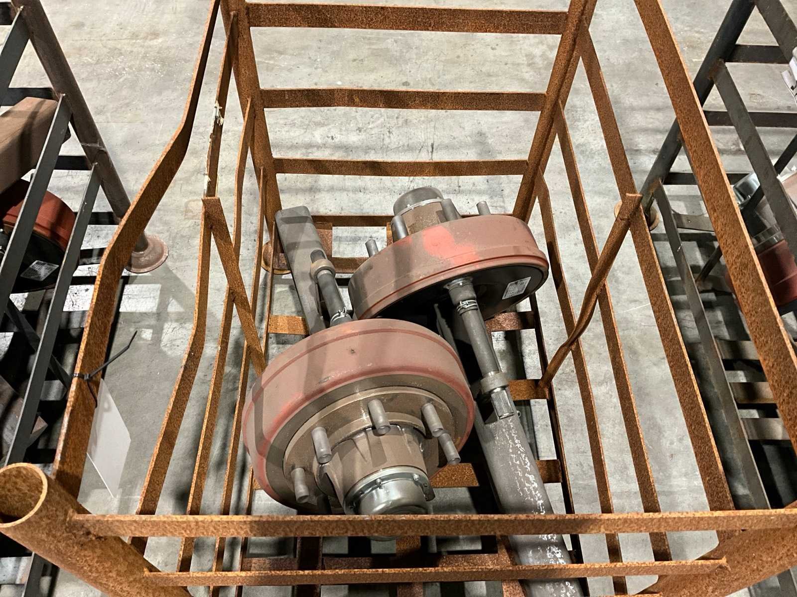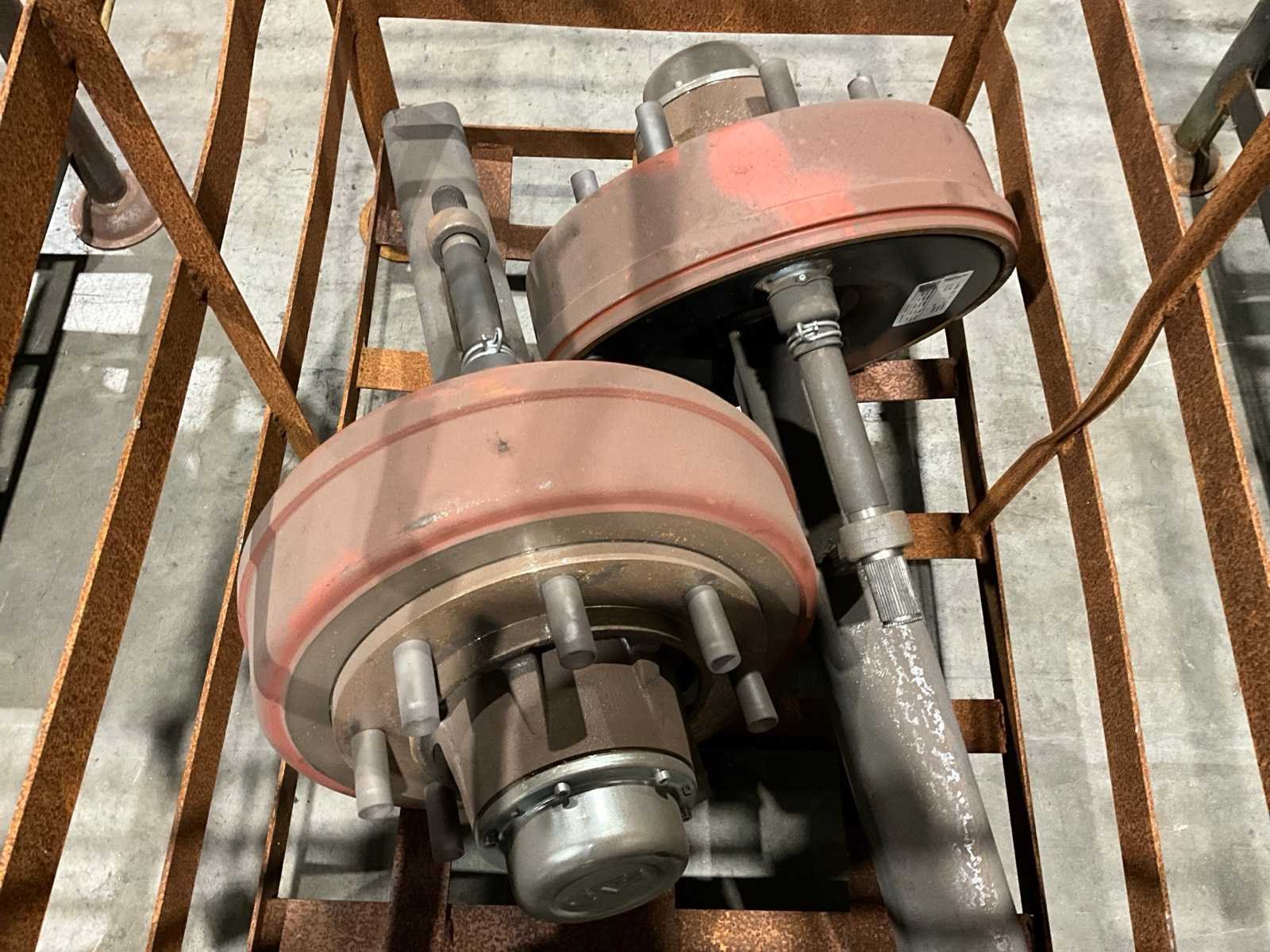 Totale lengte asstomp 850 mm, voorzien van remtrommel breedte circa 110 mm, 8 bouts/steek circa 270 mm, in en met juk Merk: FAD