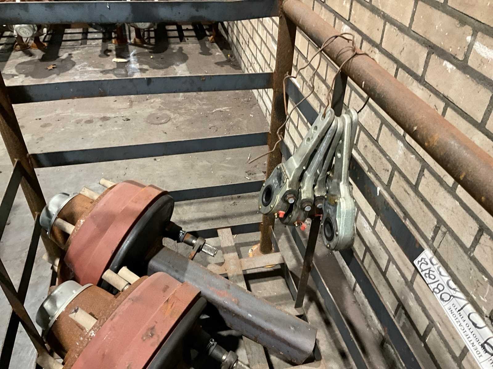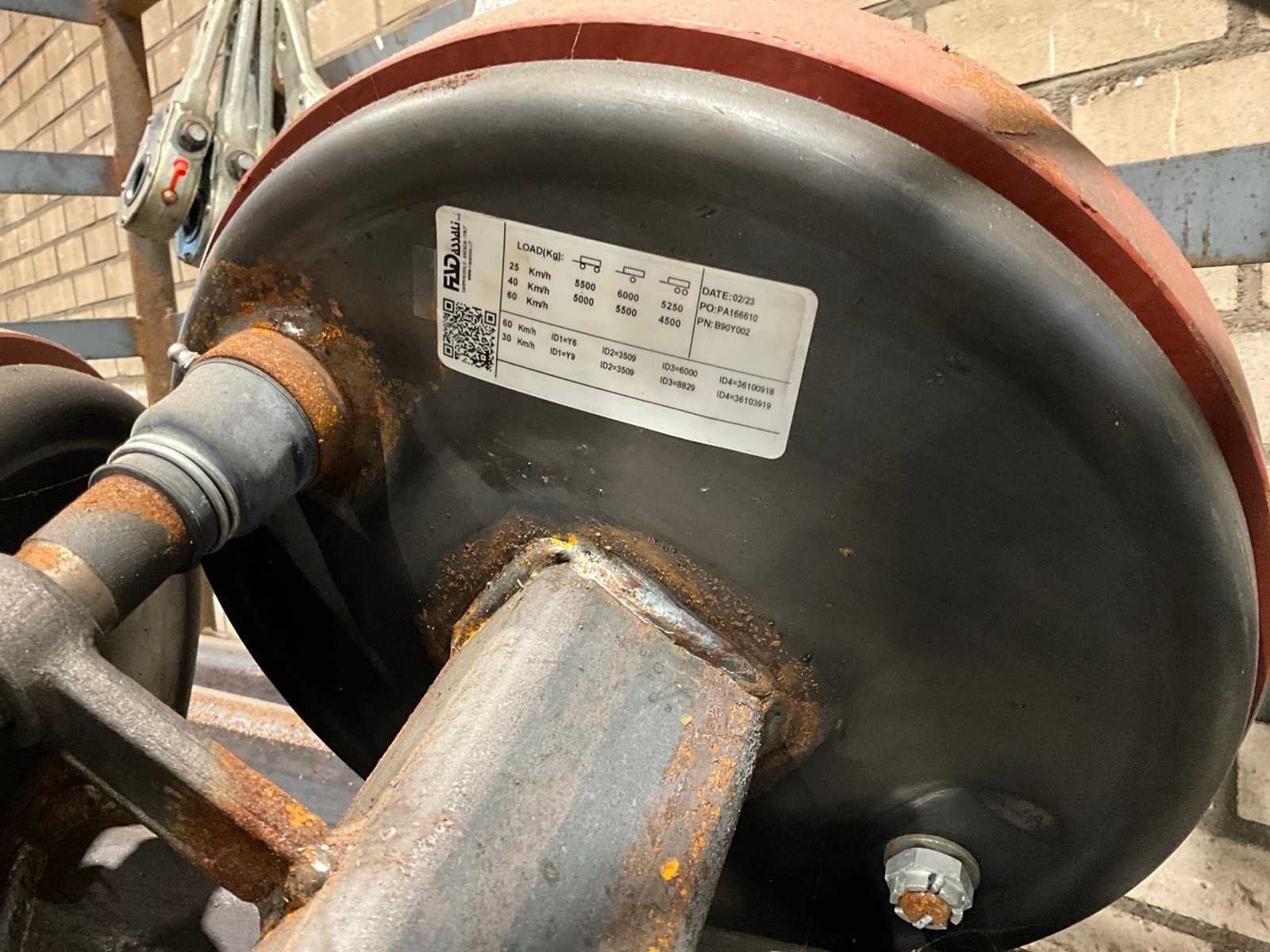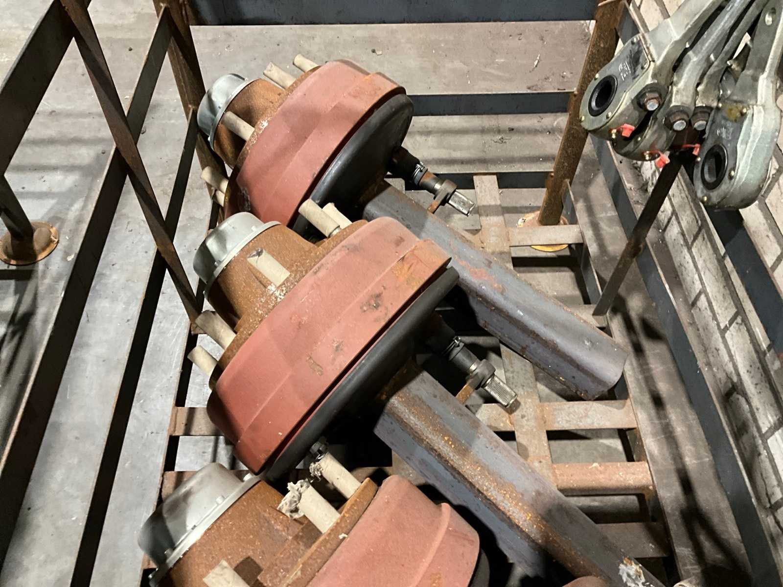 Totale lengte asstomp 850 mm, voorzien van 5x remhevel, remtrommel breedte circa 110 mm, 8 bouts/steek circa 270 mm, in en met juk Merk: FAD