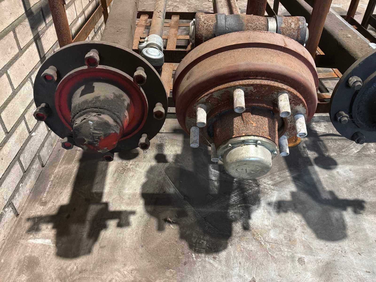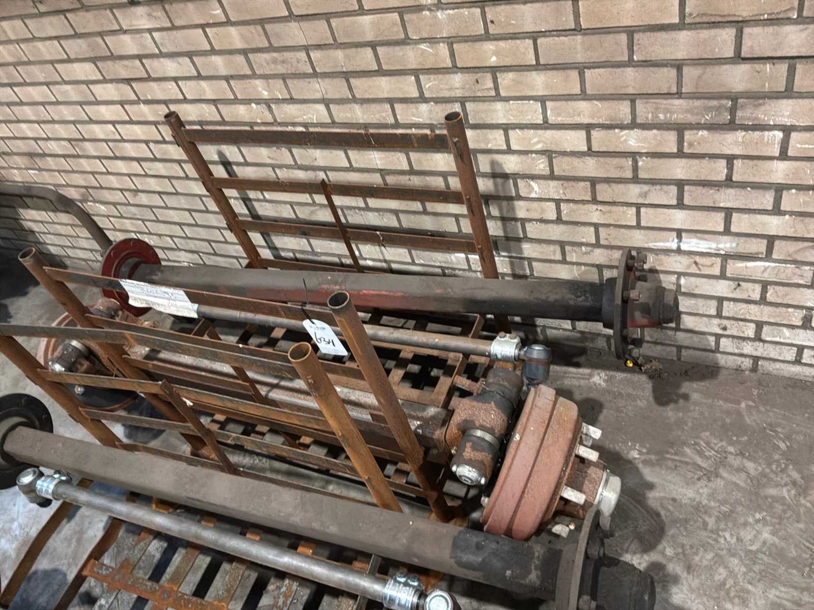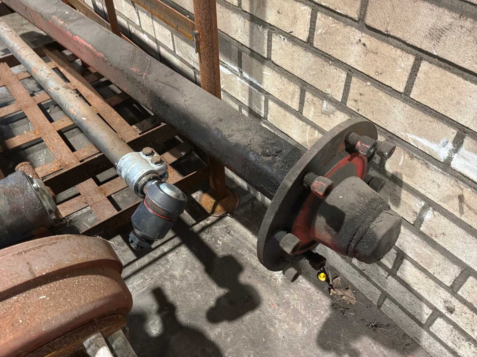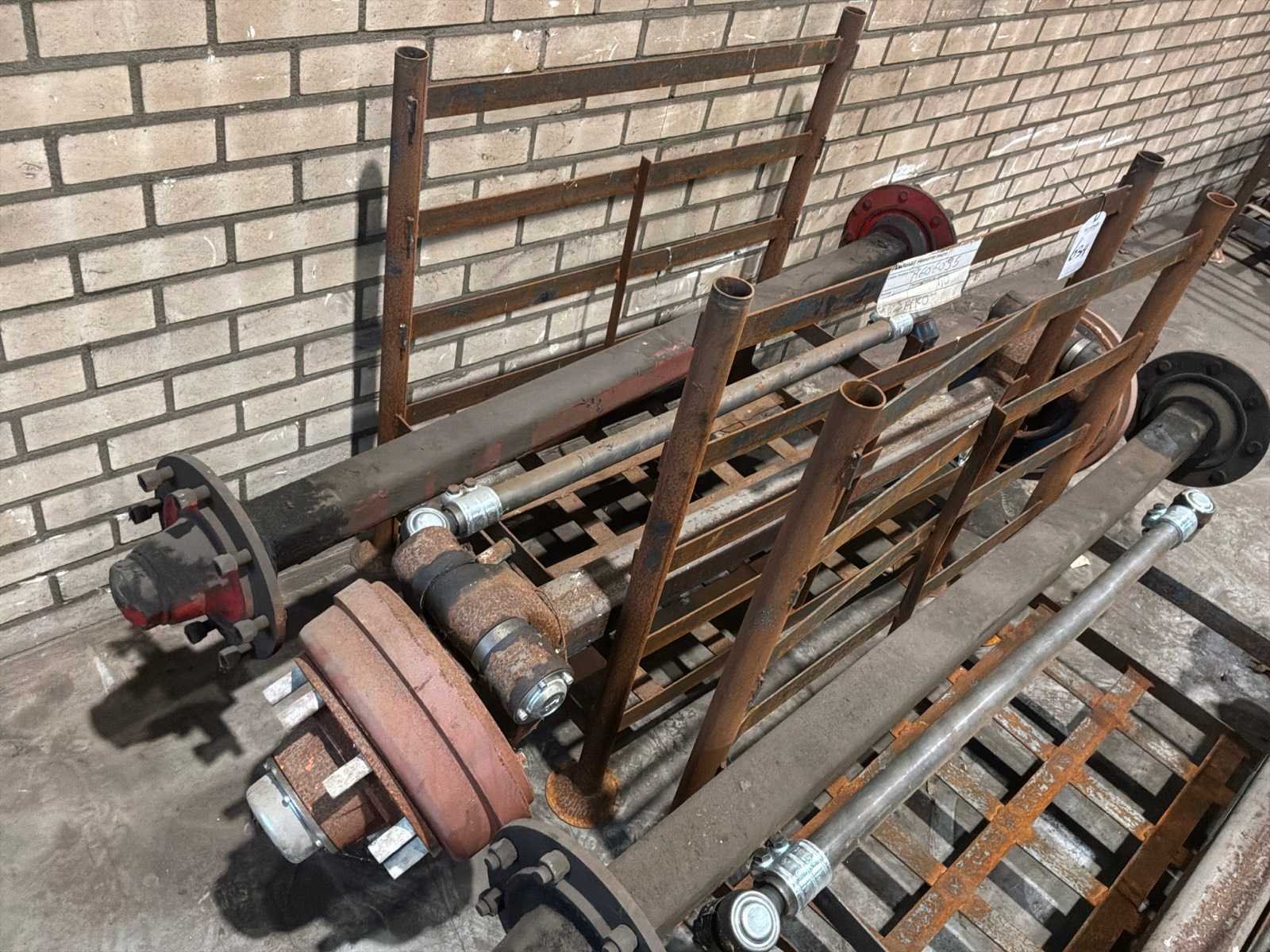 1x vaste as (breedte tussen de flens 1870 mm, 8 bouts/steek circa 270 mm), 1x stuuras (circa breedte tussen de fusees 1260 mm, remtrommel breedte 110 mm, 8 bouts/steek circa 270 mm), stuurstang Stuuras: true