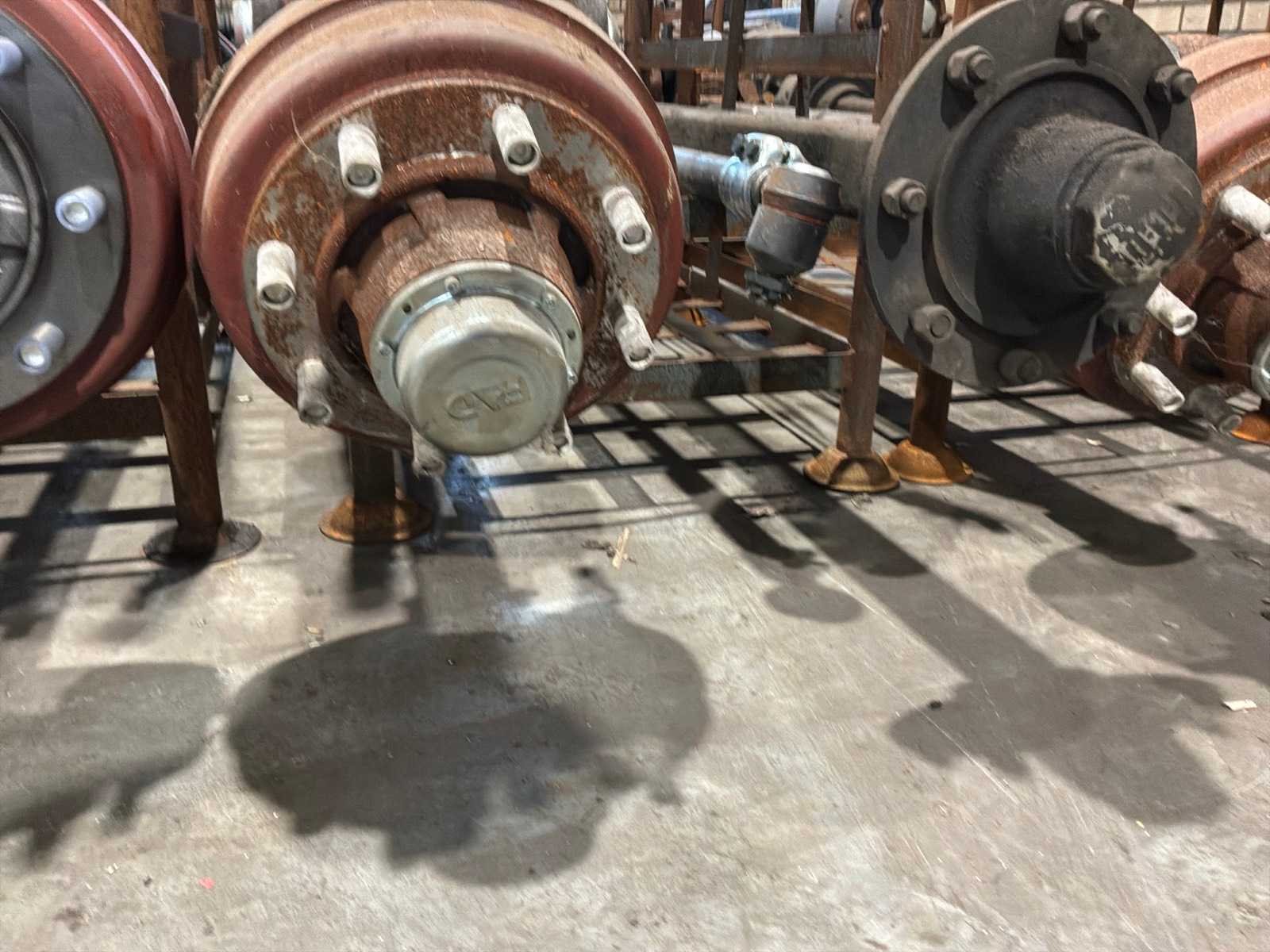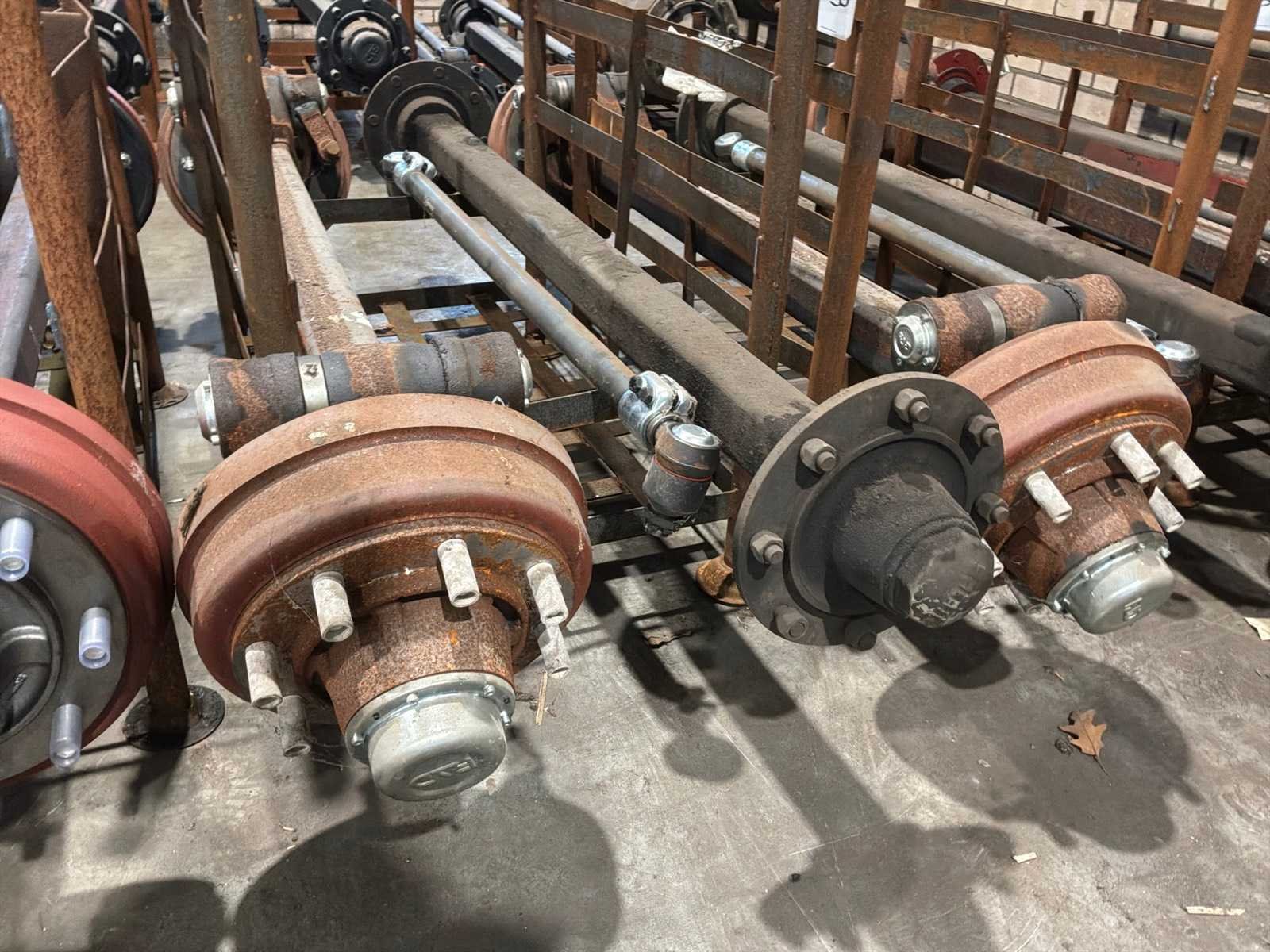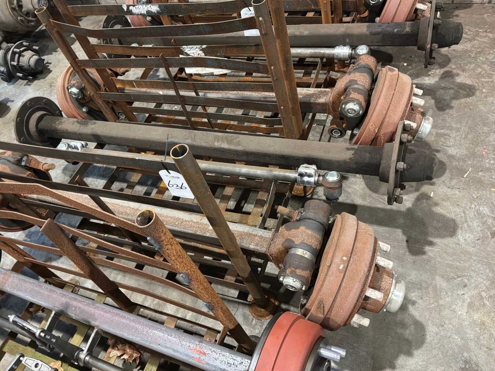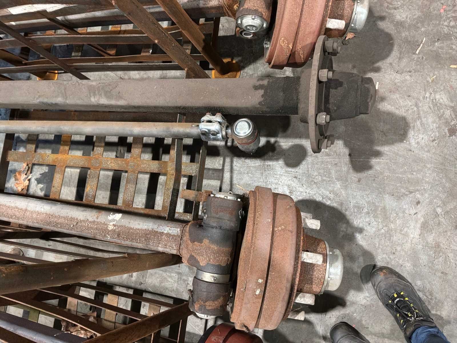 1x vaste as (breedte tussen de flens 1870 mm, 8 bouts/steek circa 270 mm), 1x stuuras (circa breedte tussen de fusees 1260 mm, remtrommel breedte 110 mm, 8 bouts/steek circa 270 mm), stuurstang Stuuras: true