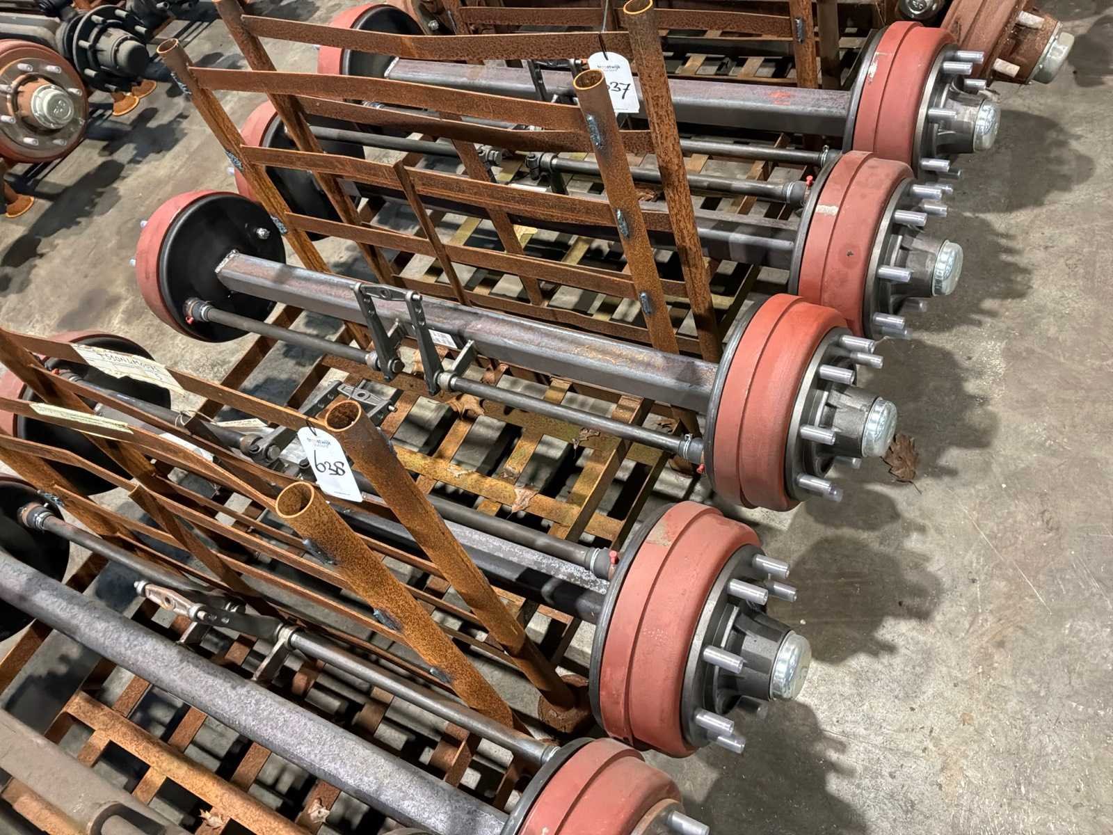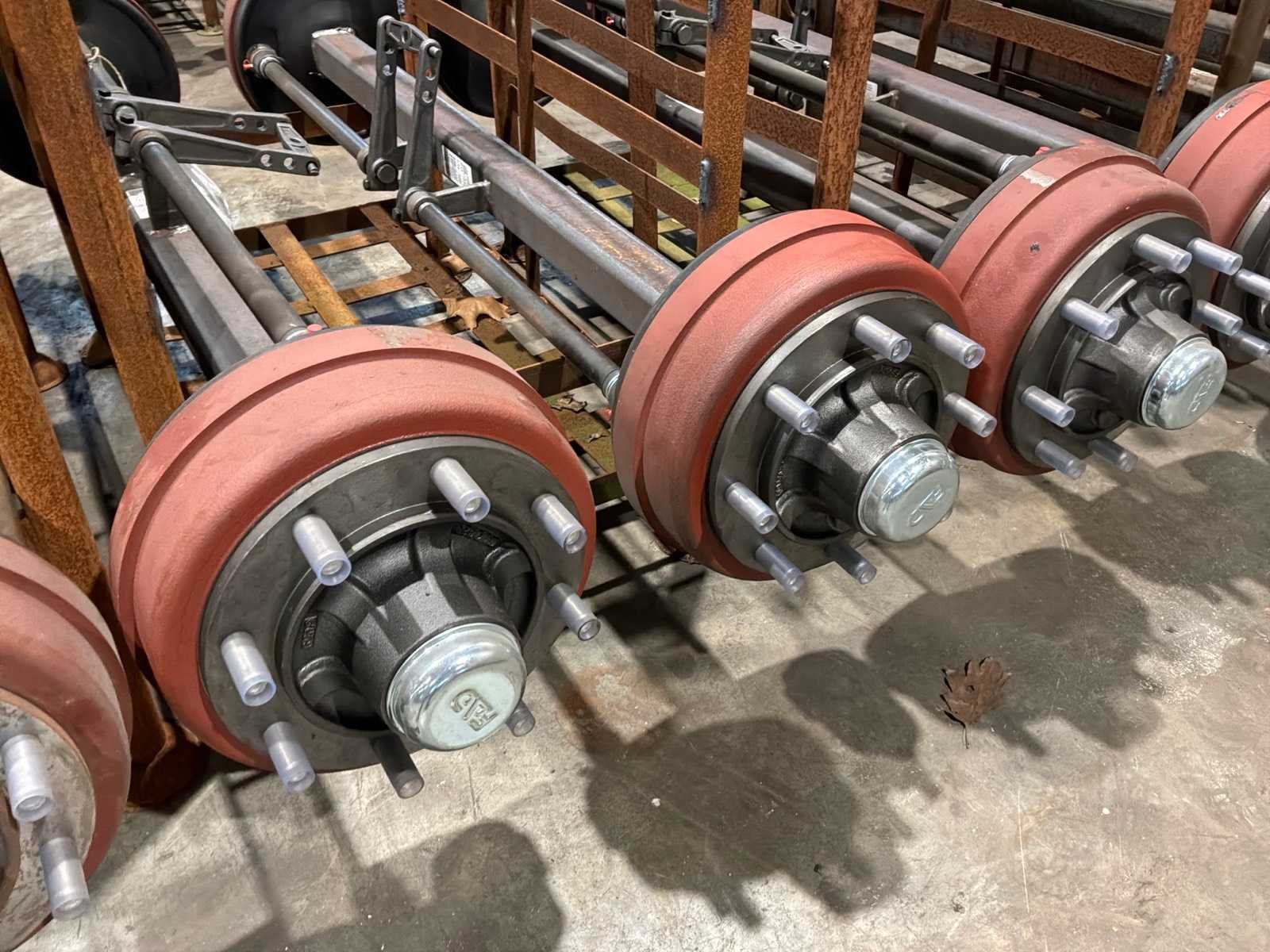 Totale breedte 1 as 2000 mm, 1 set van 2, remtrommel breedte 120 mm, 8 bouts/steek circa 270 mm, afstand tussen de trommels 1400 mm Merk: FAD