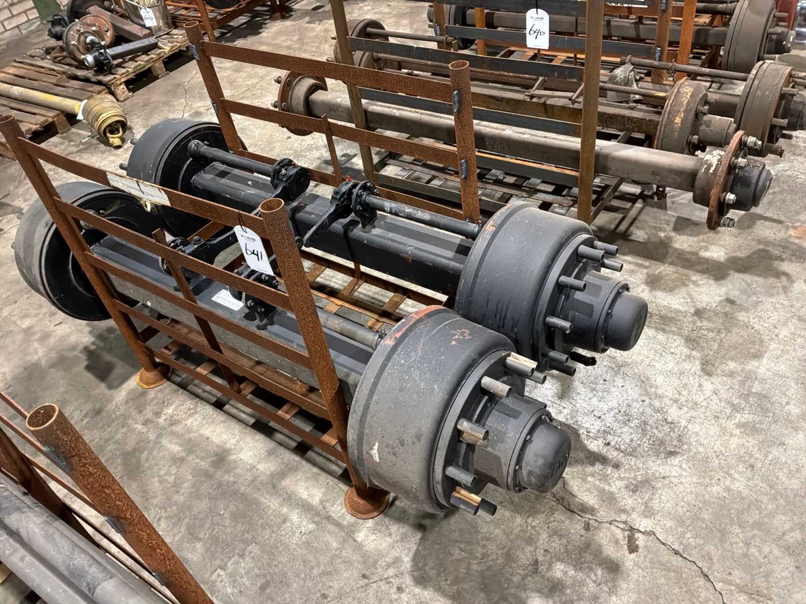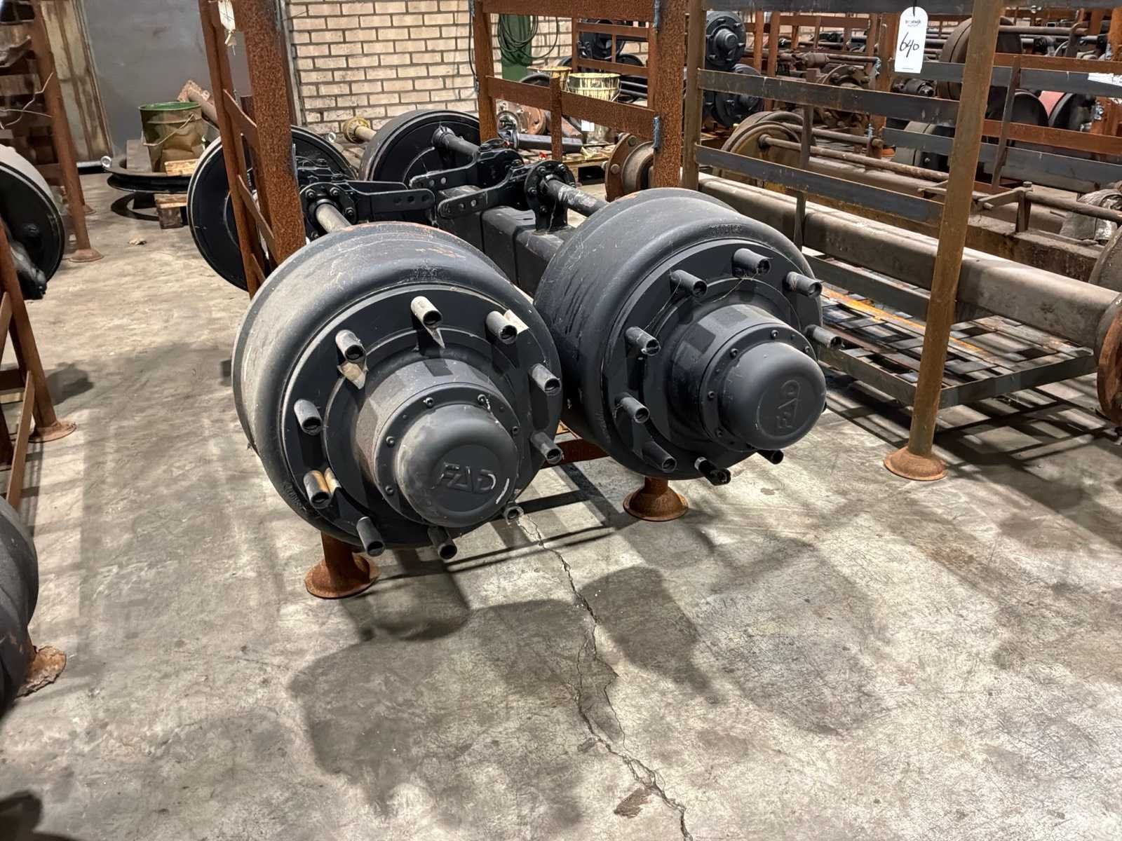 Totale breedte 1 as 2060 mm, 1 set van 2, remtrommel breedte 220 mm, 10 bouts/steek circa 320 mm, afstand tussen de remtrommels 1230 mm, Merk: FAD