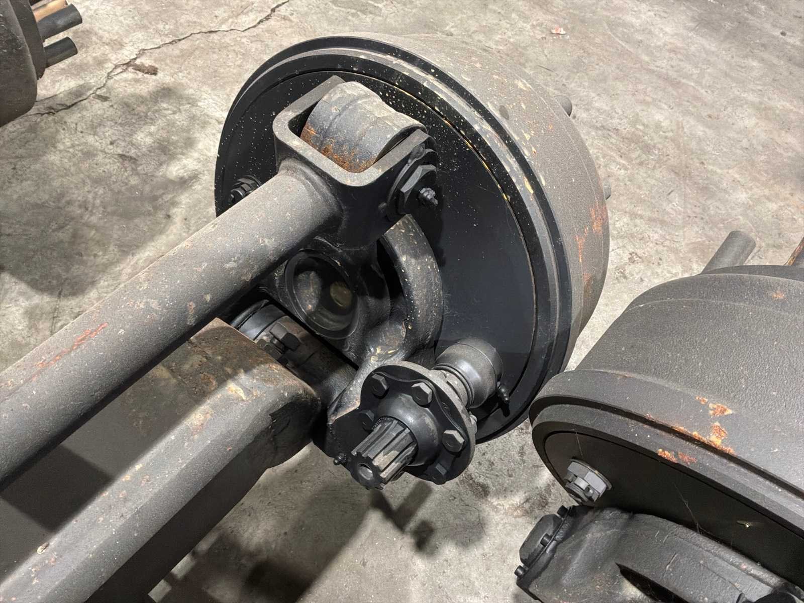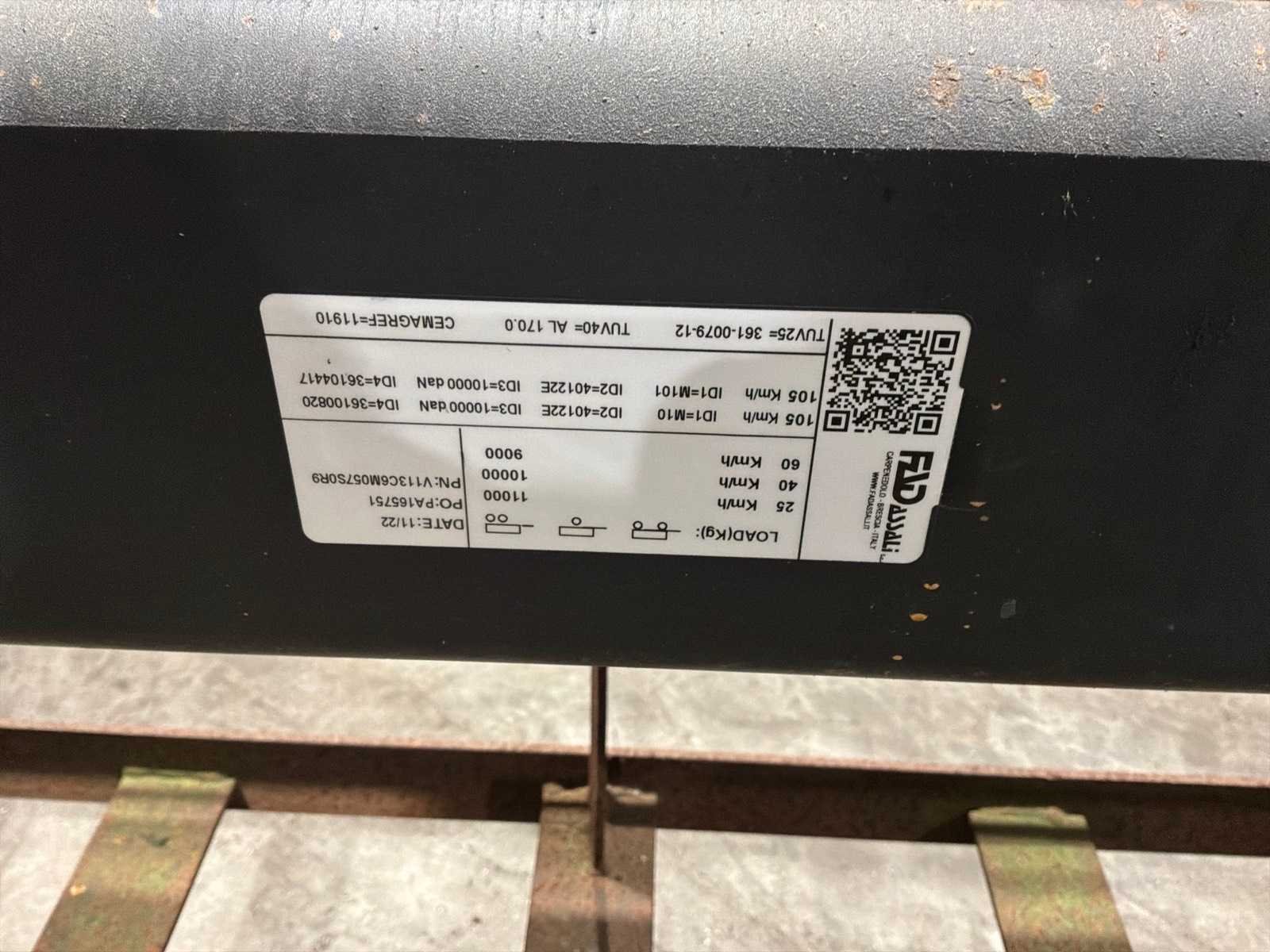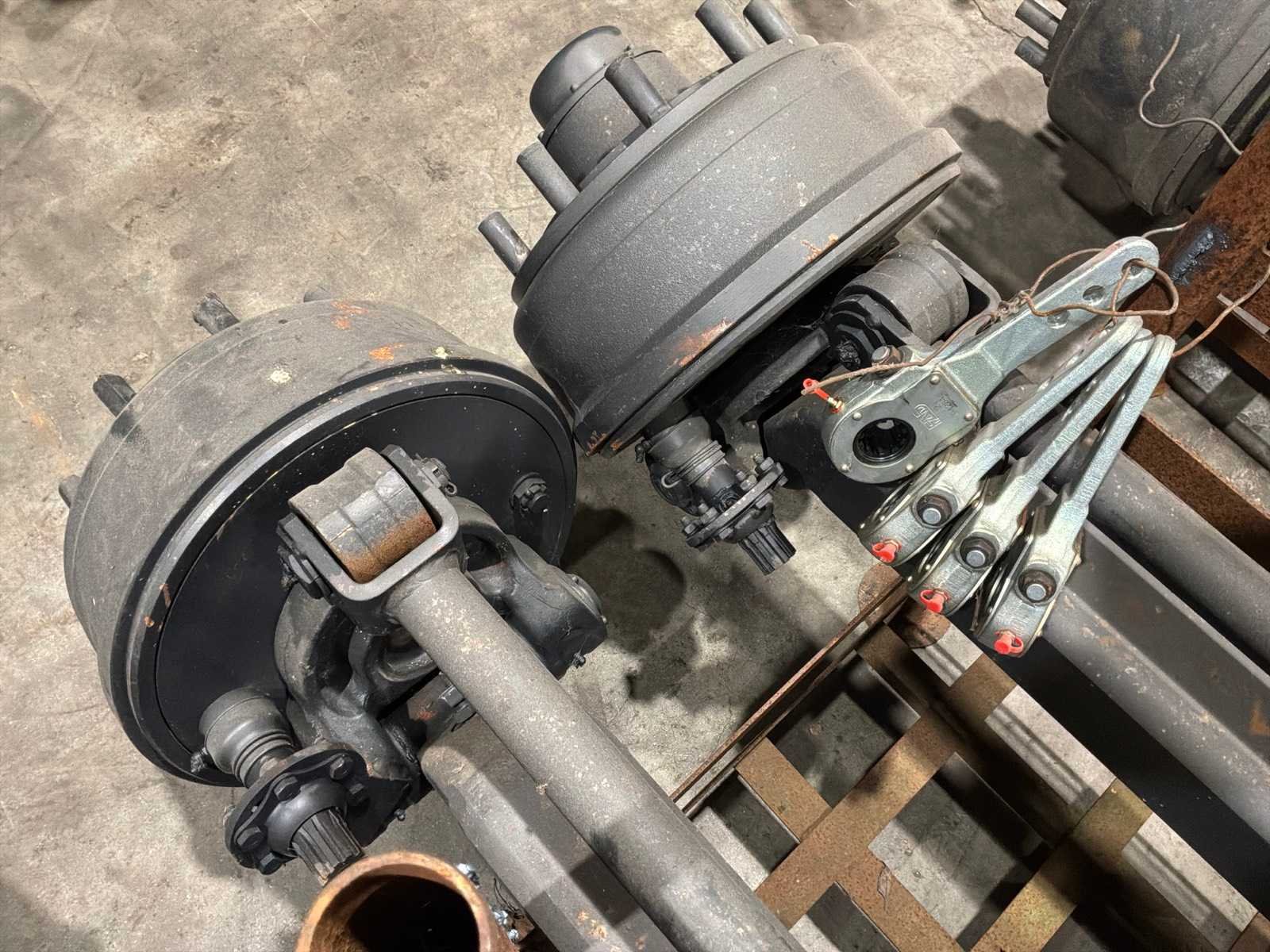 Totale breedte 1 as 2030 mm, 1 set van 2, remtrommel breedte 170 mm, 10 bouts/steek circa 320 mm, 4x remhevel, afstand tussen de fusees circa 1350 mm Merk: FAD