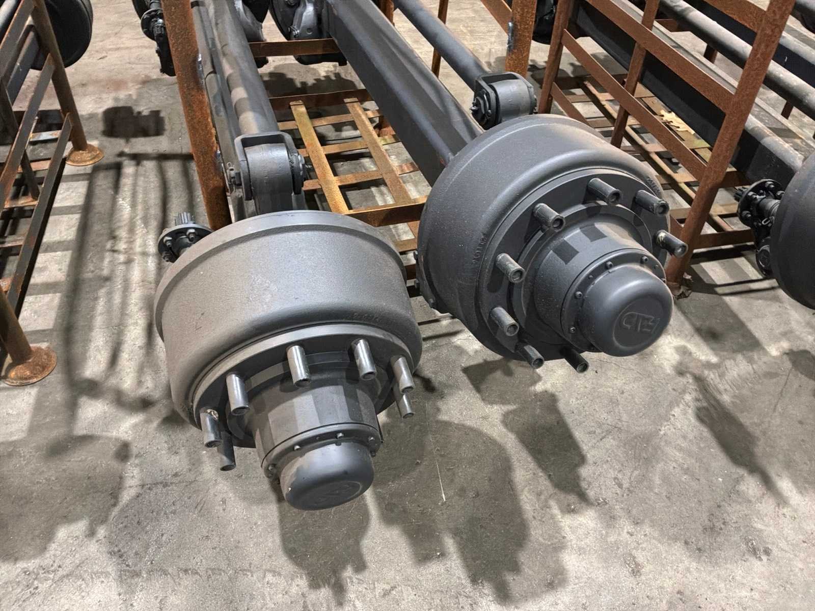 Totale breedte 1 as 2350 mm, 1 set van 2, remtrommel breedte 220 mm, 10 bouts/steek circa 320 mm, afstand tussen de fusees 1250 mm, Merk: FAD