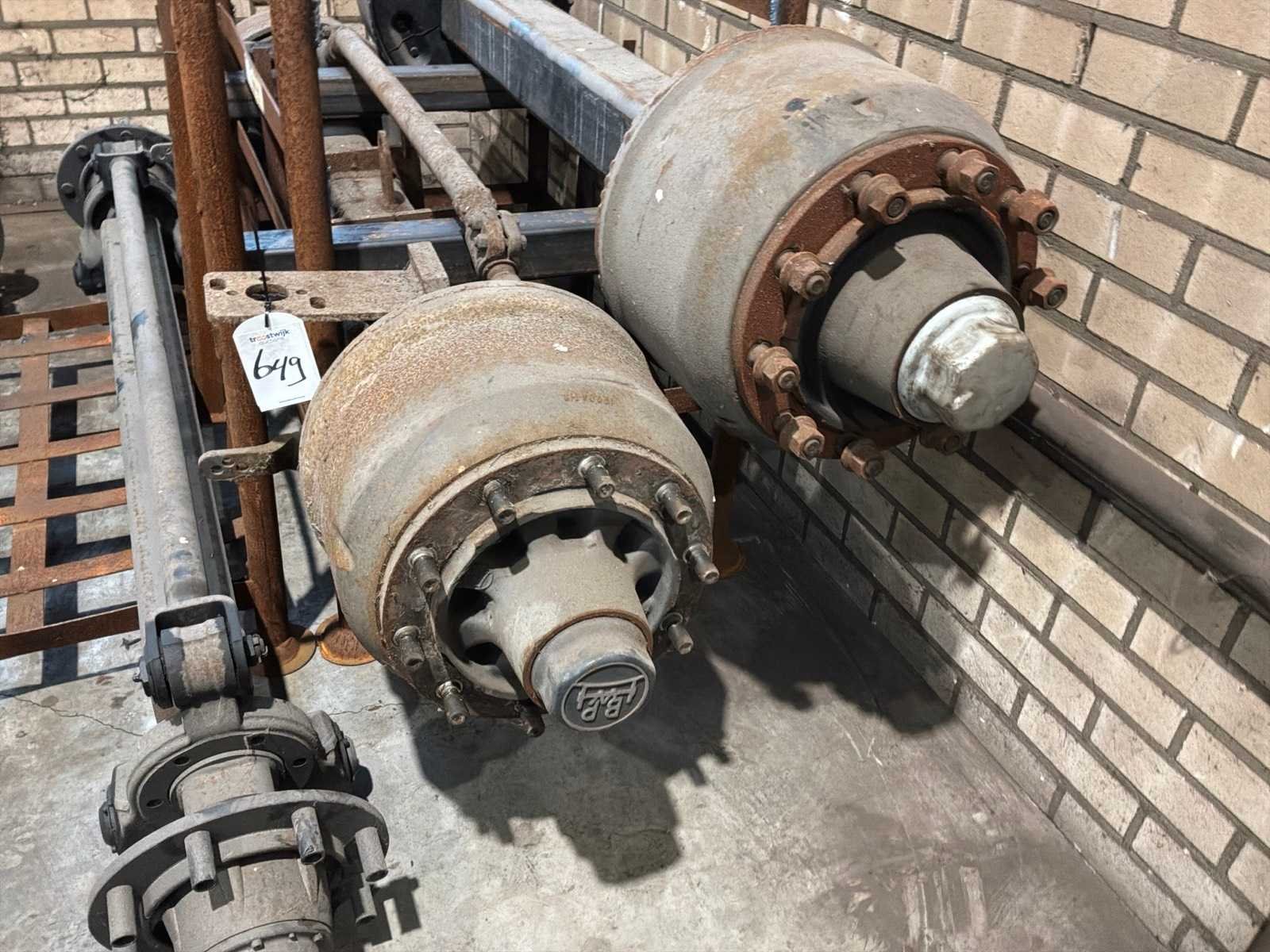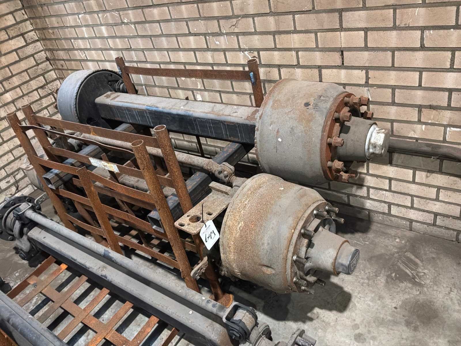 Remtrommel breedte circa 280 mm, 1x vaste as (breedte tussen de flens 1380 mm, 10 bouts/steek circa 330 mm), 1x stuuras (circa breedte tussen de fusees 1200 mm, 10 bouts/steek circa 330 mm), Stuuras: true