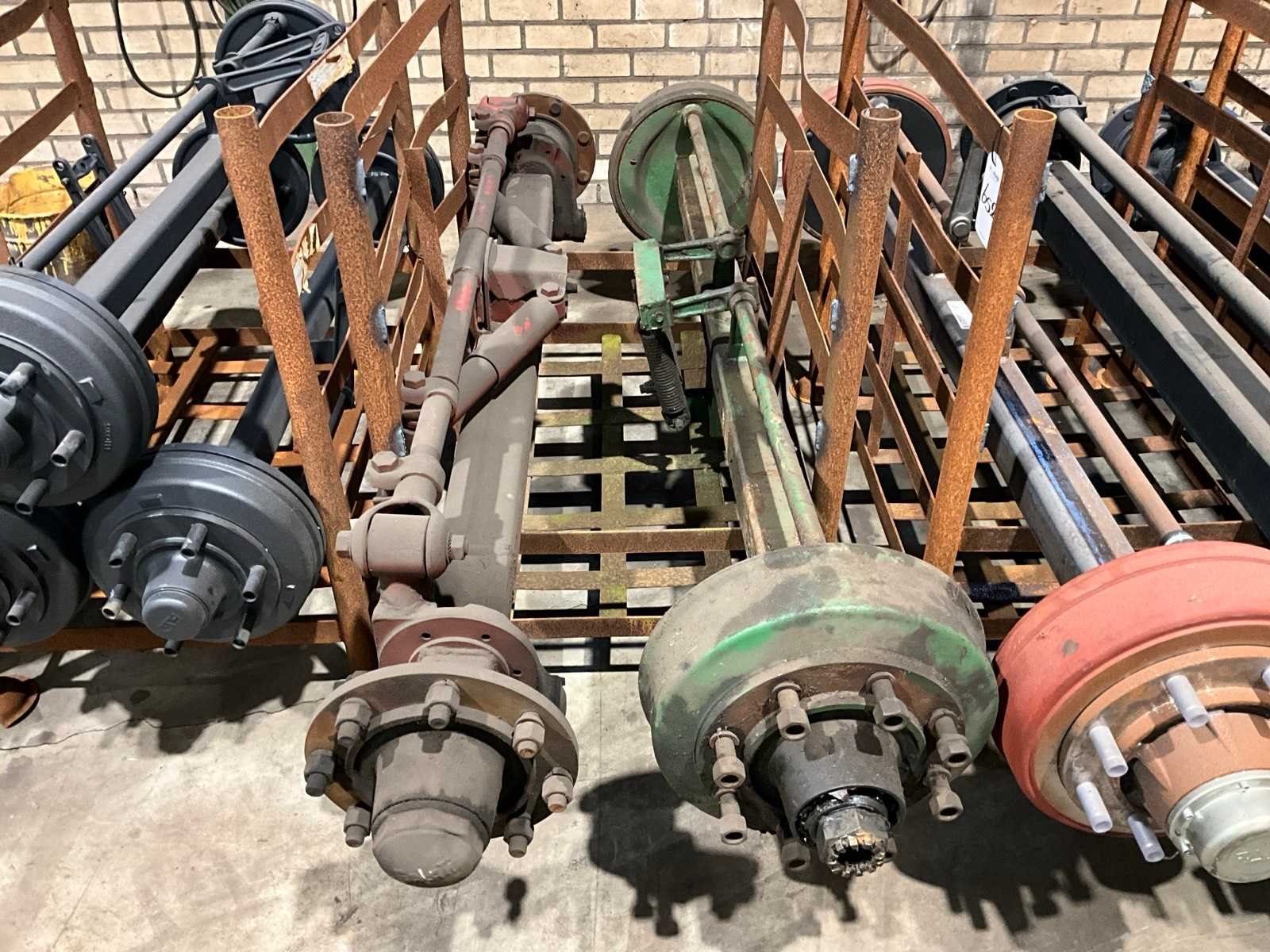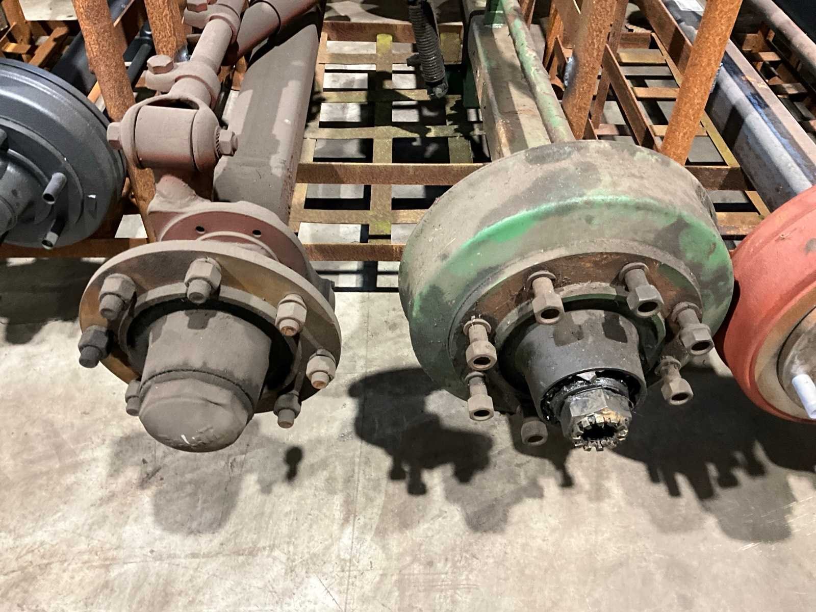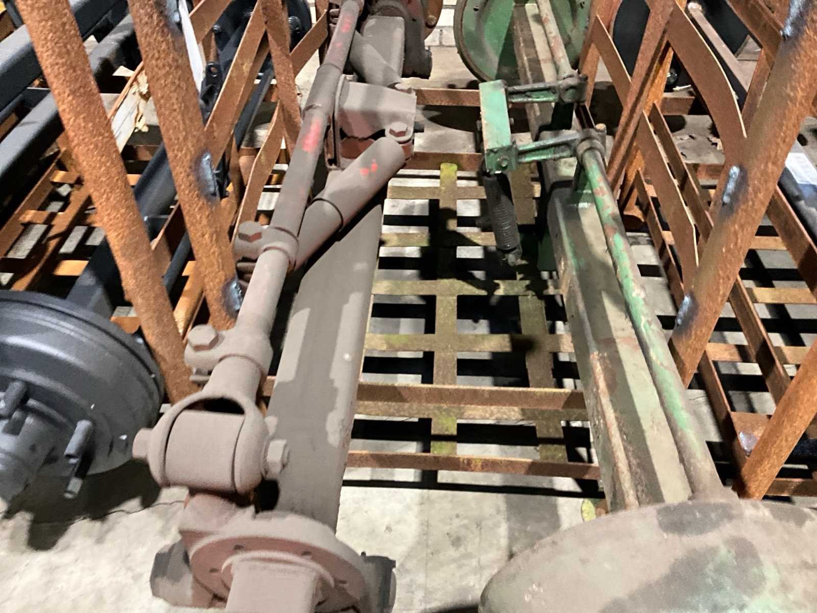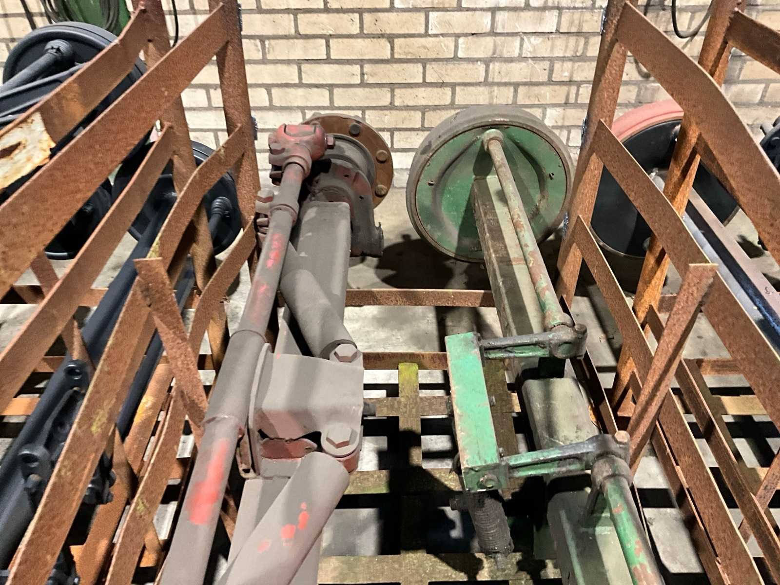 1x vaste as (breedte tussen de rem trommels 1750 mm, 8 bouts/steek circa 270 mm), remtrommel breedte 120 mm, 1x stuuras (circa breedte tussen de fusees 1600 mm, 8 bouts/steek circa 270 mm), Stuuras: true