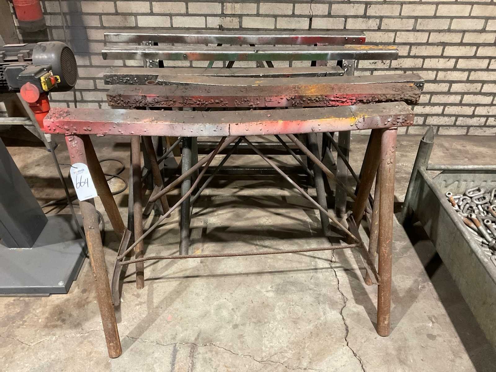 Diverse afmetingen van B 110cm tot 150cm, H circa 82cm Materiaal: Staal